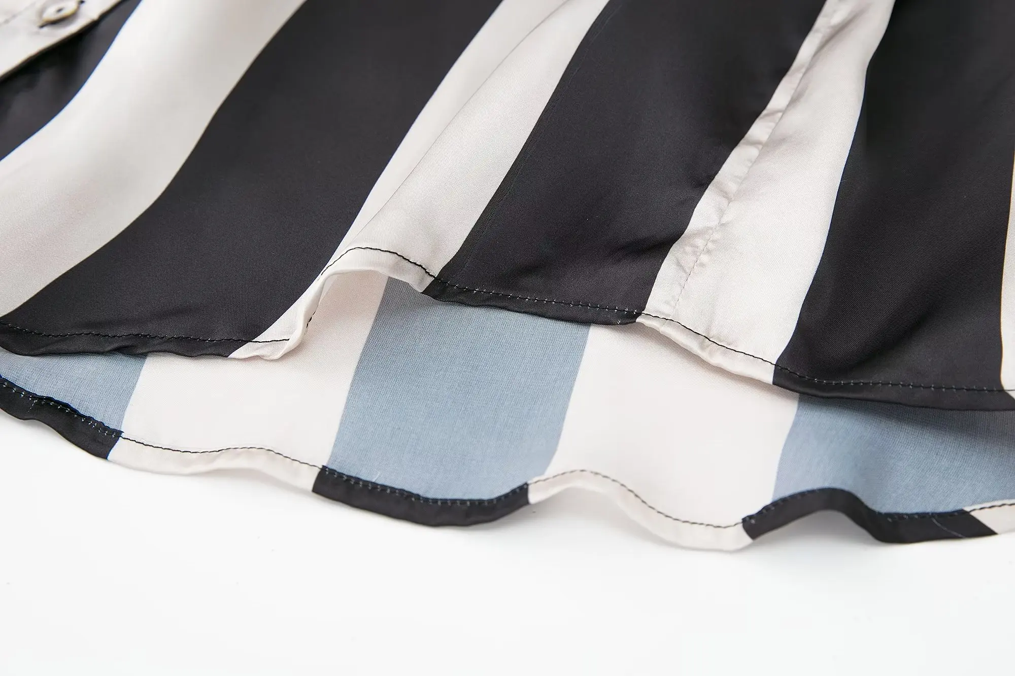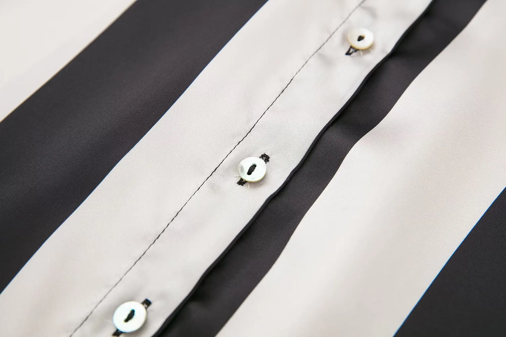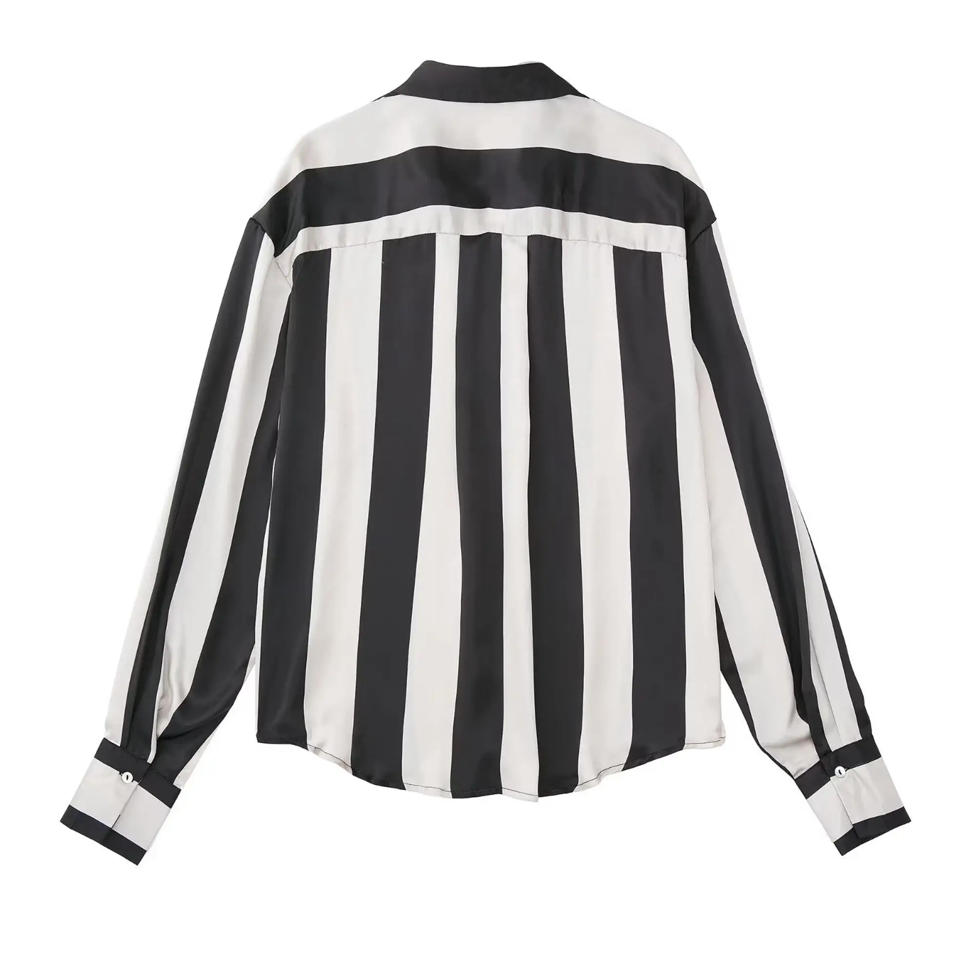 Yipinpay Fashion 2023 Autumn Women Striped Print Blouses Casual Loose Thin Tops Vintage Single Breasted Long Sleeve T-Shirts