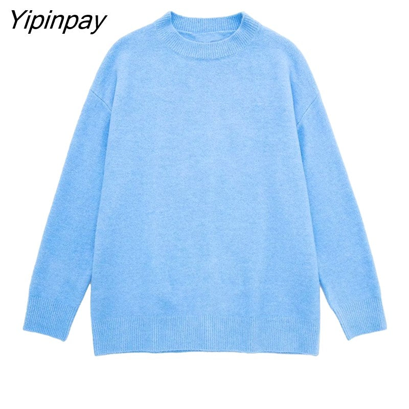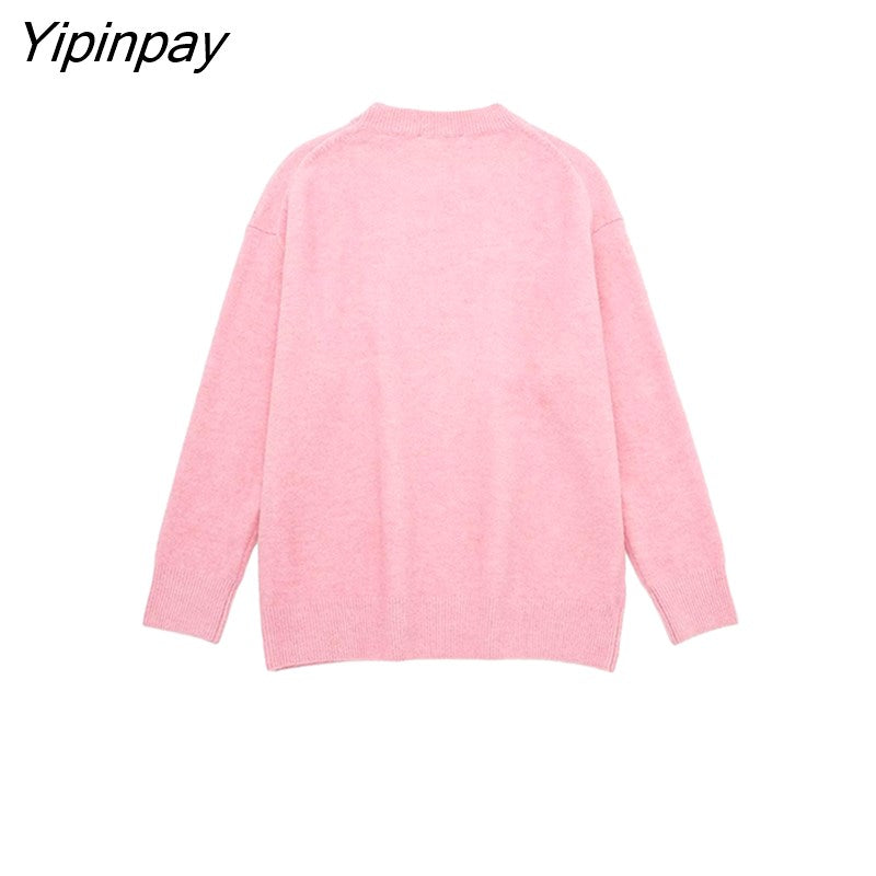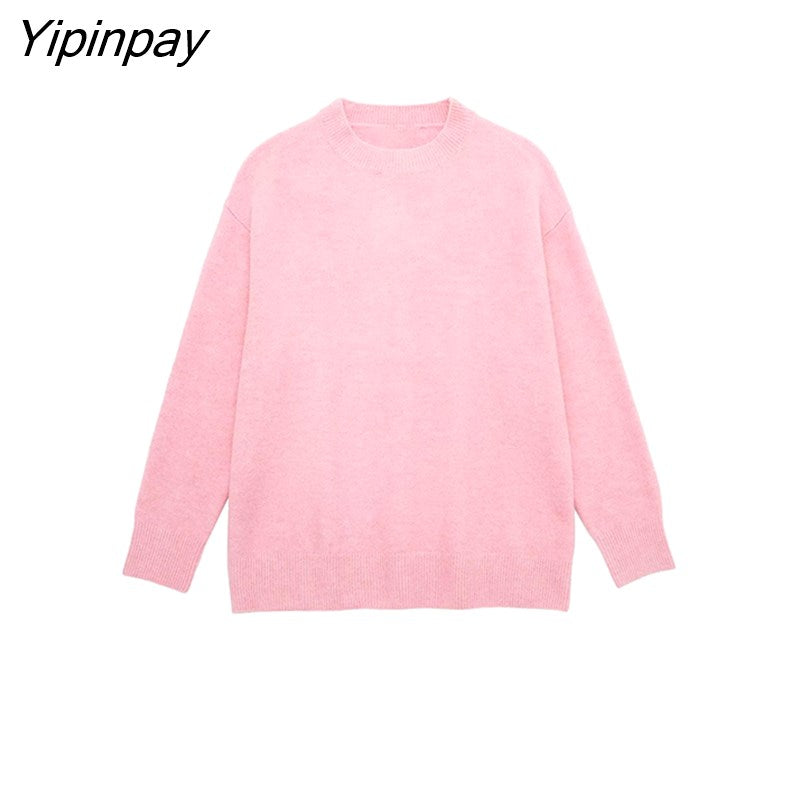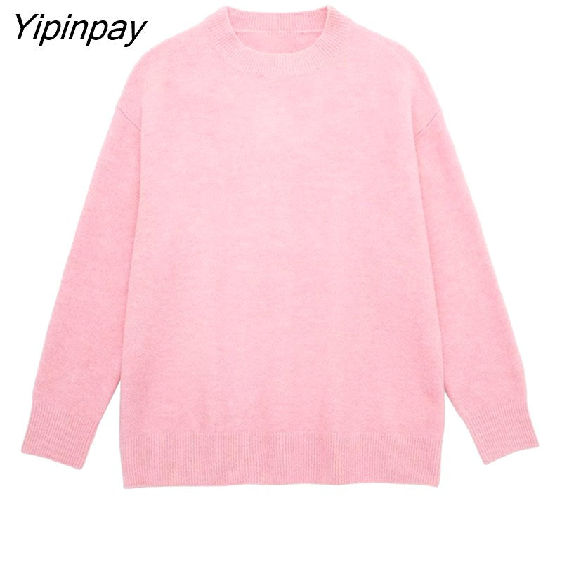 Yipinpay Fashion Solid Pink Knitted Sweater 2023 Spring Autumn Long Sleeve O-neck Pullover Tops Oversize Soft Casual Streetwear