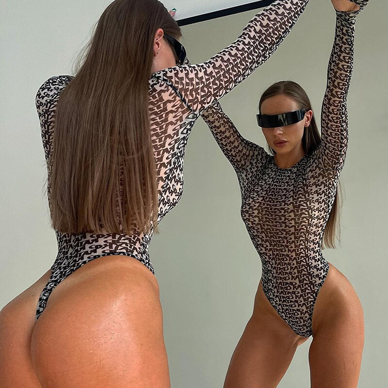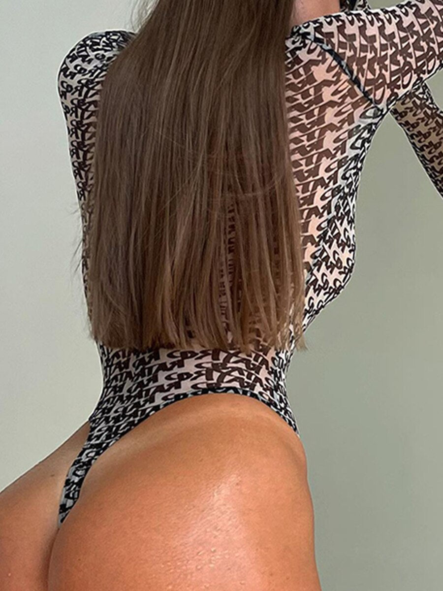 Yipinpay Fashion Women Romper Long Sleeve Round Neck Letters Print Casual Party Bodysuit Tops Grey Skin Friendly Street Style S M L