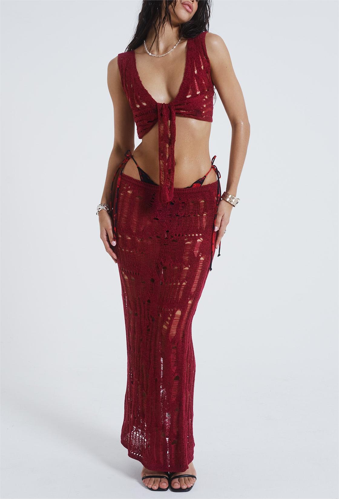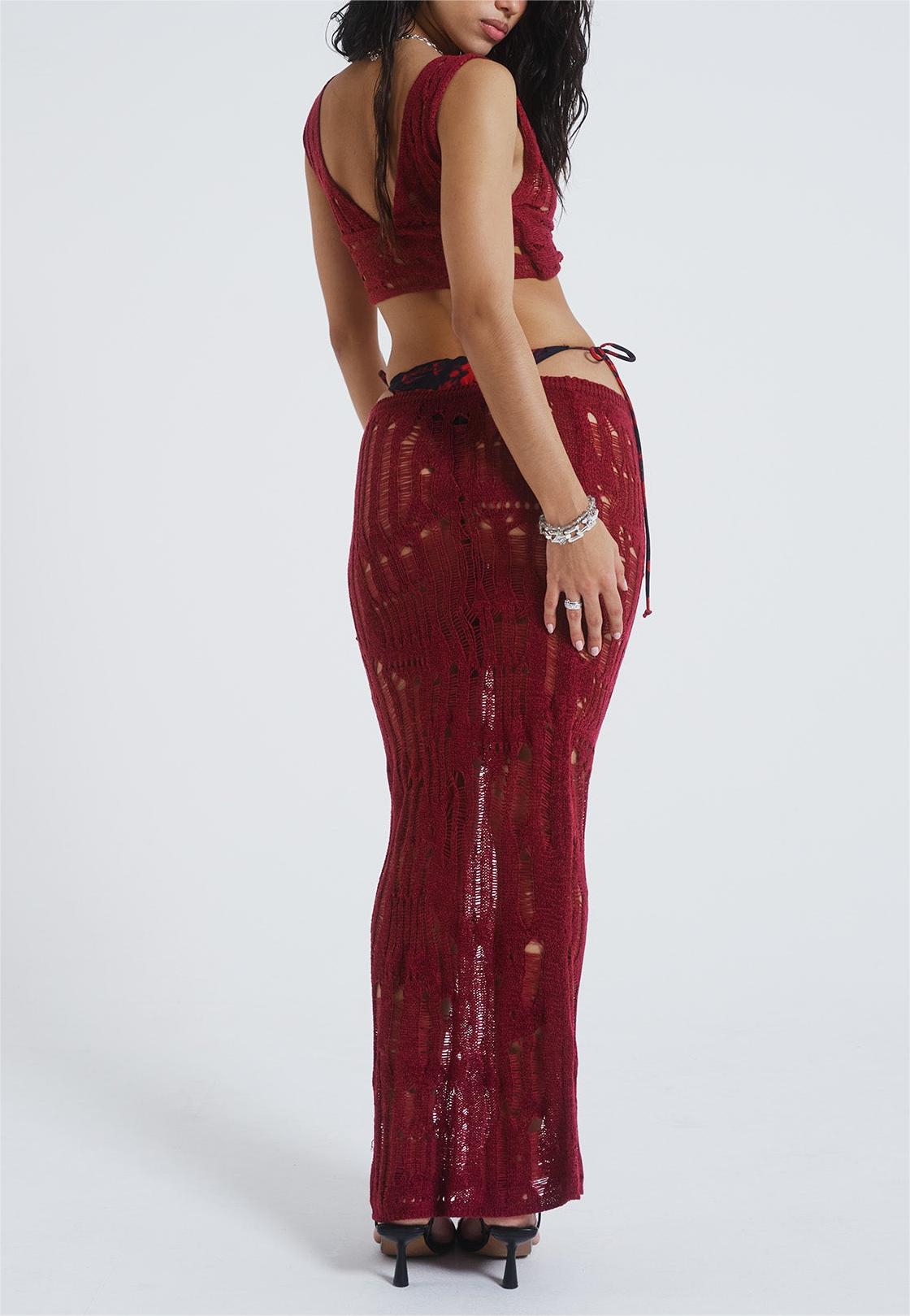 Yipinpay Fashion Women Summer Outfits Solid Color Sheer Bandage Knit Tank Tops And Elastic Low Waist Long Skirt Set Clubwear S M L