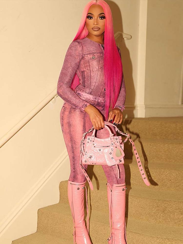 Yipinpay Faux Denim Printed Leggings Outfits Sexy O Neck Zipper Tops And Tight Trousers Suit 2023 High Street Spice Girls Wear