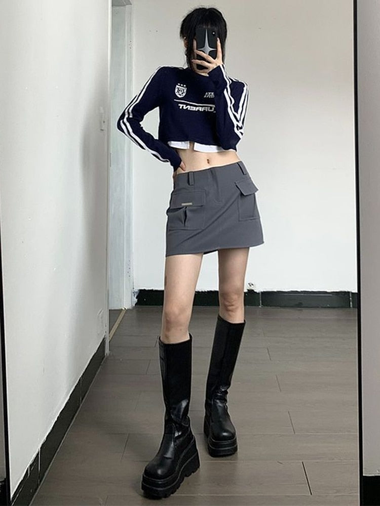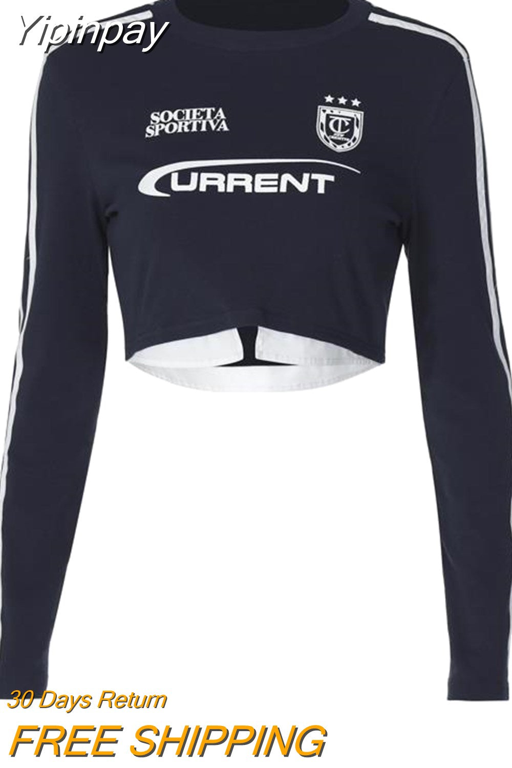 Yipinpay Graphic T Shirts Women Acubi Fashion Crop Top Y2k Kpop Casual Print Long Sleeve T-shirts Patchwork Streetwear Spring