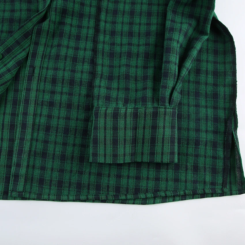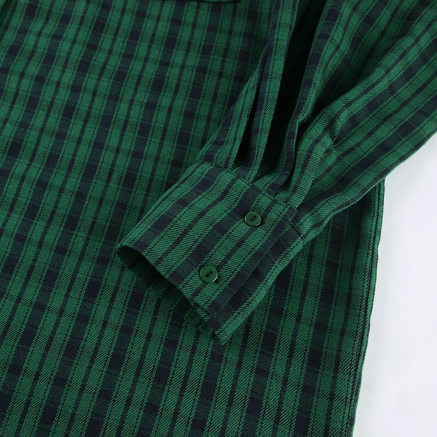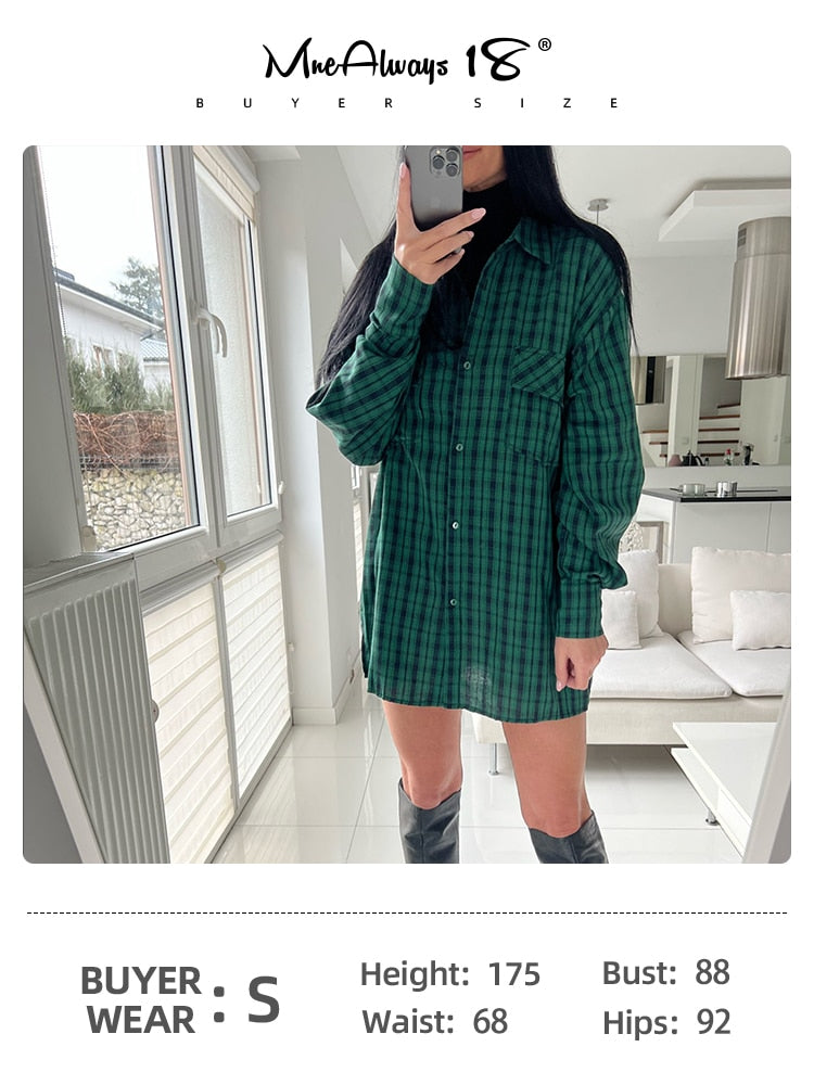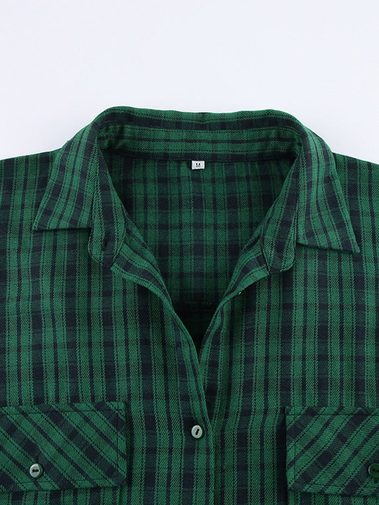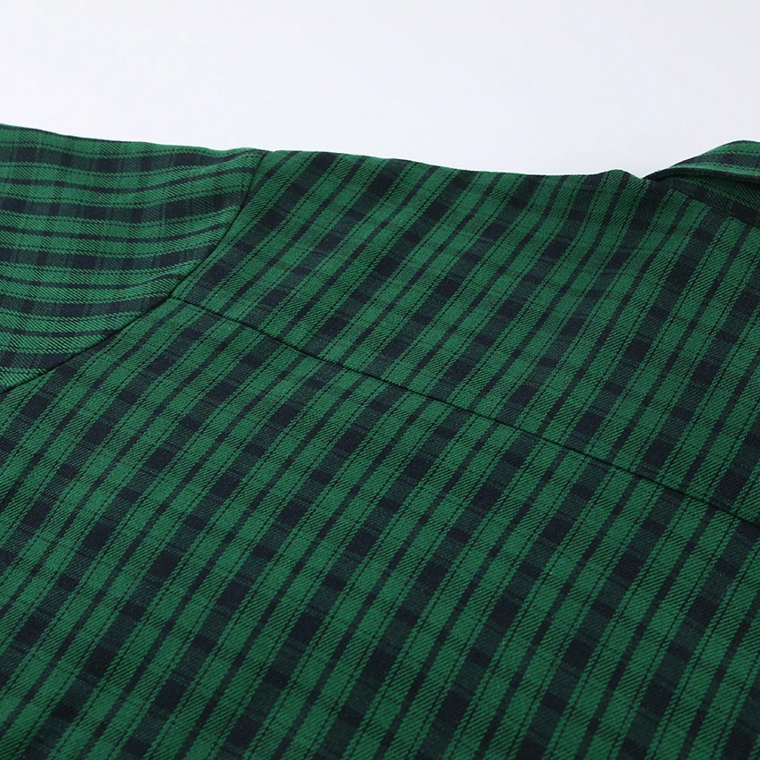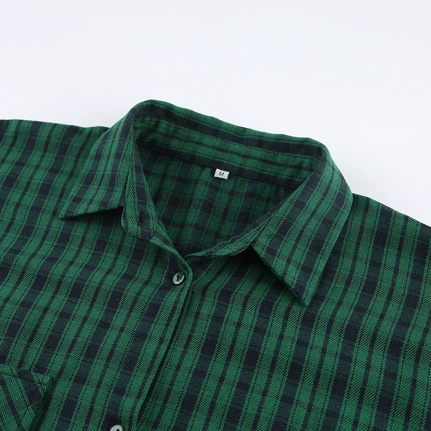 Yipinpay Green Shacket Oversize Shirts Women Dropped Shoulder Street Style Plaid Blouses Double Pockets Casual Loose Top 2023