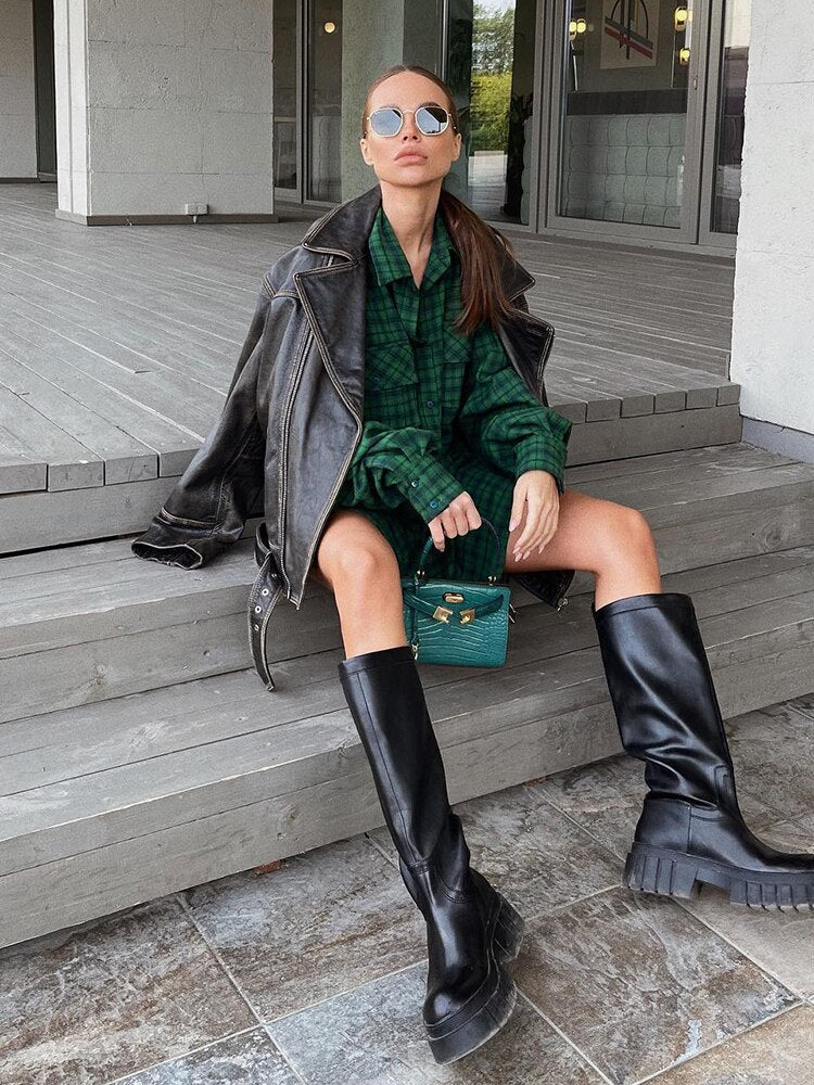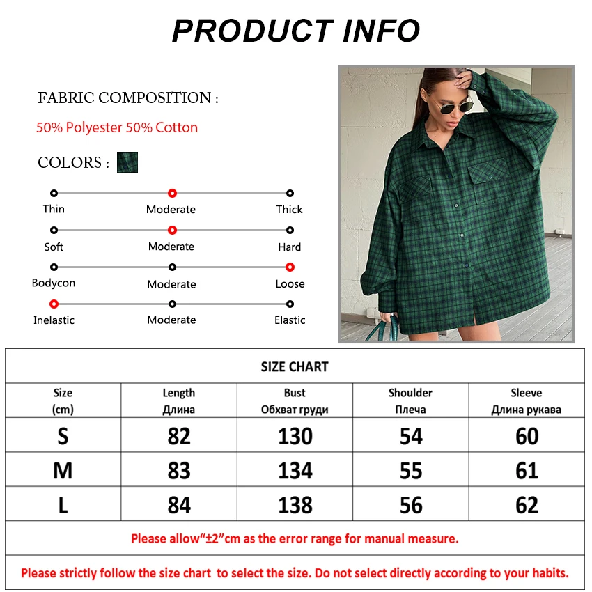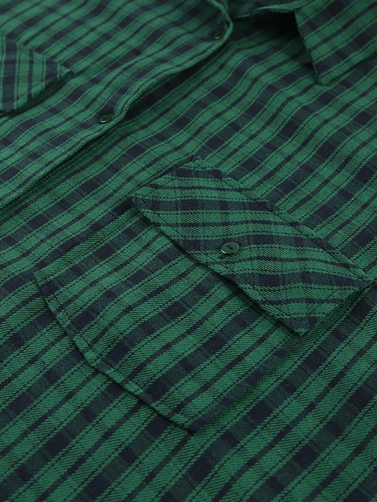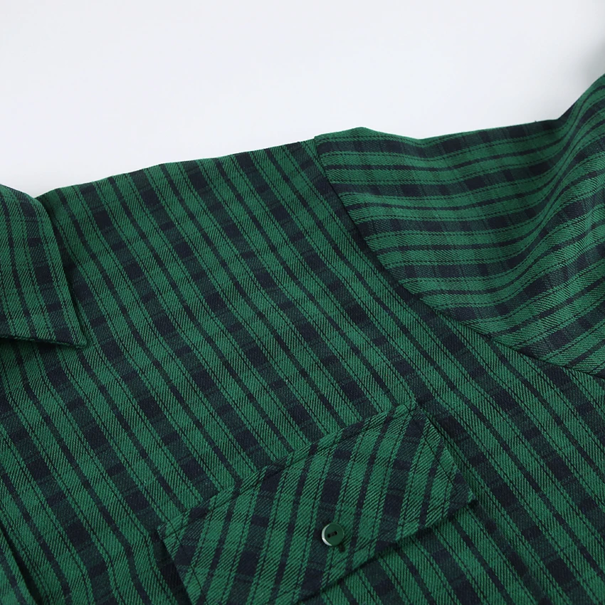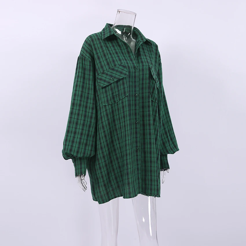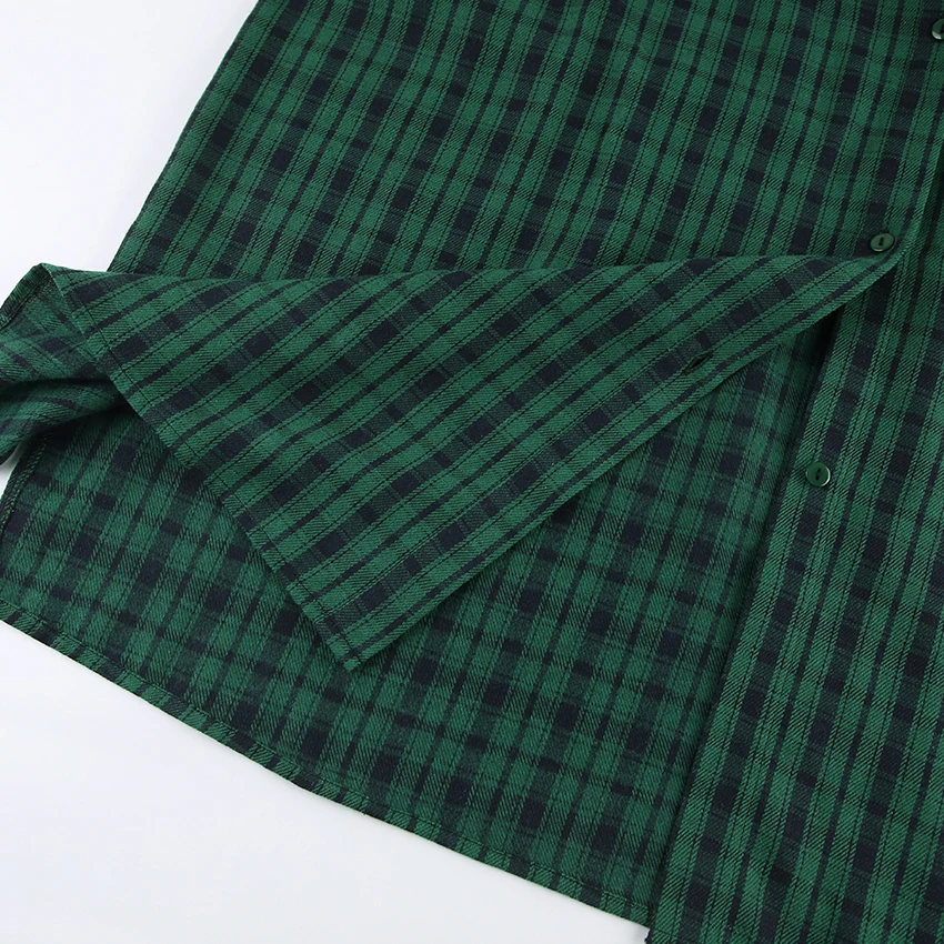 Yipinpay Green Shacket Oversize Shirts Women Dropped Shoulder Street Style Plaid Blouses Double Pockets Casual Loose Top 2023