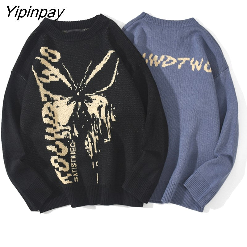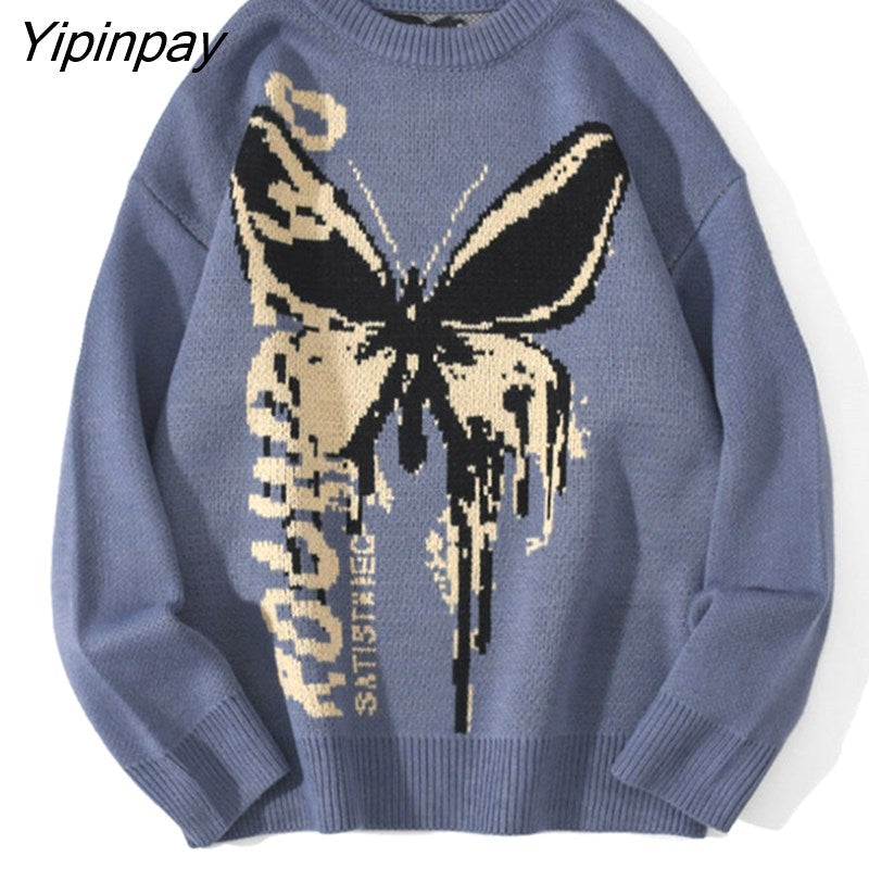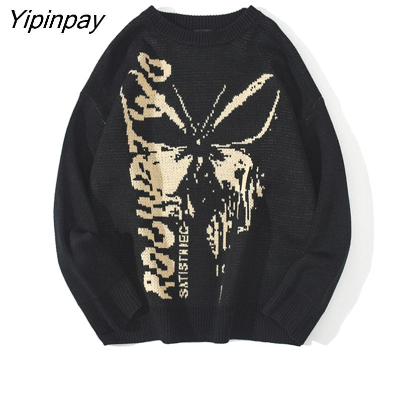 Yipinpay Hop Knitwear Mens Women's Sweaters 2023 Harajuku Fashion Butterfly Male Loose Tops Casual Streetwear Pullover Sweaters
