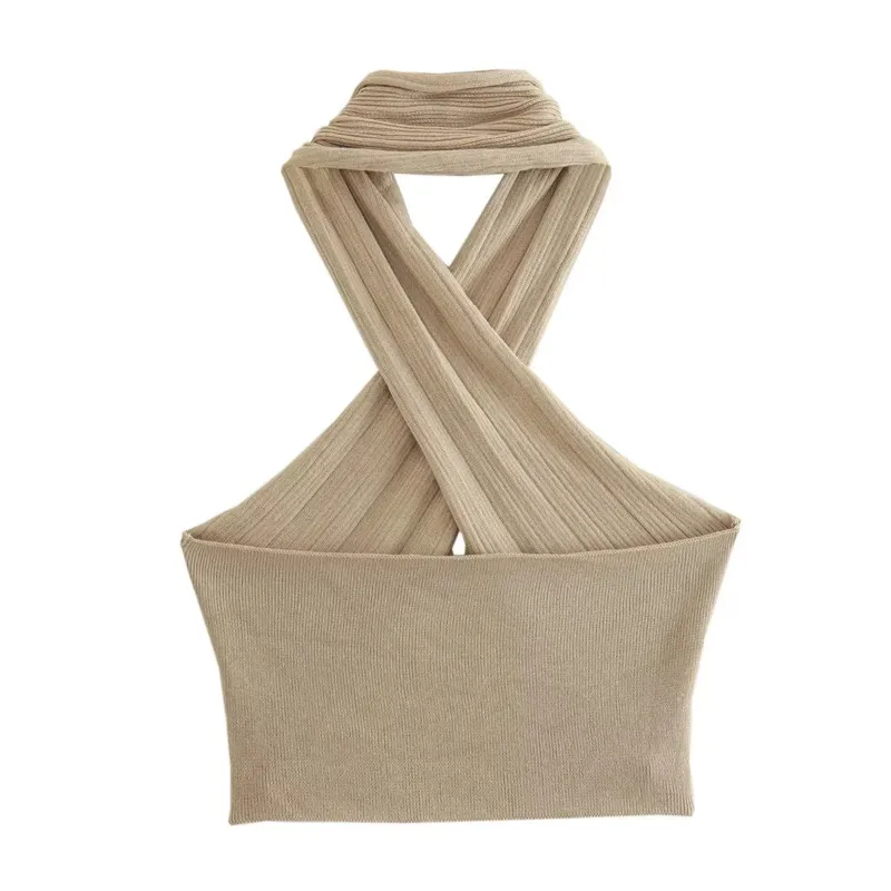 Yipinpay Knitted Halter Top Female Backless Knit Crop Top Women Summer Sexy Off Shoulder Tops For Women 2023 Sleeveless Corset Tops