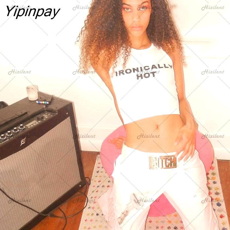 Yipinpay Letter Print Crop Top Women Fashion Sleeveless O-Neck Basic Slim Vest Tee Cool Girls Streetwear Vintage Gothic Tanks