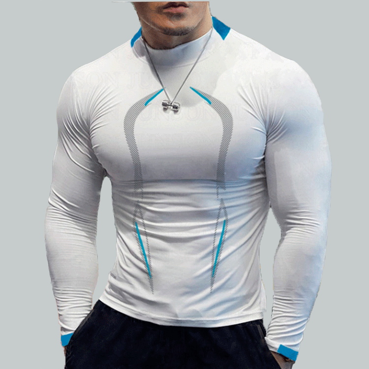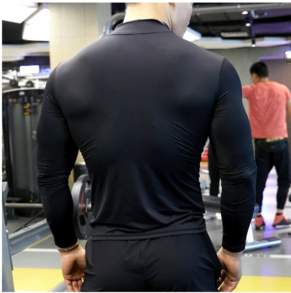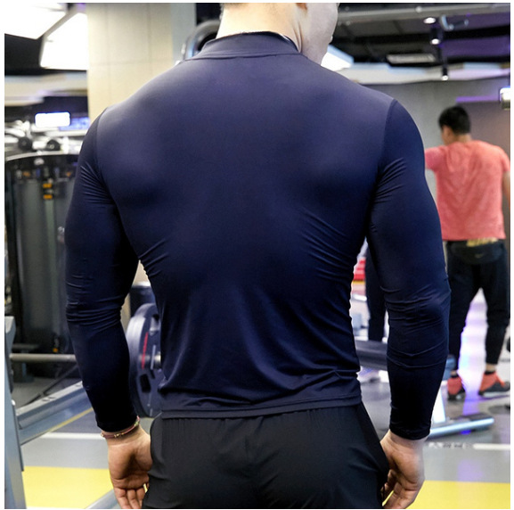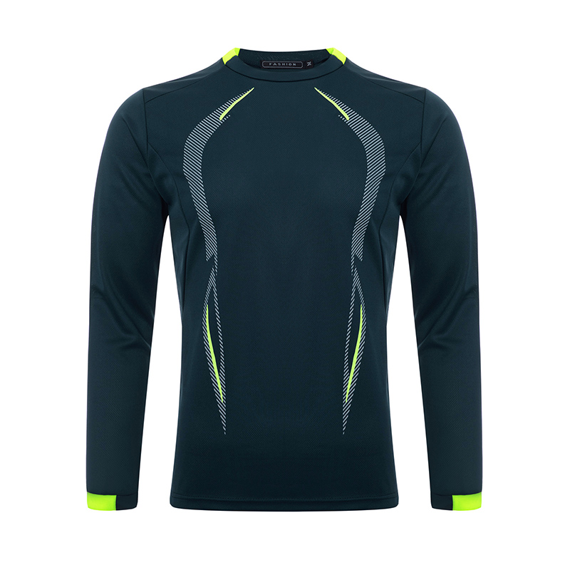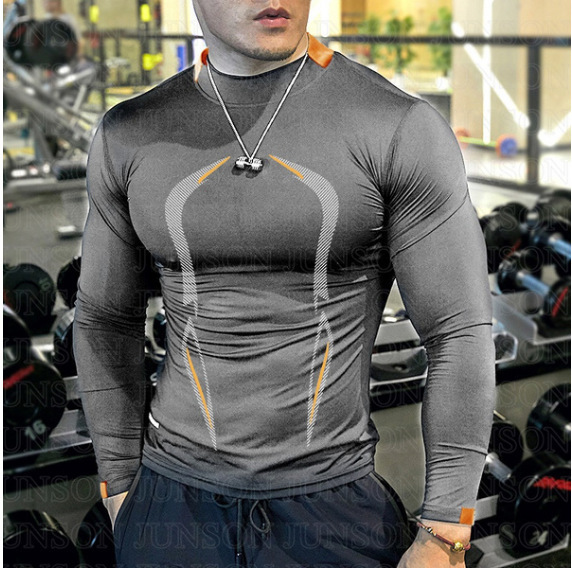 Yipinpay Men Sports Shirt Round Neck Long Sleeve Elastic Quick Drying Tops Fitness Running Casual Clothing Breathable Comfortable