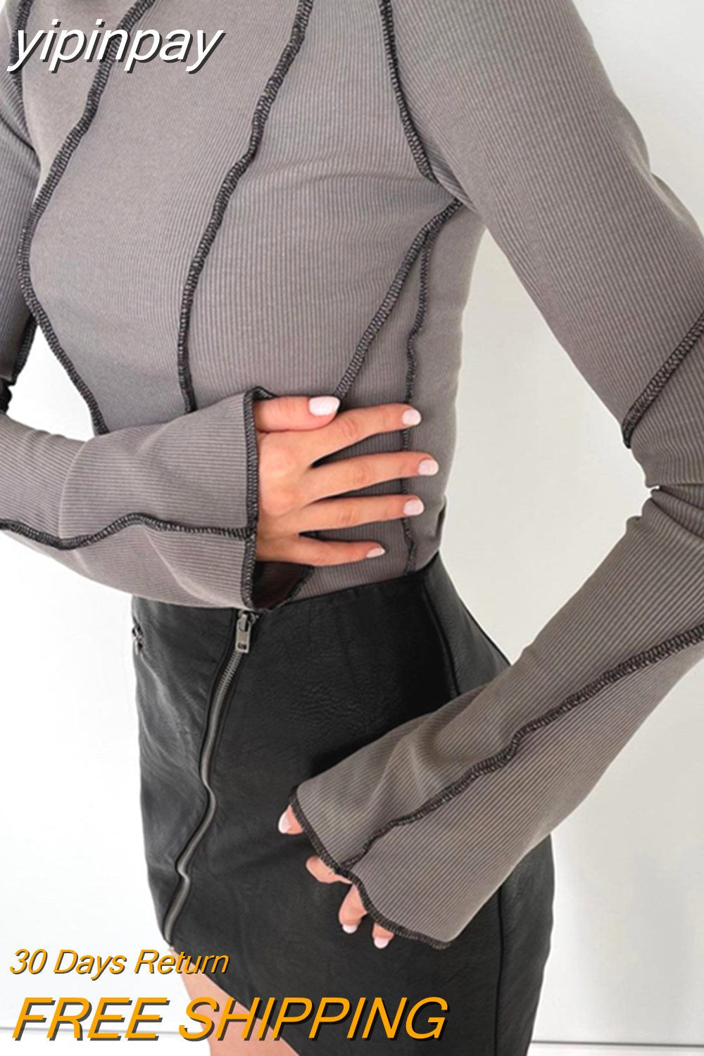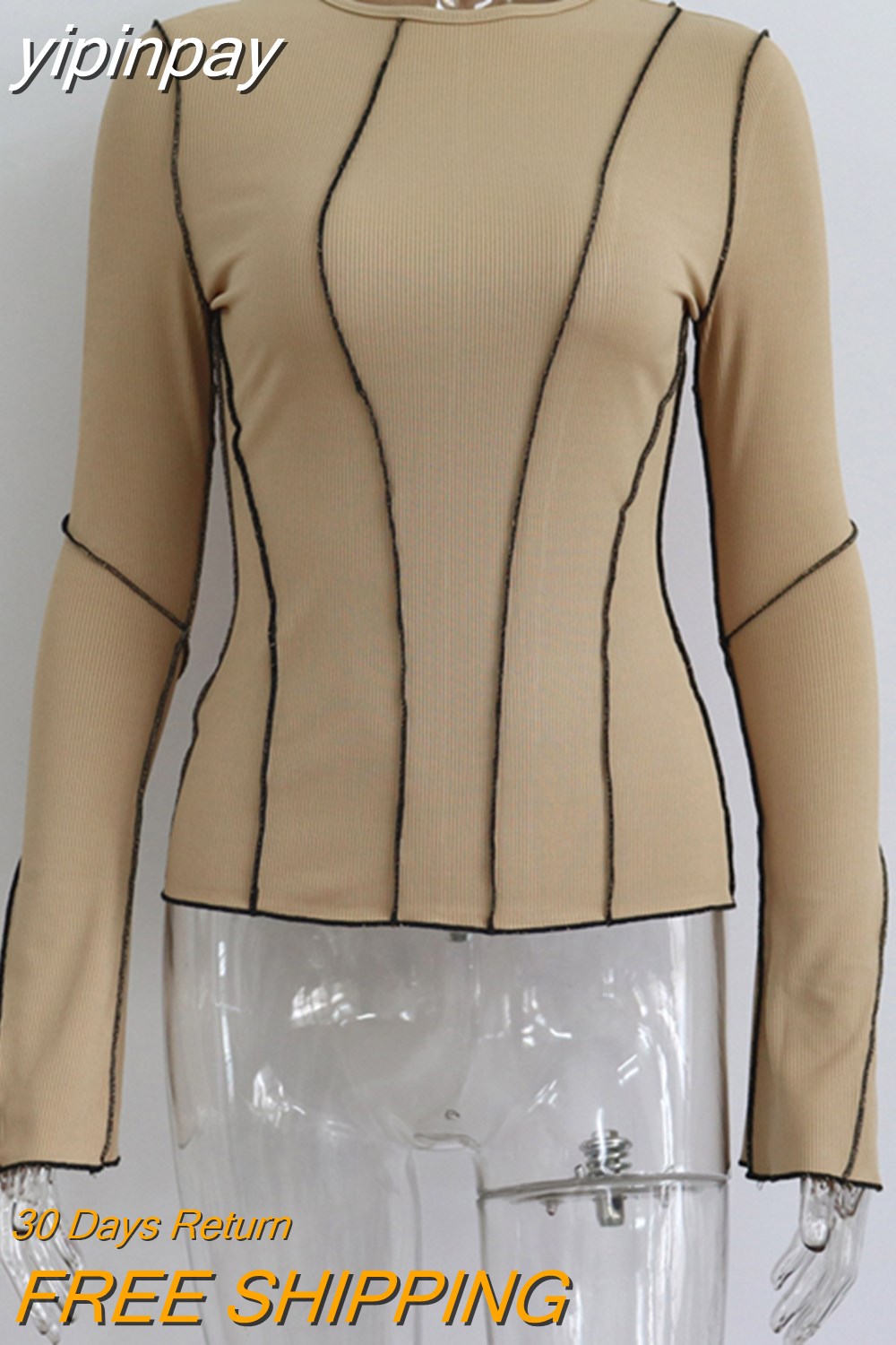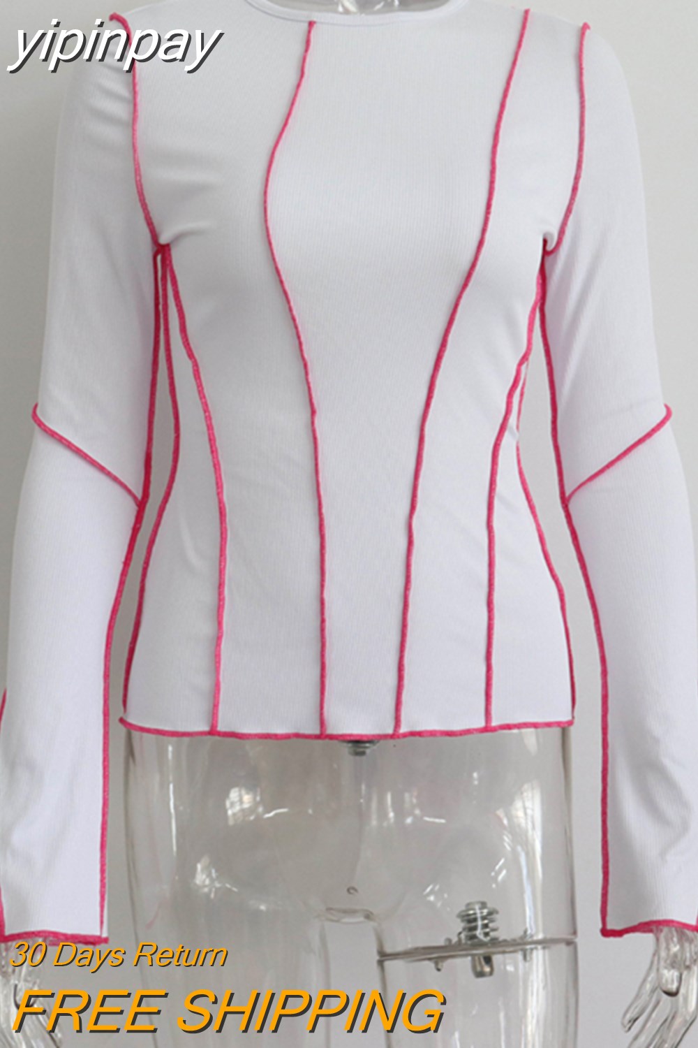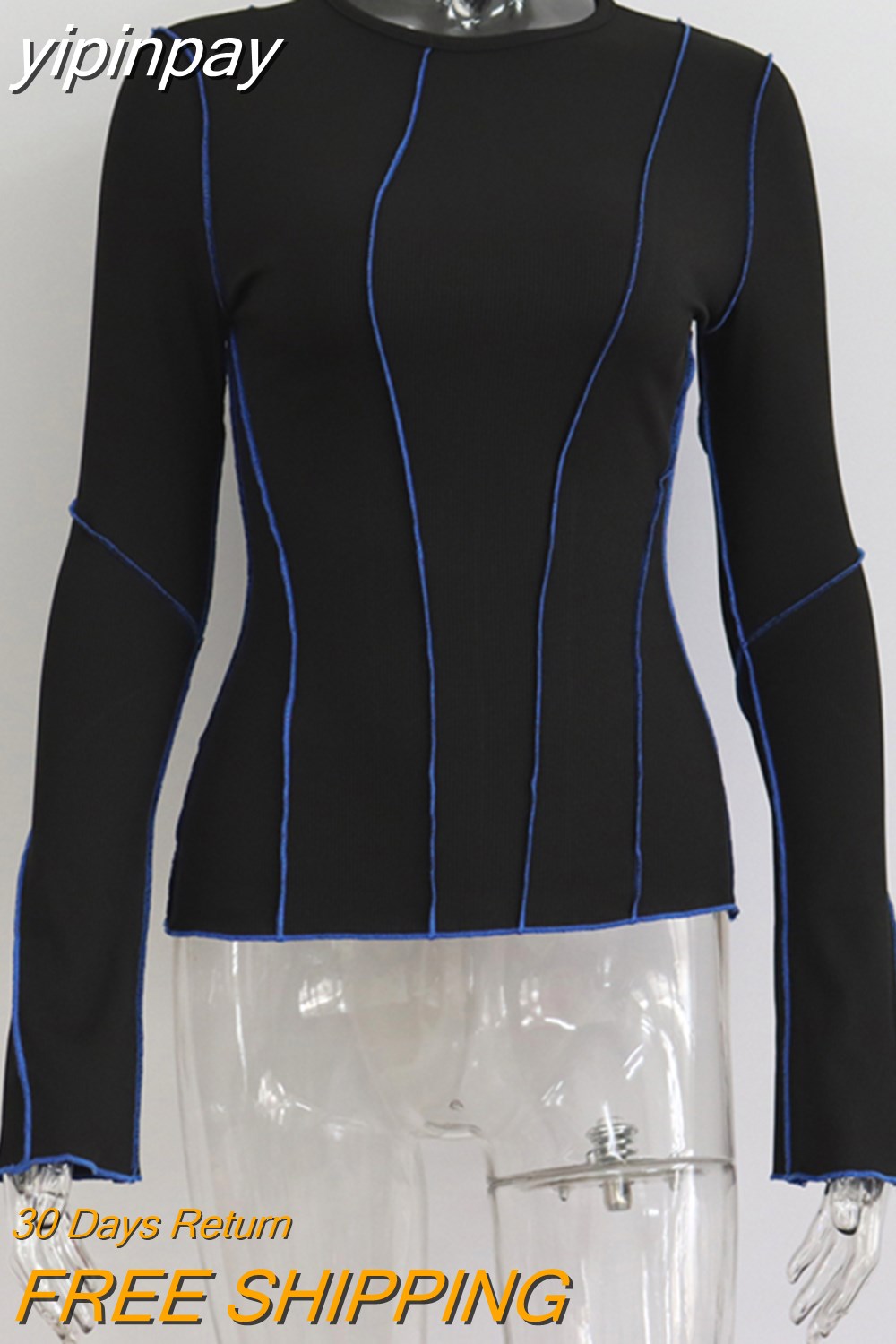 yipinpay O Neck Long Sleeve Women Autumn Y2K Ribber Knitted Skinny Sexy T Shirt Tops Streetwear Fashion Casual Club Crop Top Tees