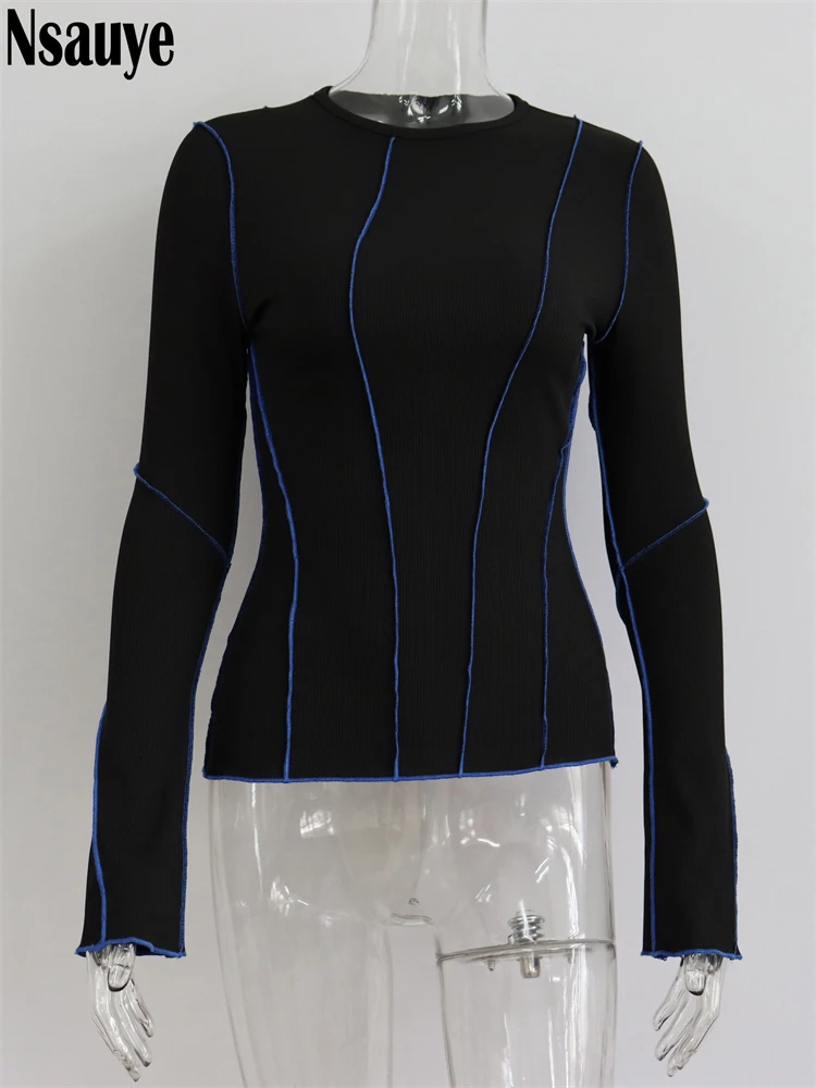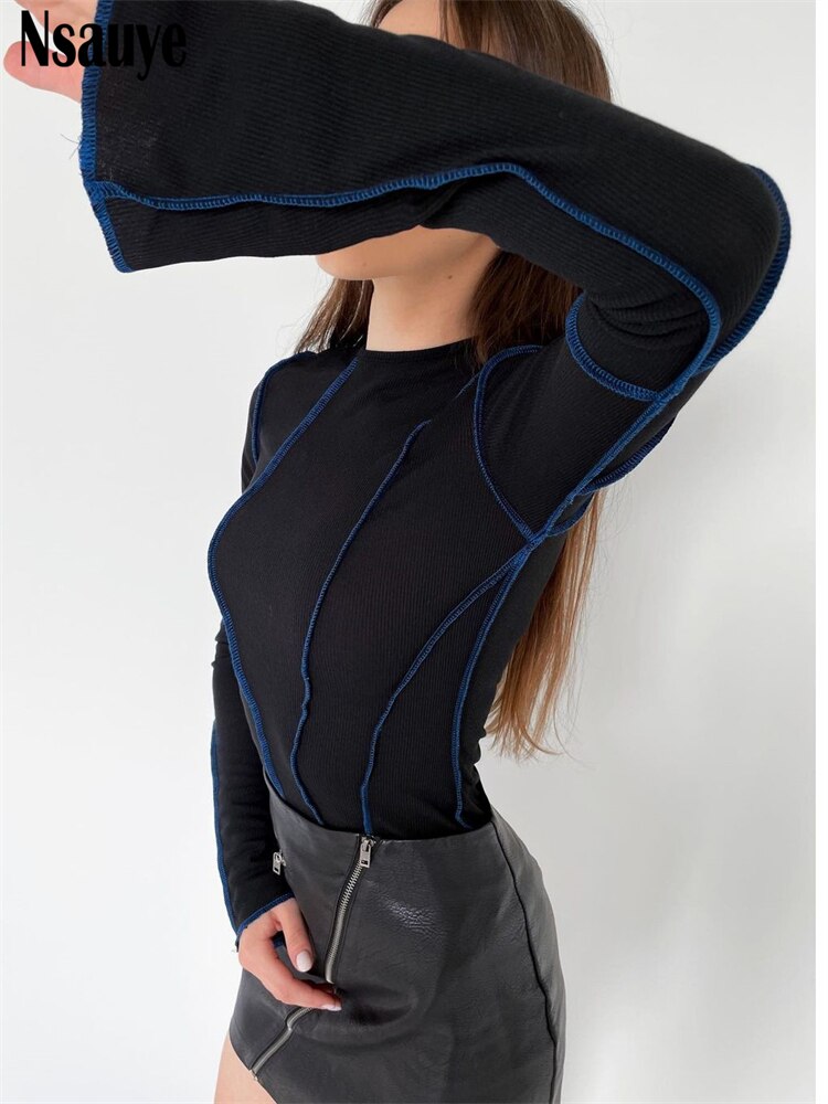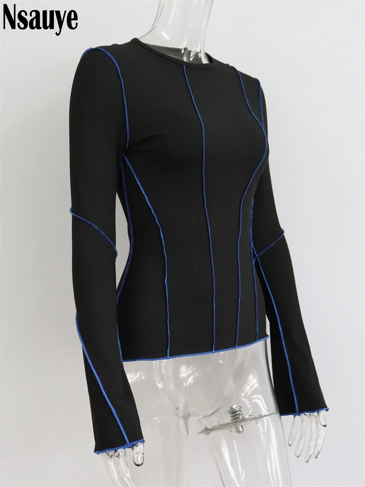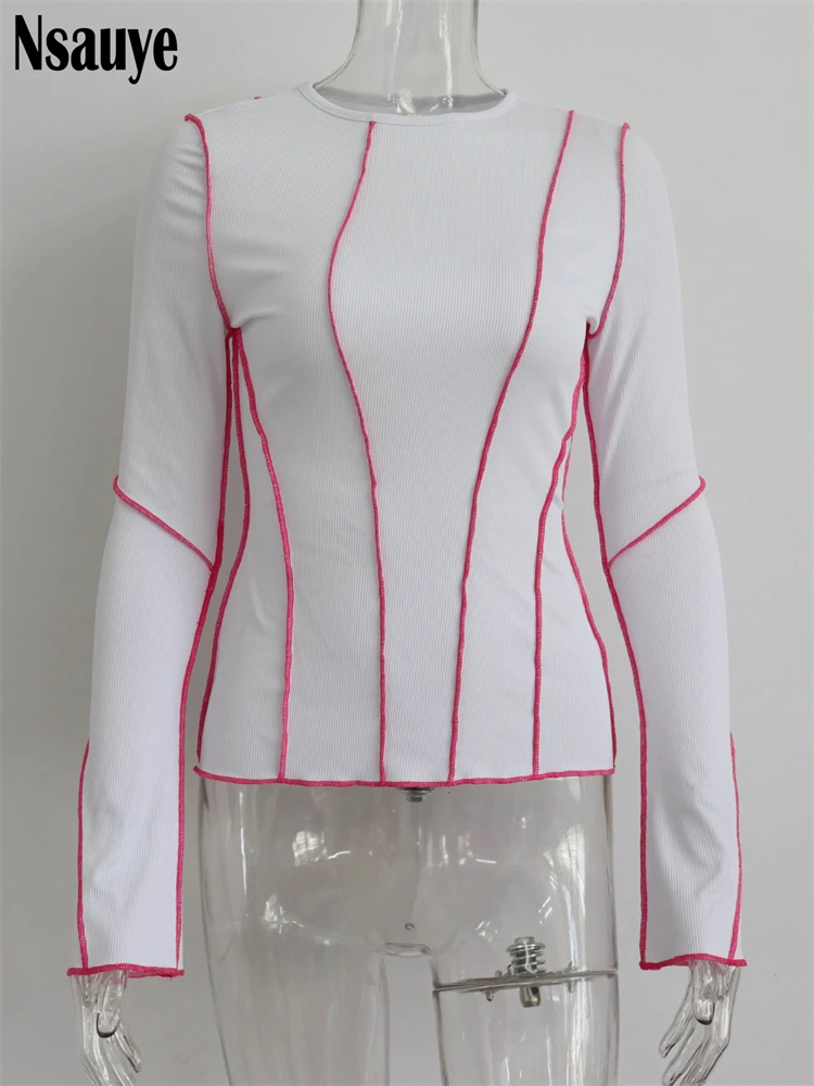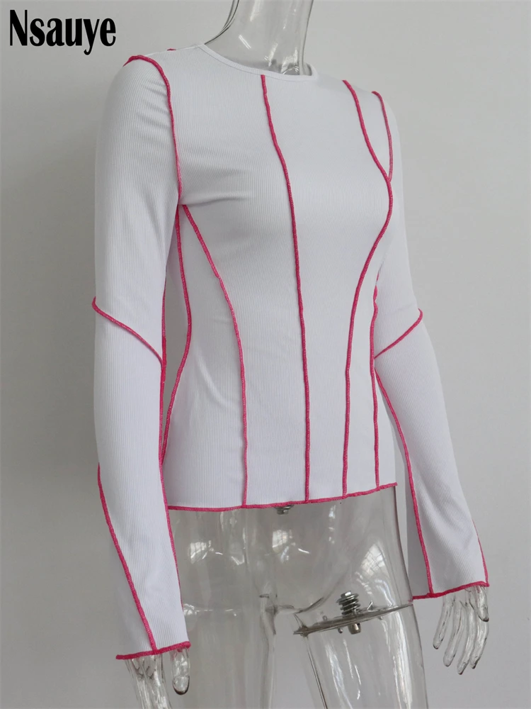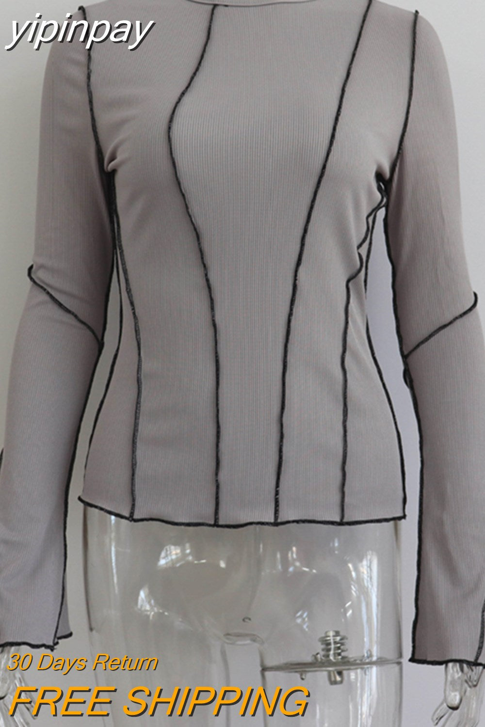 yipinpay O Neck Long Sleeve Women Autumn Y2K Ribber Knitted Skinny Sexy T Shirt Tops Streetwear Fashion Casual Club Crop Top Tees
