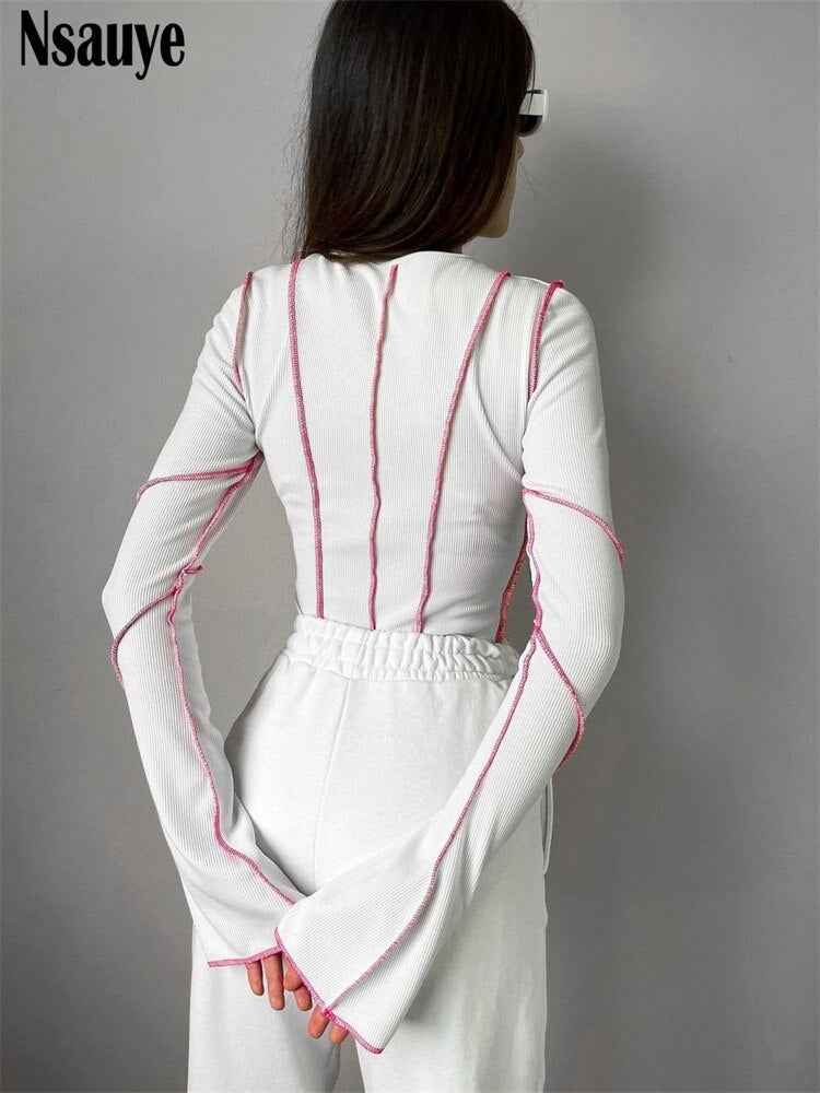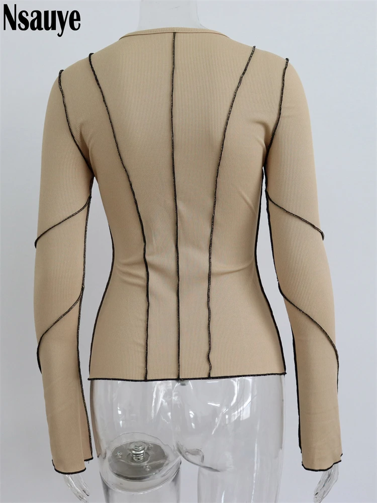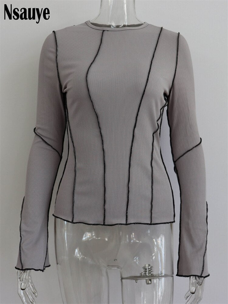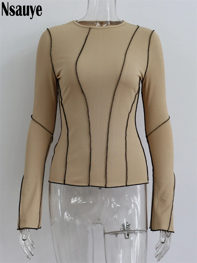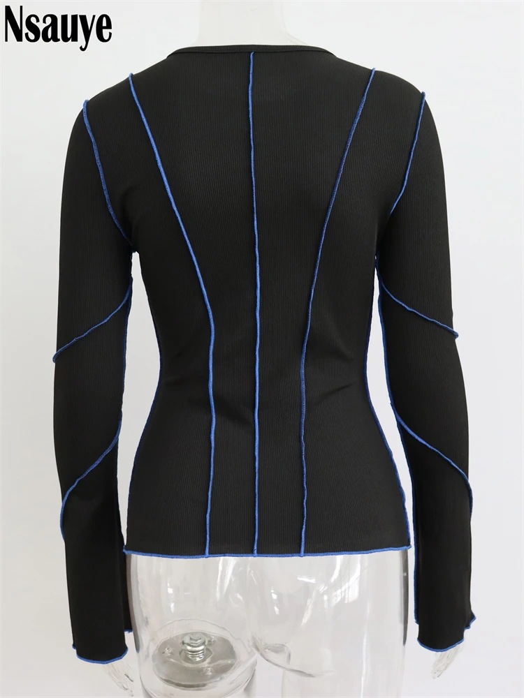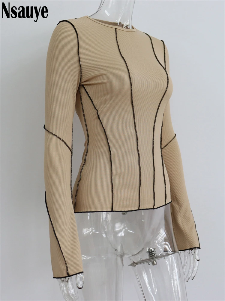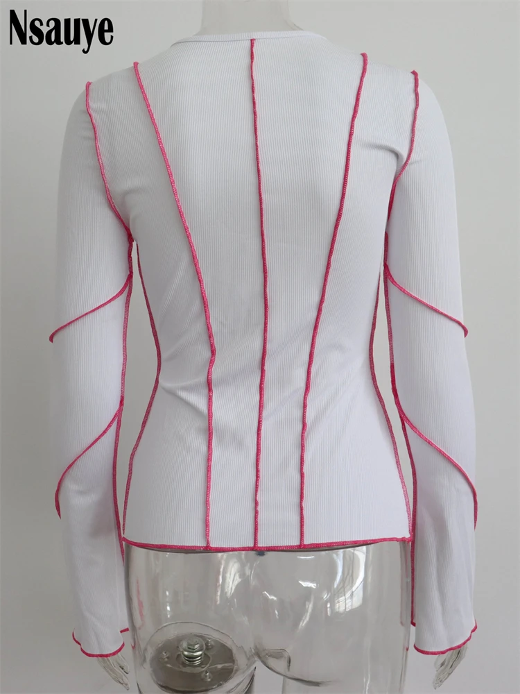 yipinpay O Neck Long Sleeve Women Autumn Y2K Ribber Knitted Skinny Sexy T Shirt Tops Streetwear Fashion Casual Club Crop Top Tees