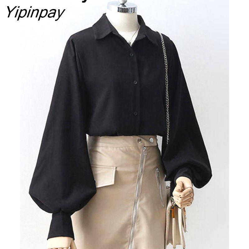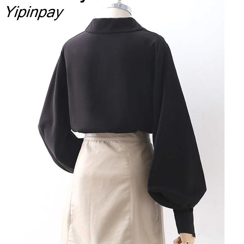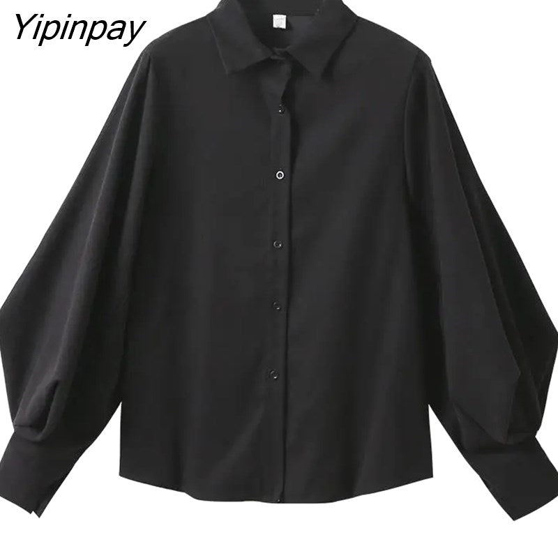 Yipinpay Office Lady Long Puff Sleeve White Za Shirt Women Korean Style Button Blouse Tunic 2023 Summer Work Female Clothing Tops