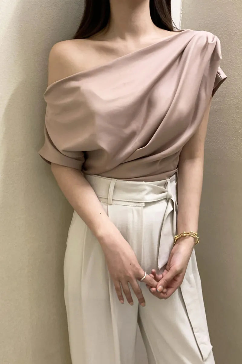 Yipinpay OL Shirts Off Shoulder Short Sleeve Pleated Shirt Women Temperament Top Blusas De Mujer Black Chiffon Blouse Slim