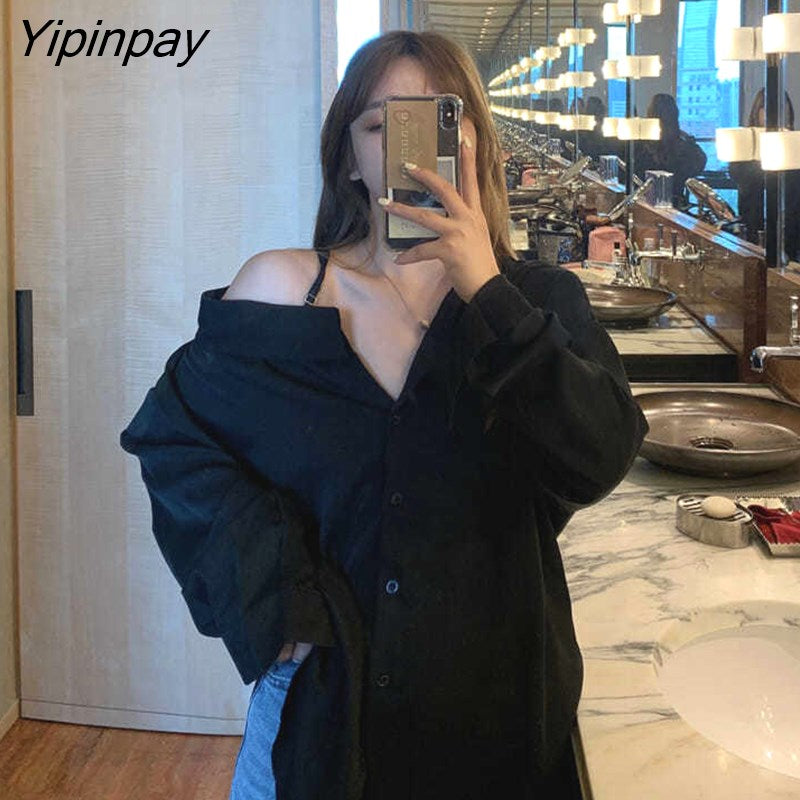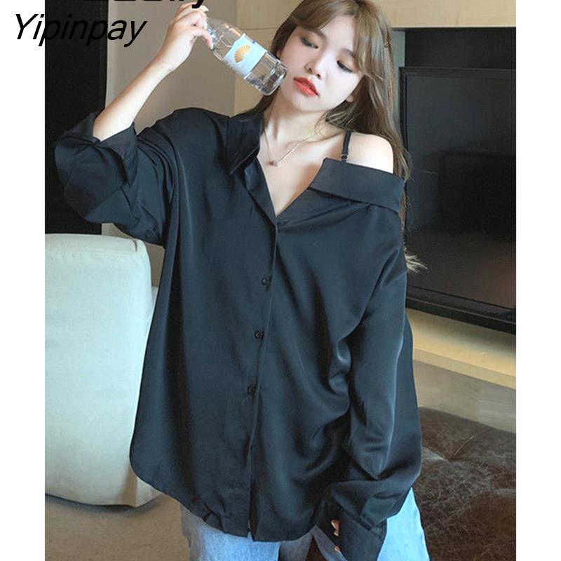 Yipinpay Oversize One Shouler Black Shirt Women Casual Long Sleeve Button Ladies Blouse 2023 Summer Daily Female Tops Tunic
