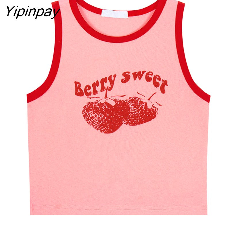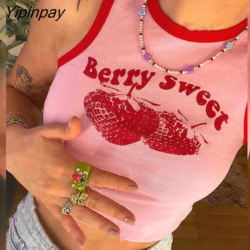 Yipinpay Pink Print Y2k Tank Top Summer Off Shoulder O Neck Sleeveless Fashion 90s Vintage Crop Tops Women Casual Sexy