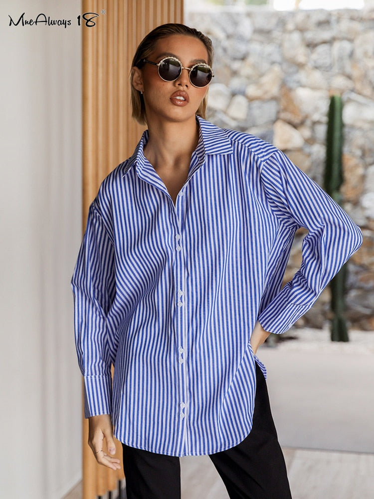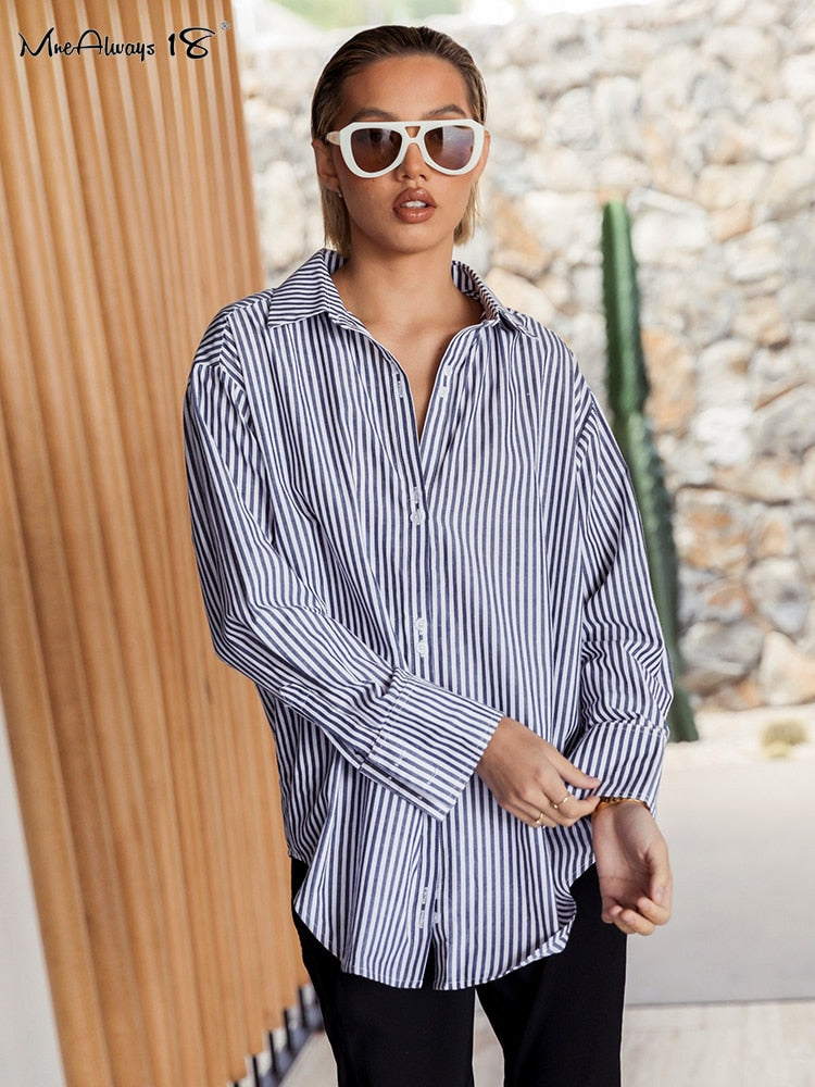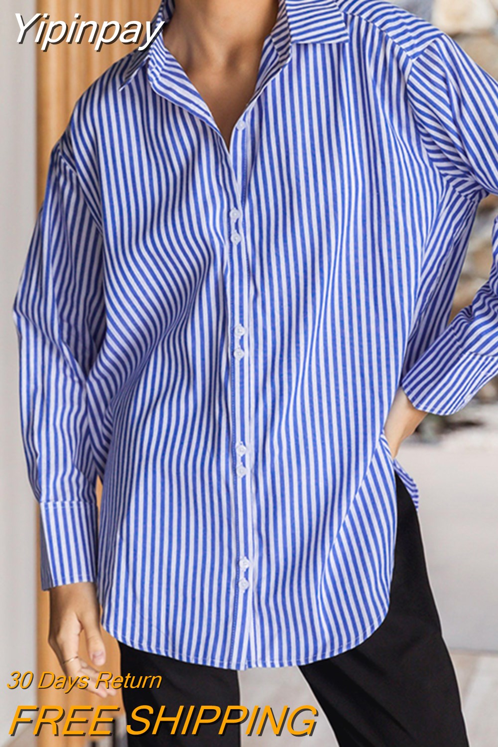Yipinpay Pink Stripe Women Lapel Shirts Autumn Long Sleeve Fashion 2023 Oversize Blouses And Tops Office Ladies Streak Casual