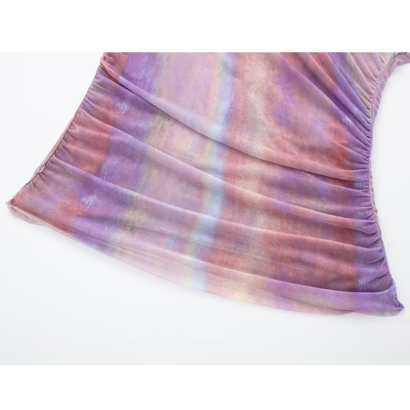 Yipinpay Print Mesh Top Women Tulle Summer Blouses Woman 2023 Ruched Sleeveless Top Female Turtleneck Stylish Women's Blouse