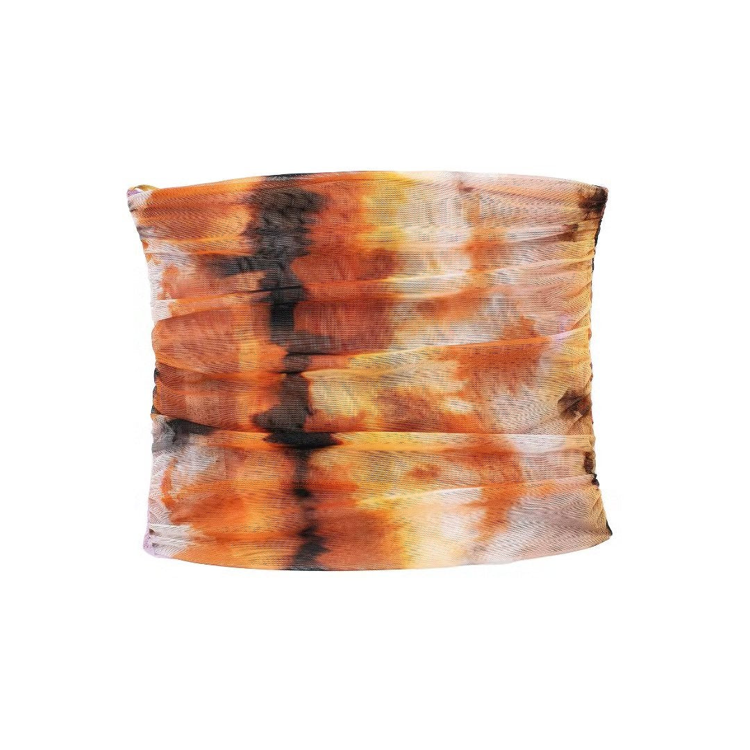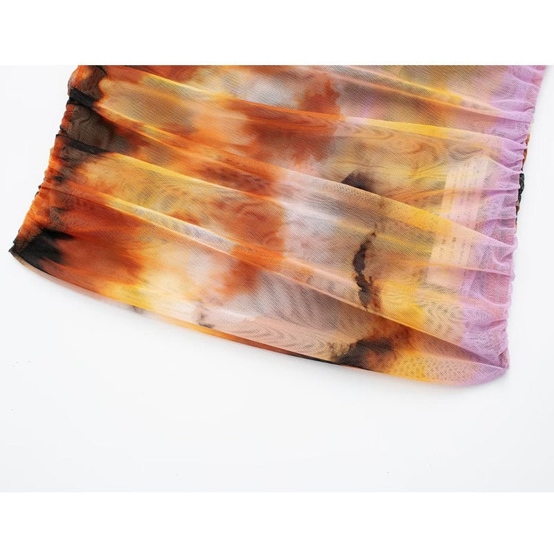 Yipinpay Print Tulle Crop Top Women Off Shoulder Corset Tops For Women Ruched Sleeveless Backless Mesh Top Female Sexy Summer Tops