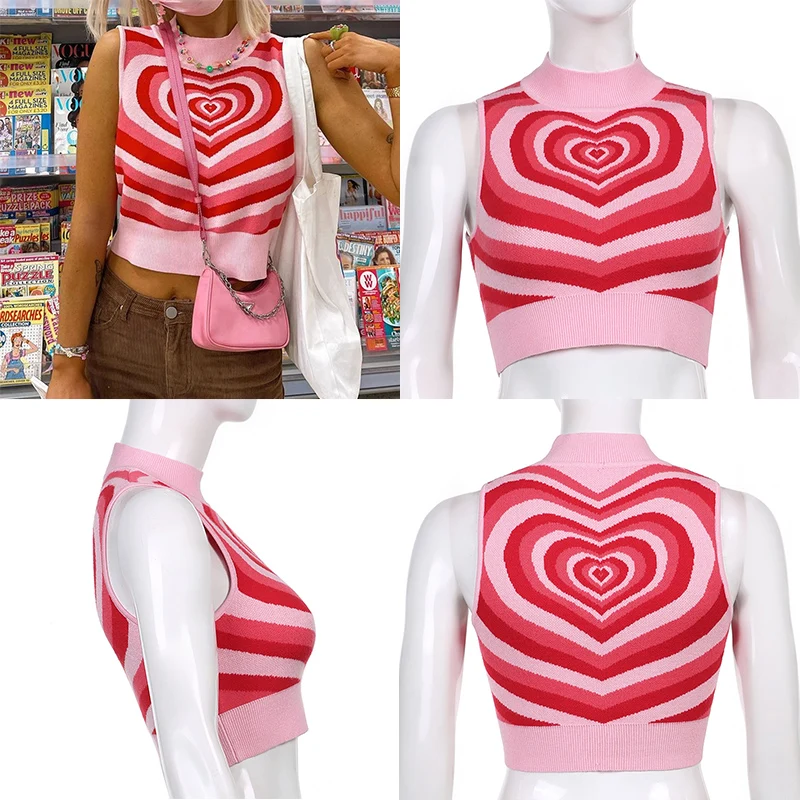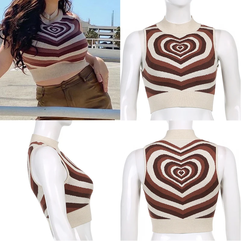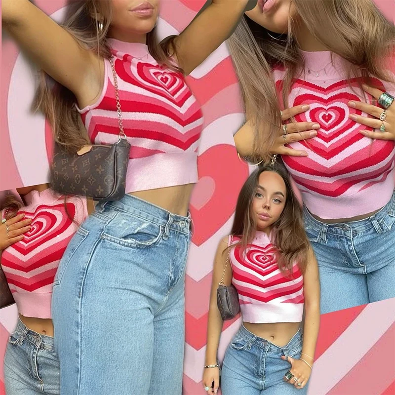 Yipinpay Printed Y2K Knitted Women's Tank Tops Summer Harajuku Vintage Crop Tee Streetwear Aesthetic Cute Shirts 2023 Cuteandpsycho