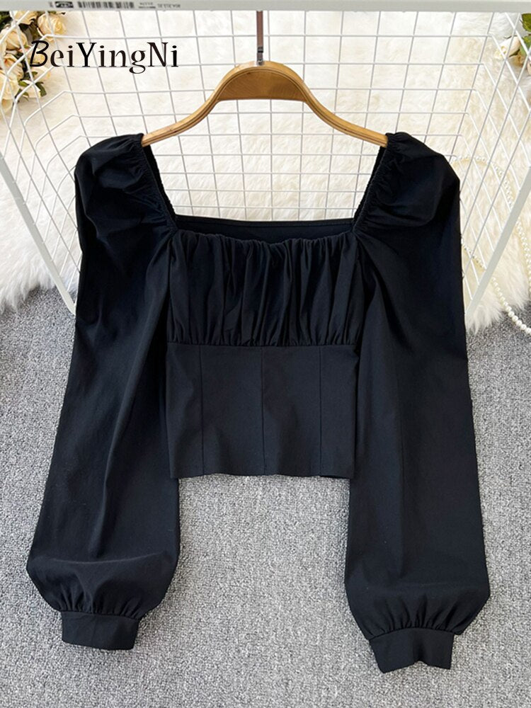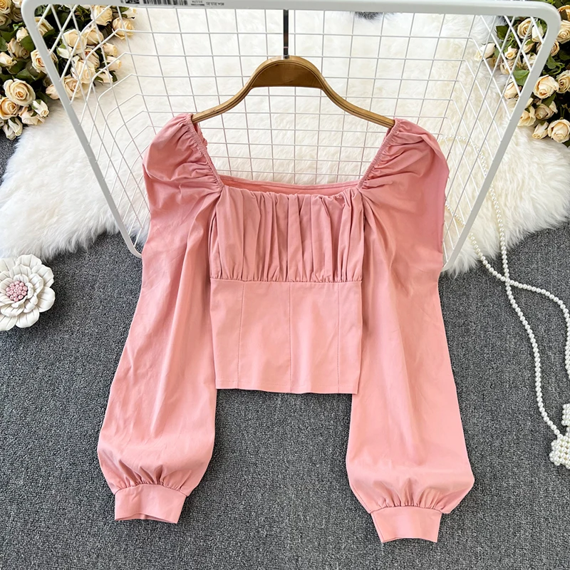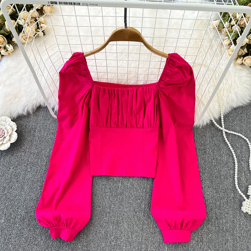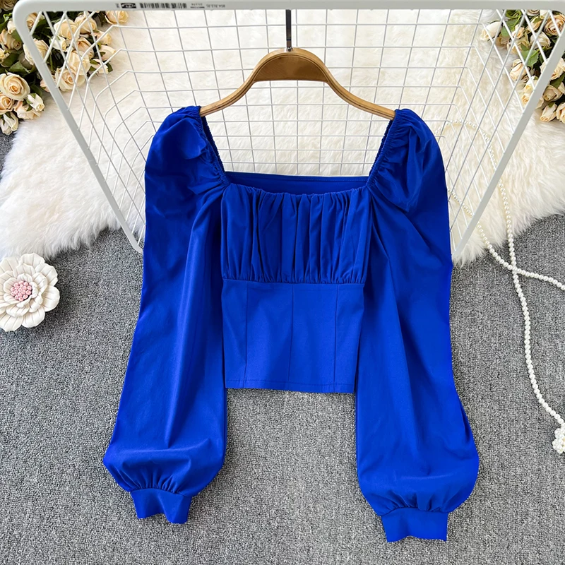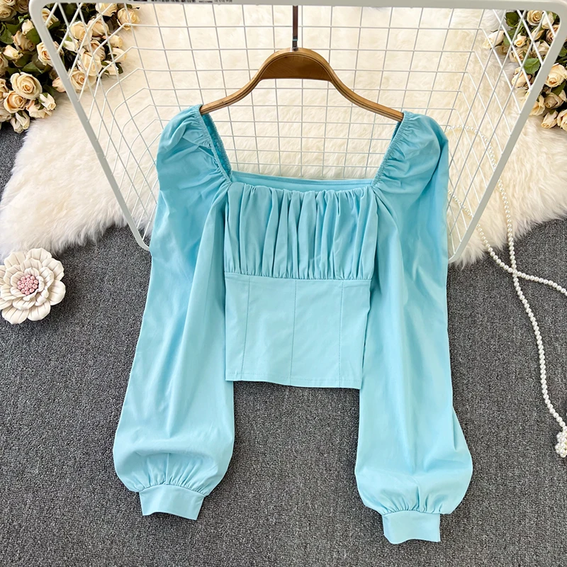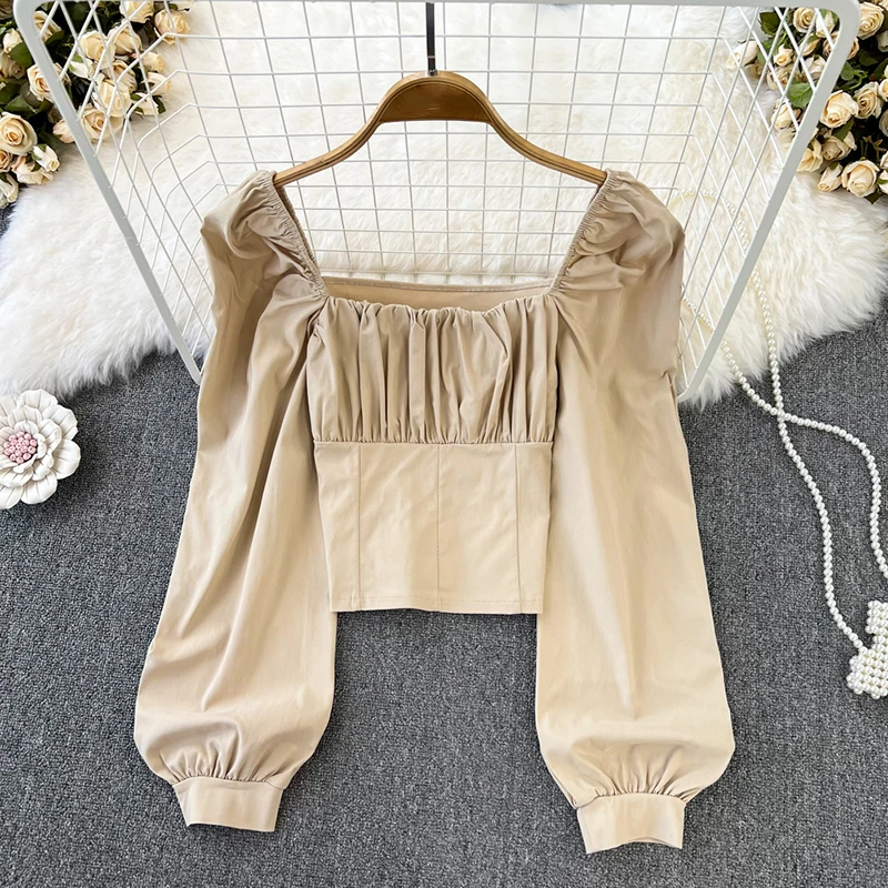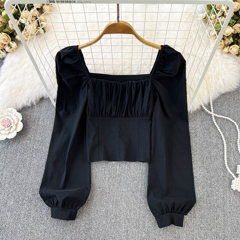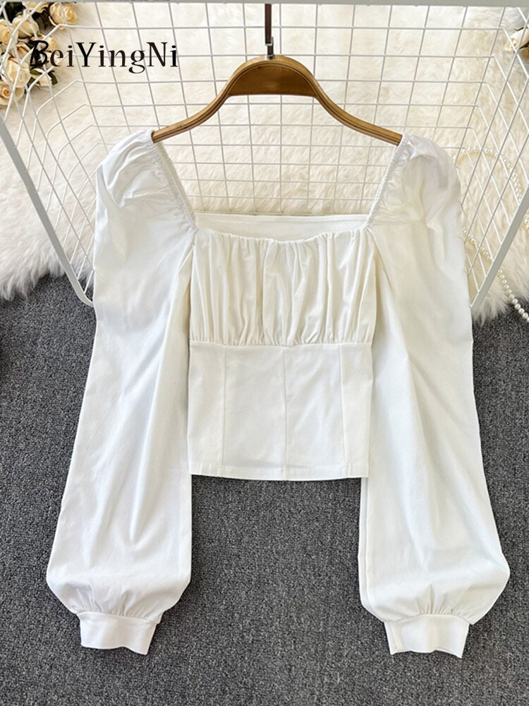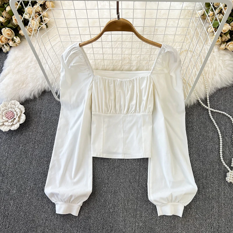 Yipinpay Puff Sleeve Square Collar Shirts Women Elegant Sexy Ruched Korean Female Blouses Streetwear Y2K Harajuku Blusas Tops