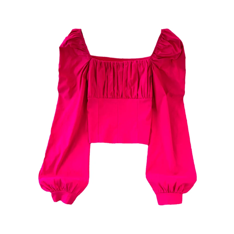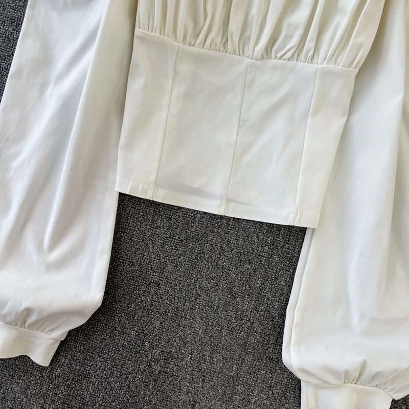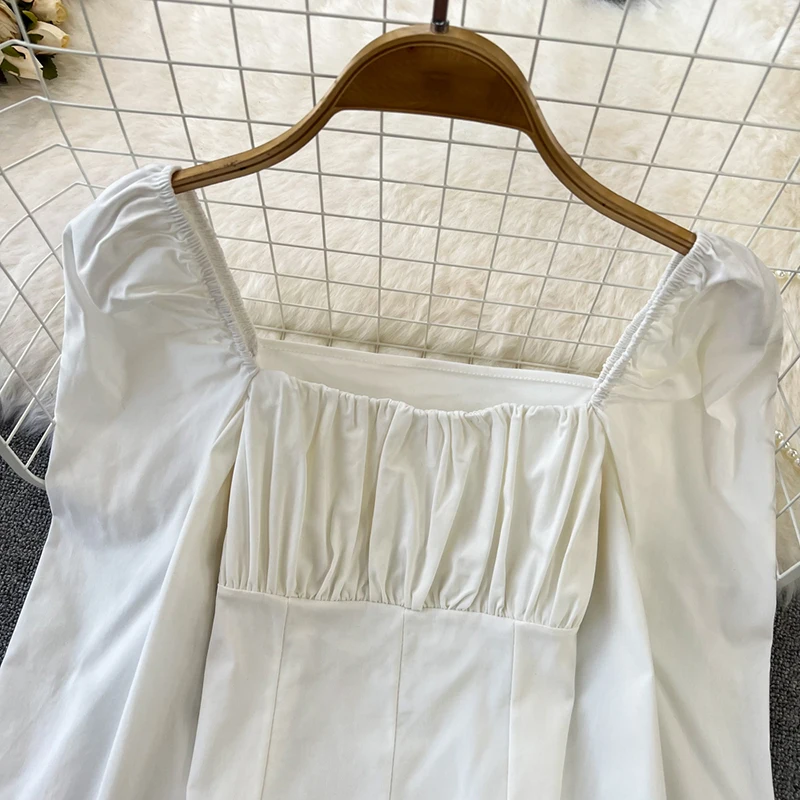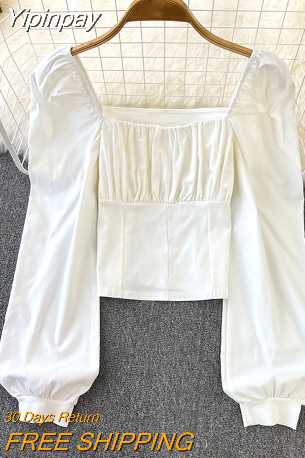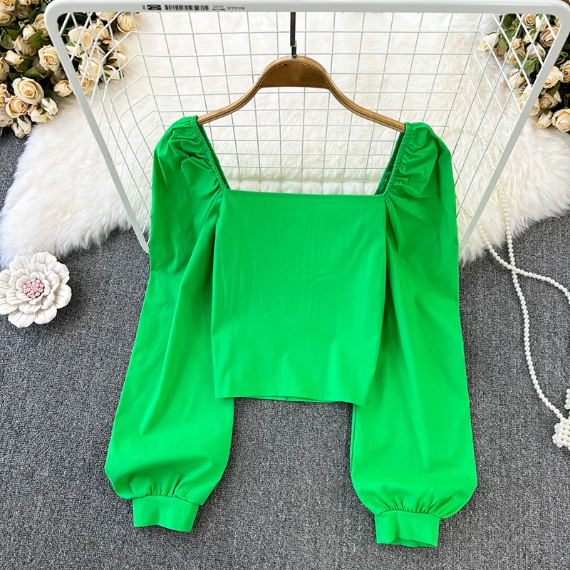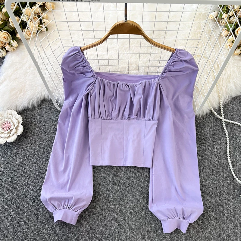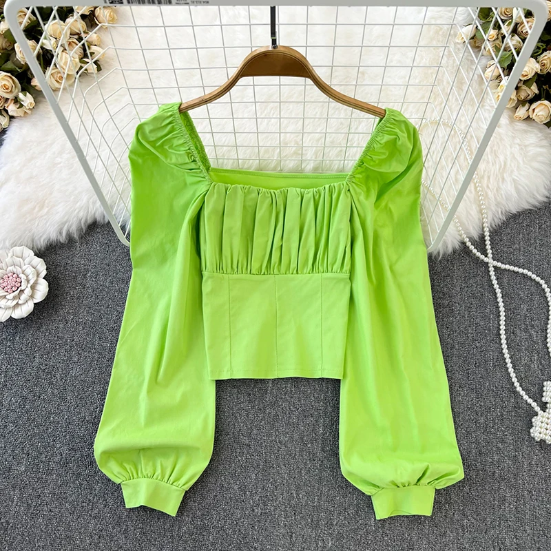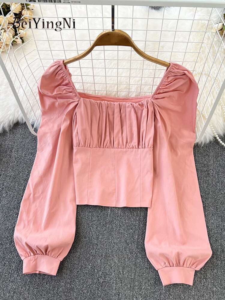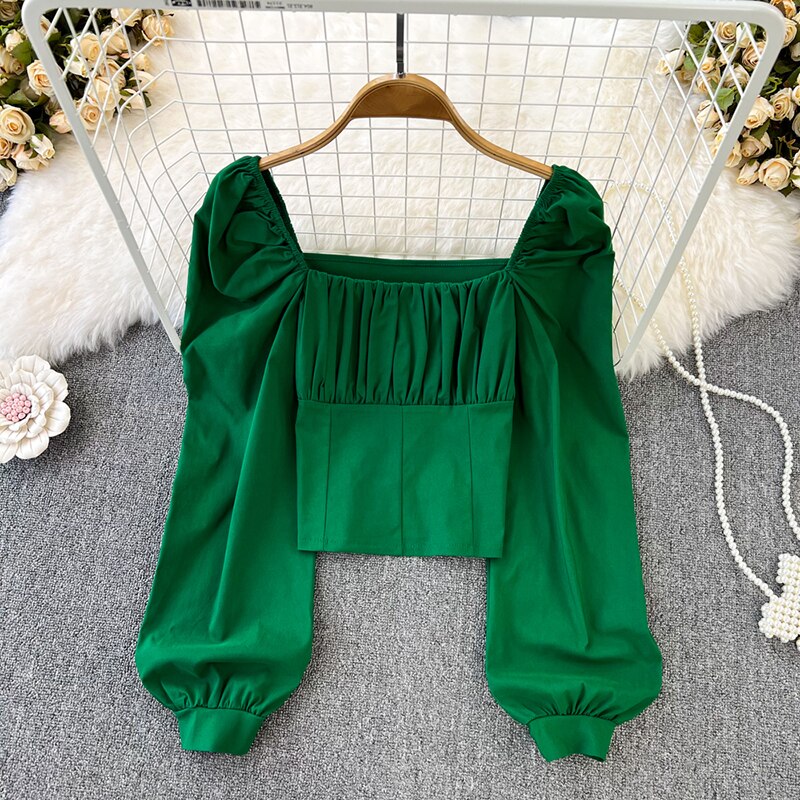 Yipinpay Puff Sleeve Square Collar Shirts Women Elegant Sexy Ruched Korean Female Blouses Streetwear Y2K Harajuku Blusas Tops