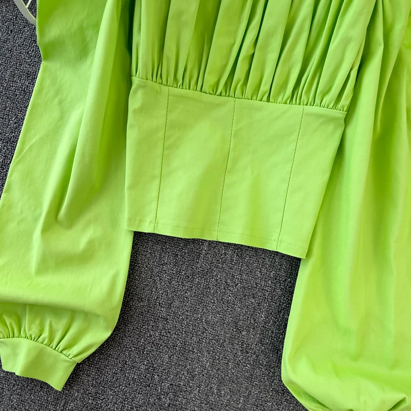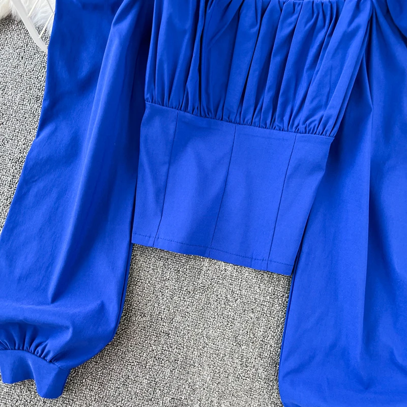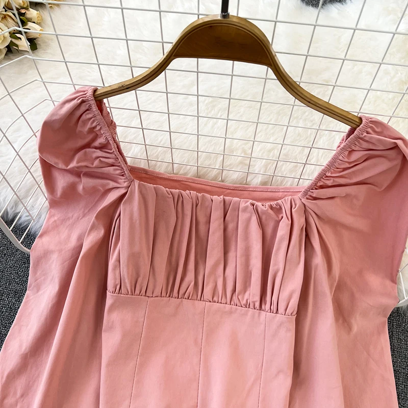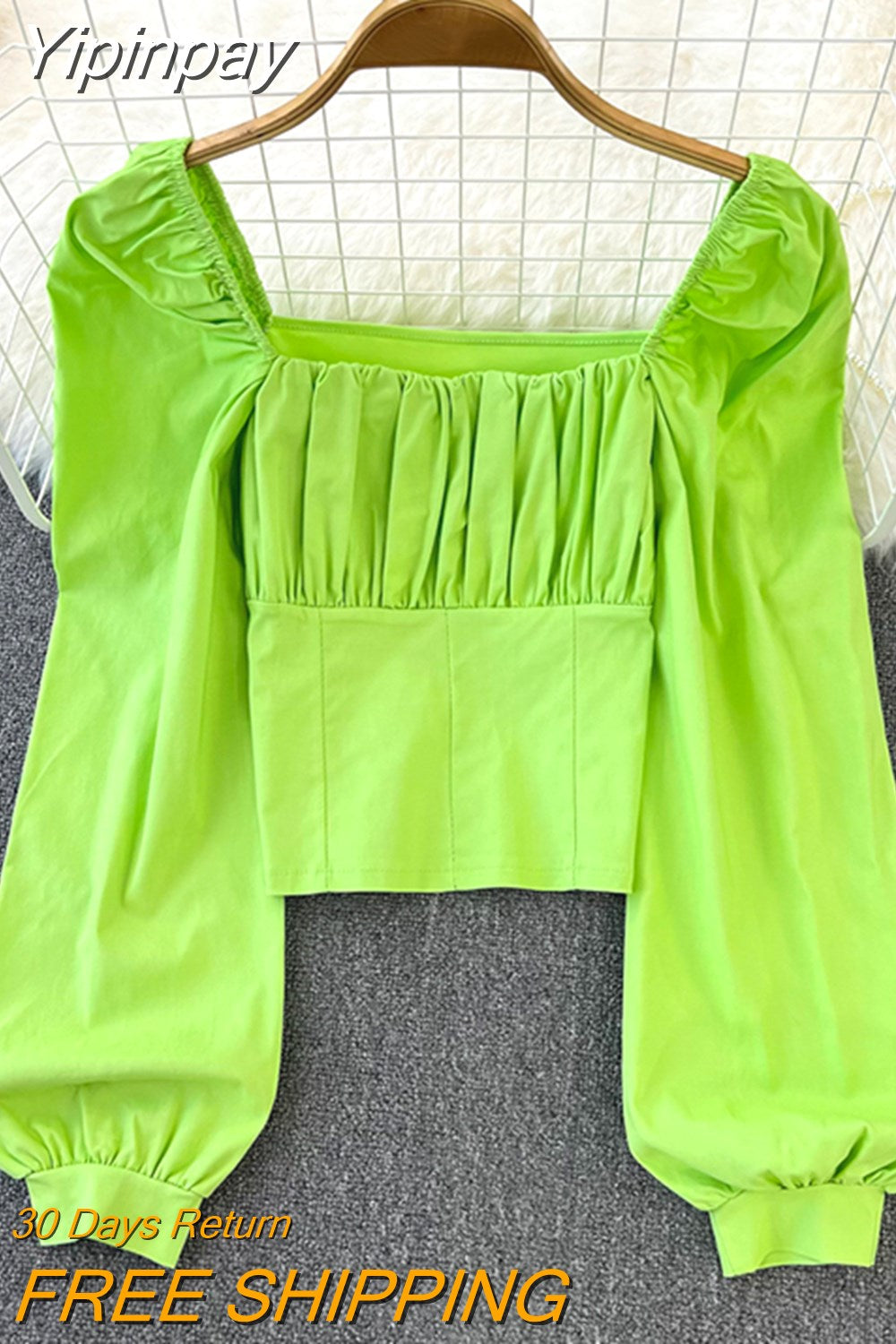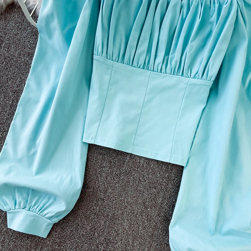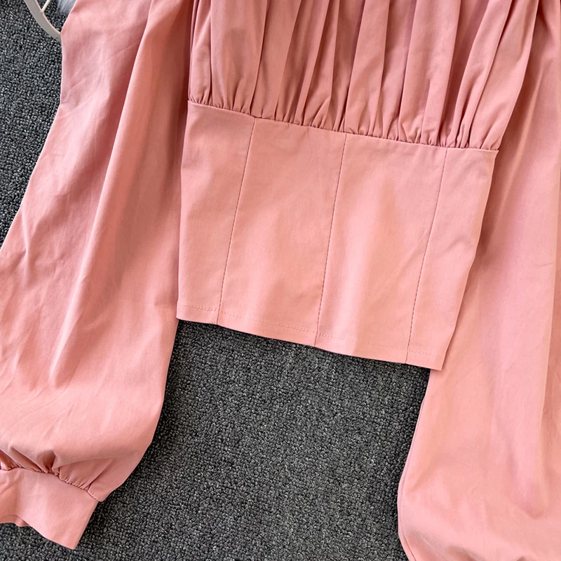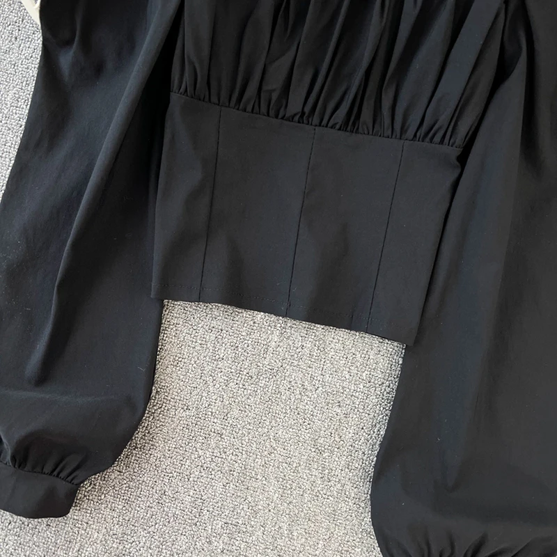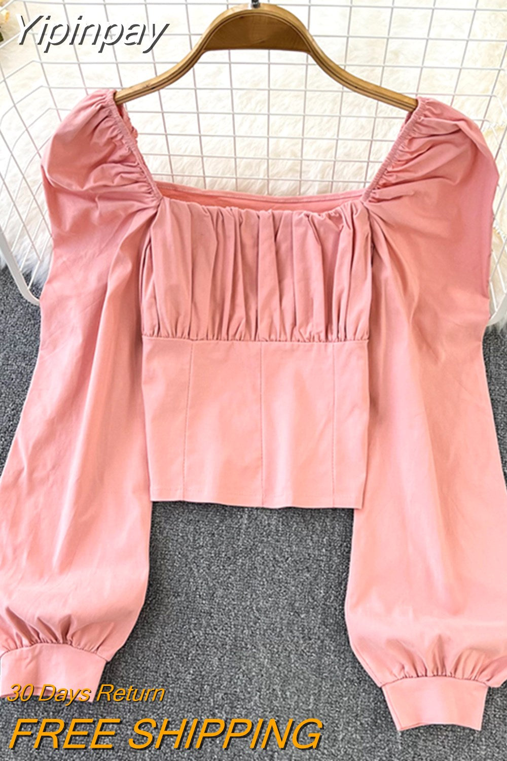 Yipinpay Puff Sleeve Square Collar Shirts Women Elegant Sexy Ruched Korean Female Blouses Streetwear Y2K Harajuku Blusas Tops