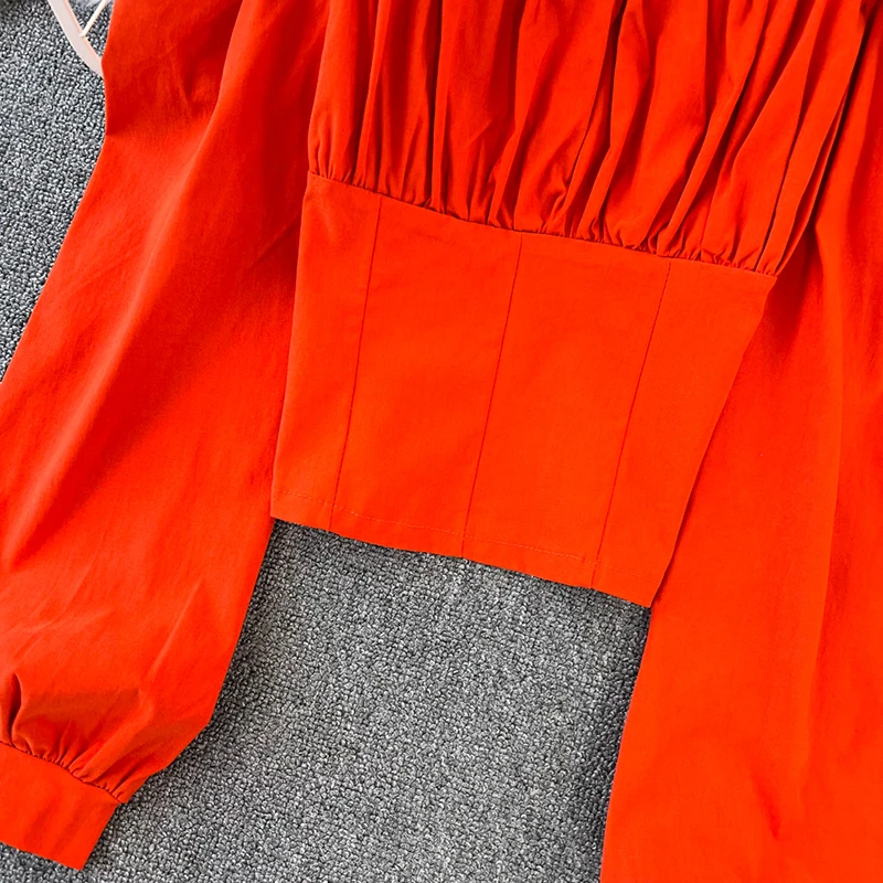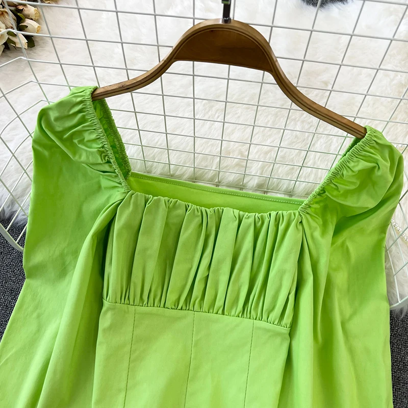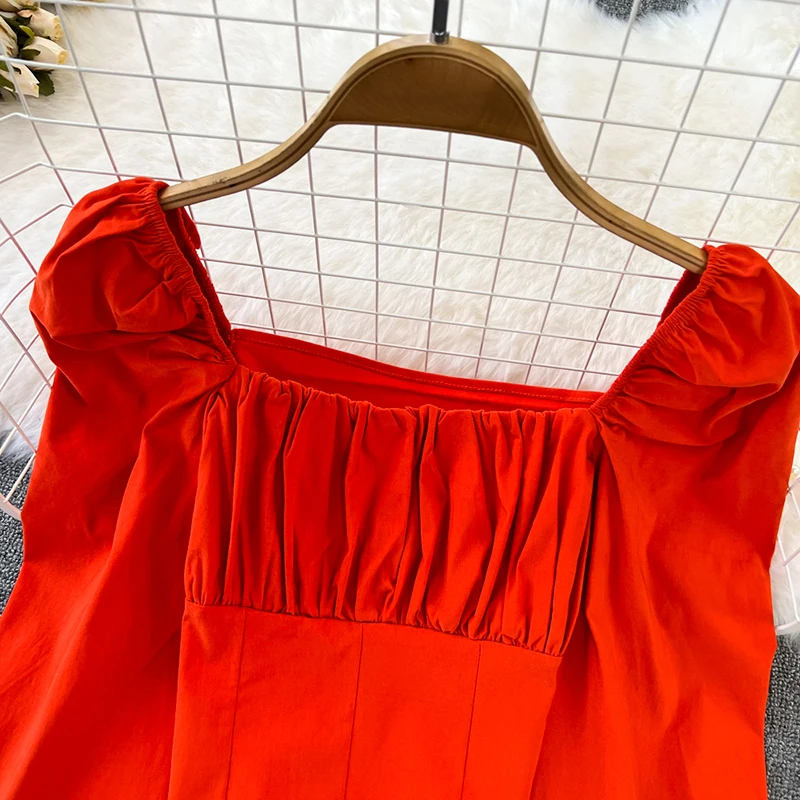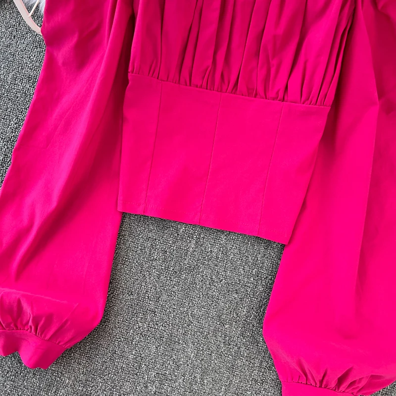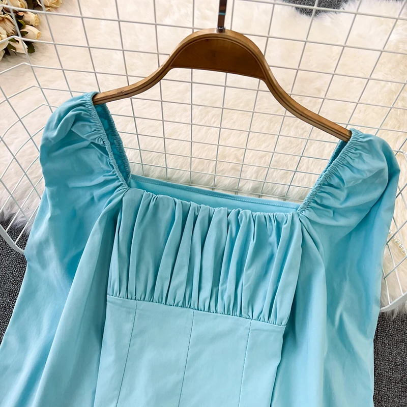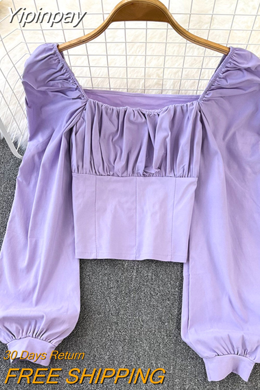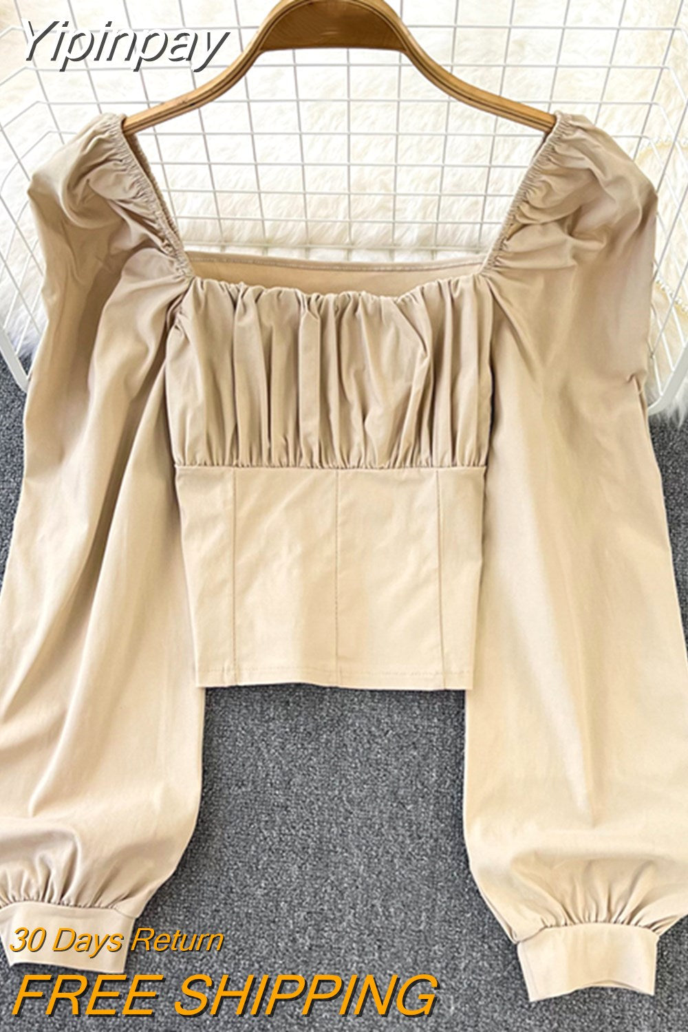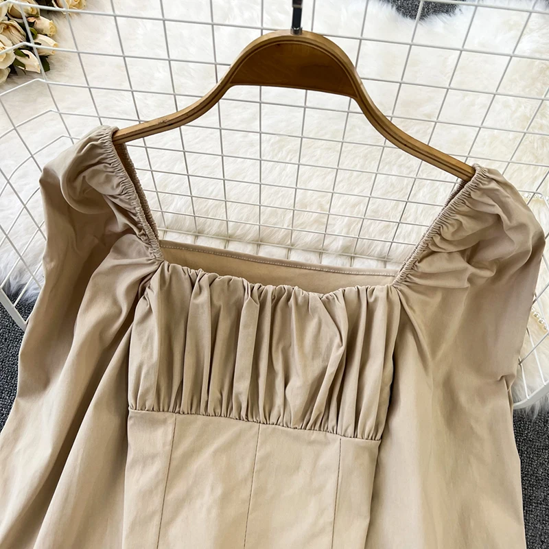 Yipinpay Puff Sleeve Square Collar Shirts Women Elegant Sexy Ruched Korean Female Blouses Streetwear Y2K Harajuku Blusas Tops