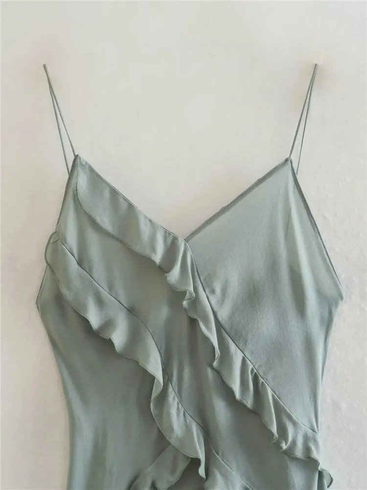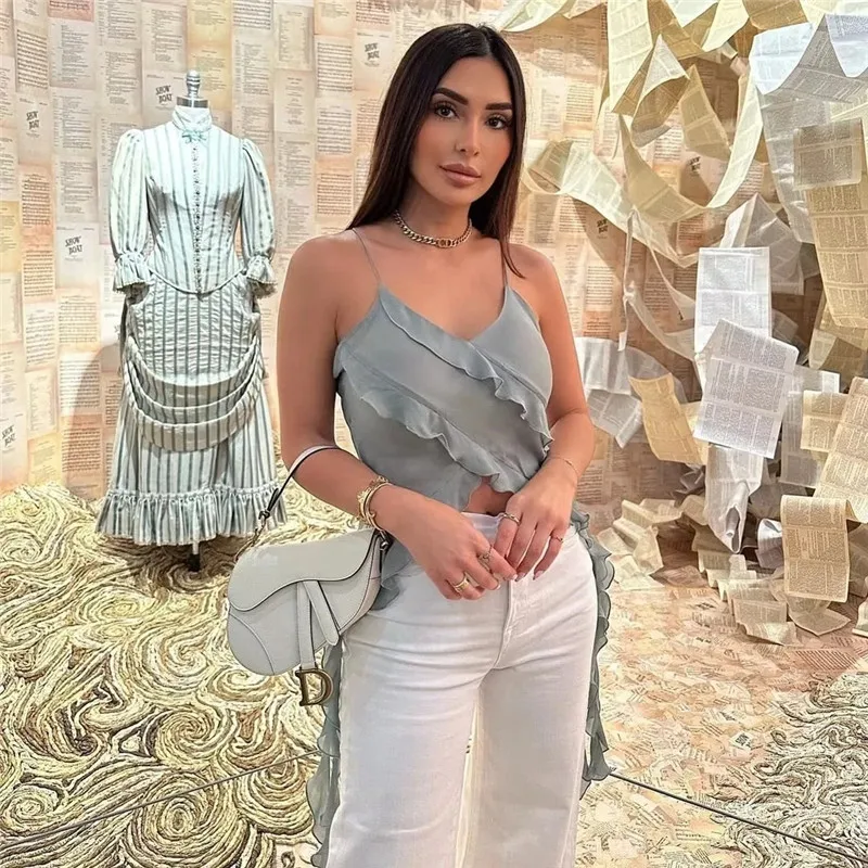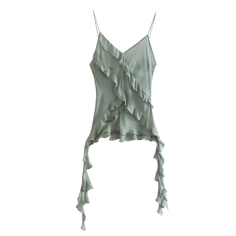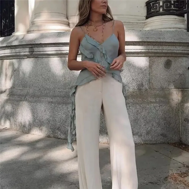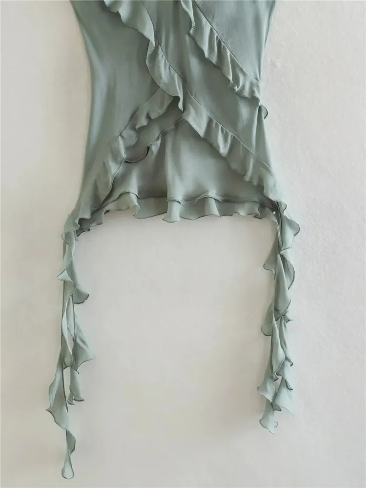 Yipinpay Ruffle Crop Top Women Asymmetric See Through Tops For Women 2023 Sleeveless Backless Top Female Summer Sexy Tops Woman