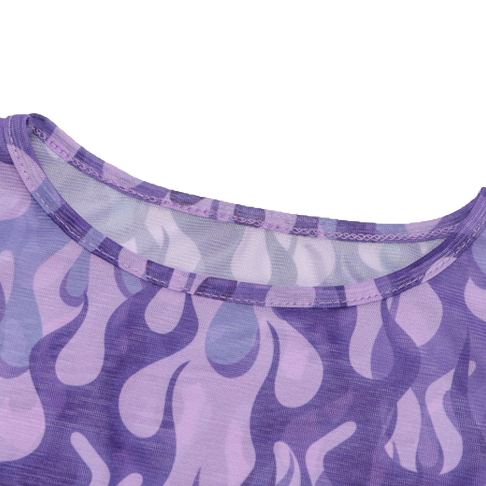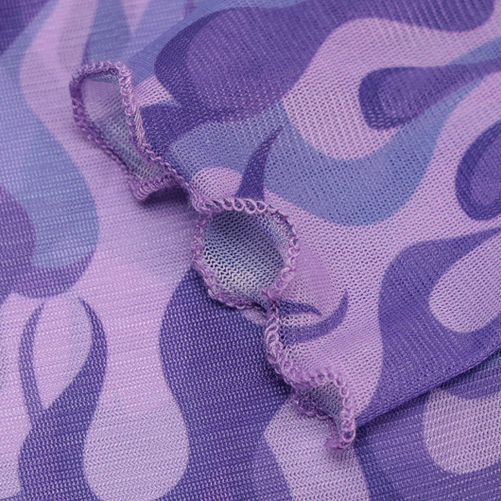 Yipinpay Sale Flame Print Women's Mesh Yarn Slim Top Long Sleeve Round Neck T-Shirt Fashion Casual Close-Fitting Shirt for Streetwear