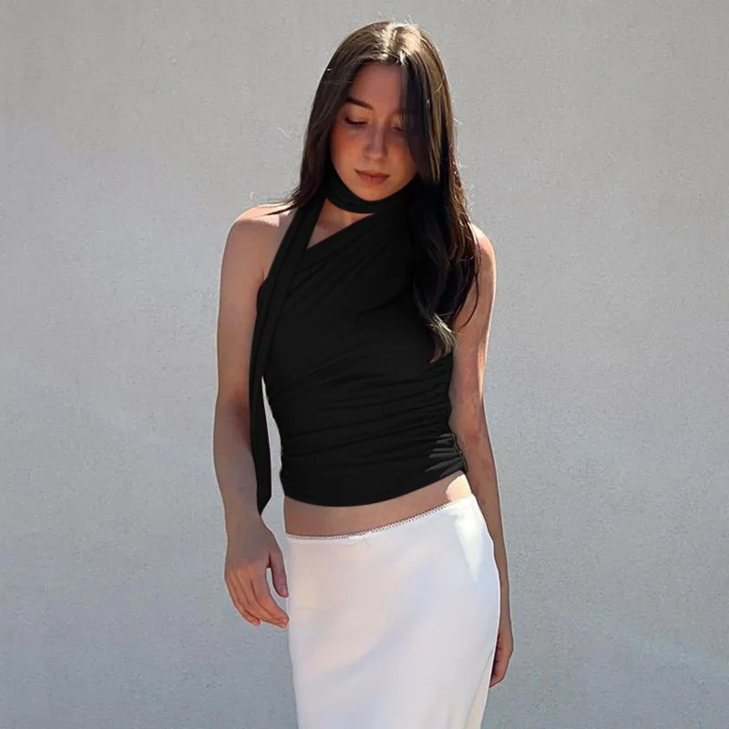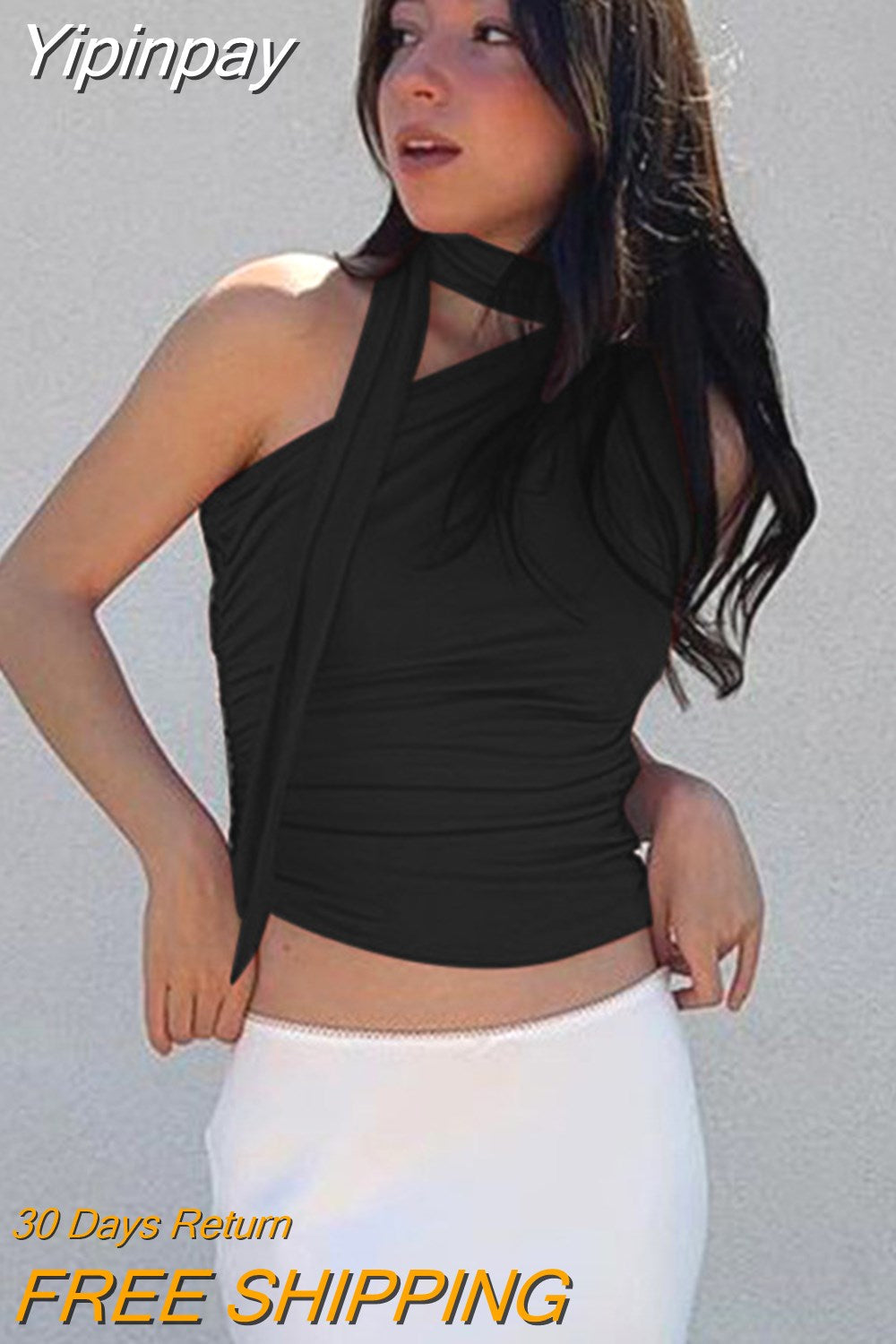 Yipinpay Sexy Off Shoulder Halter Tank Tops Women Vintage Sleeveless Crop Top Y2K Clothes Club Female Casual Summer 2023