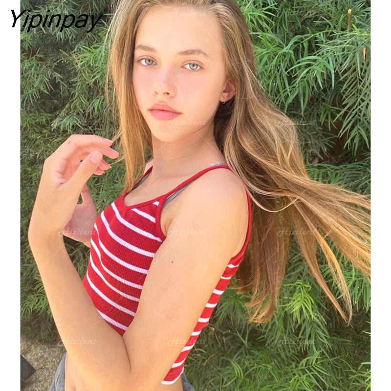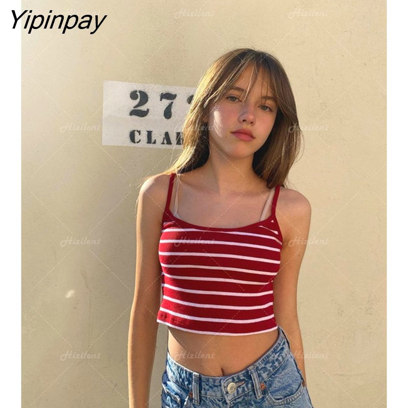 Yipinpay Sexy Vintage Strappy Y2K Halter Crop Top Women Stripe Summer 90s Backless Tops Tees Ladies Fashion Fitness Camisole Party
