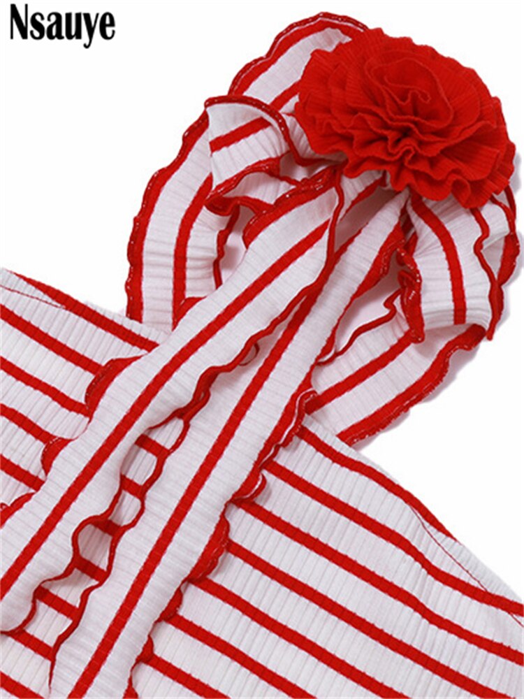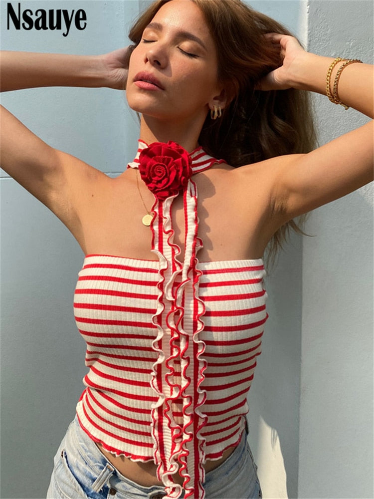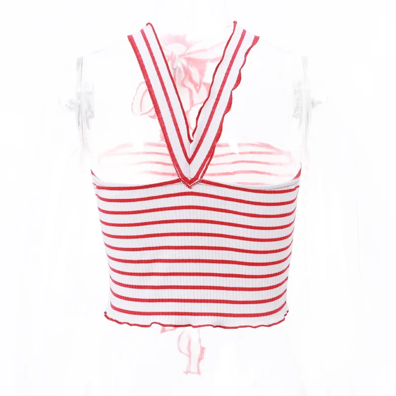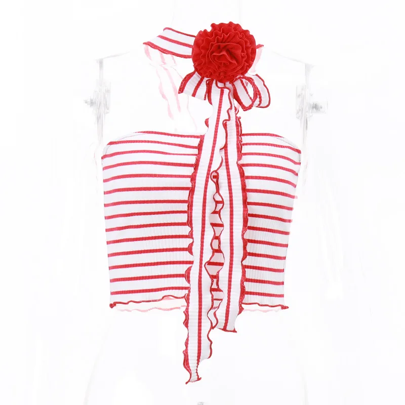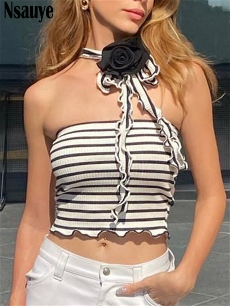 yipinpay Sexy Women Halter Off Shoulder Knitted Striped Tube Y2K Crop Tops Skinny Mini Summer Casual Fashion 2023 Tank Tops 90s