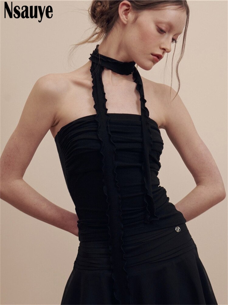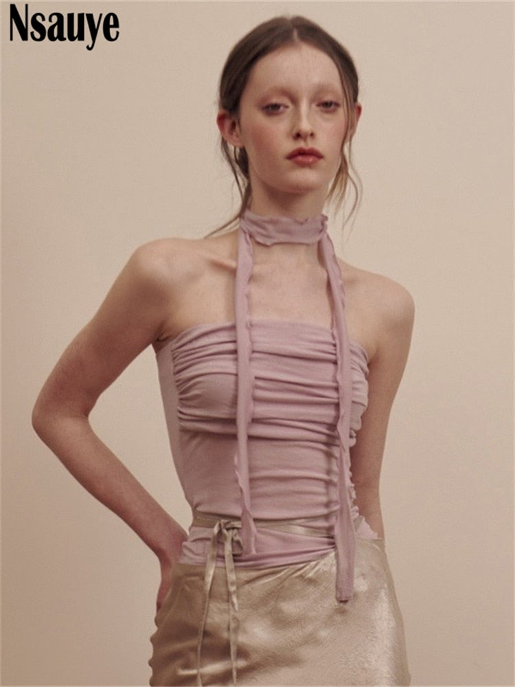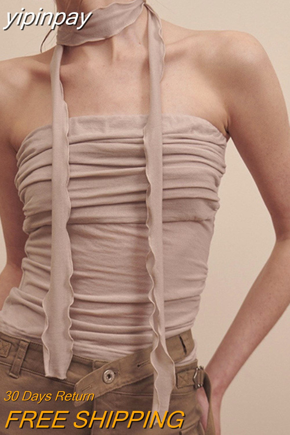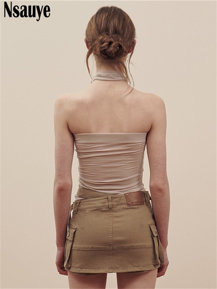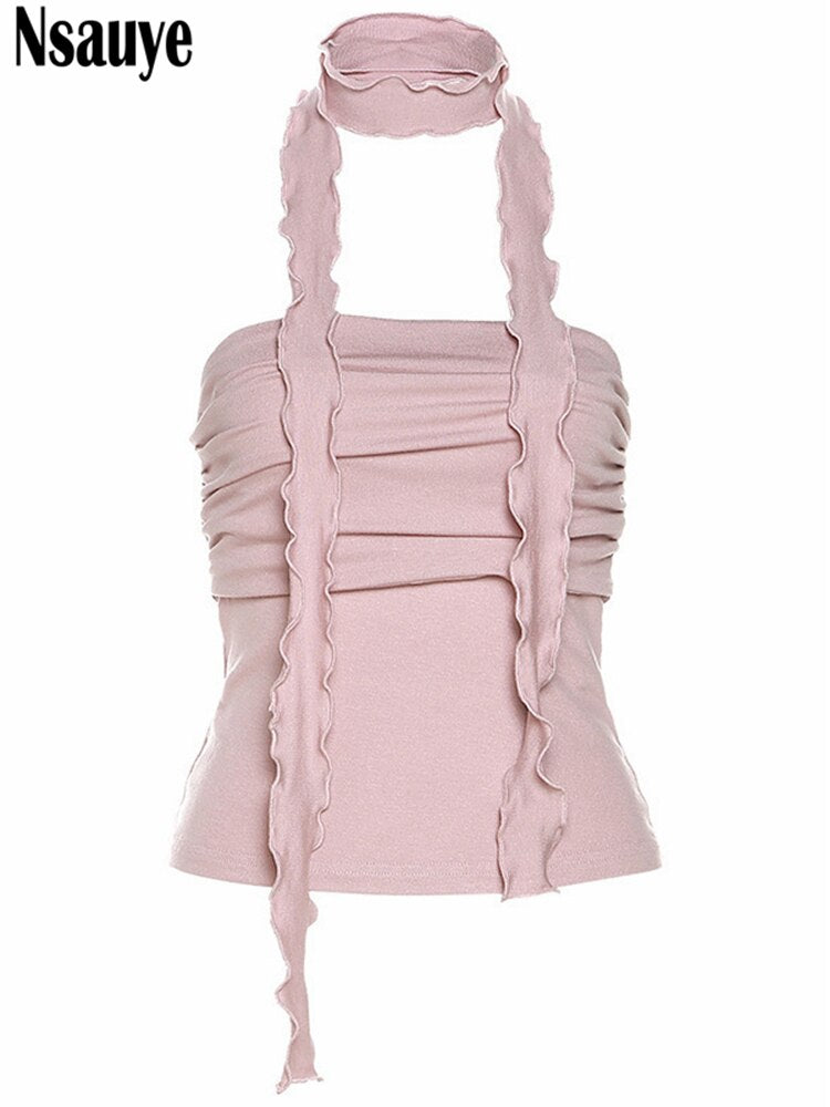 yipinpay Sleeveless Skinny Sexy Club Backless Women Summer Ruched Y2K Crop Tops 2023 Streetwear Fashion Mini Basic Casual Tank Top