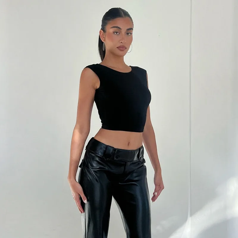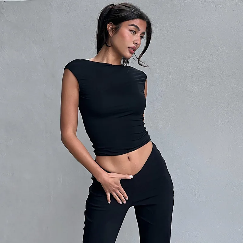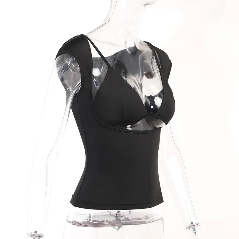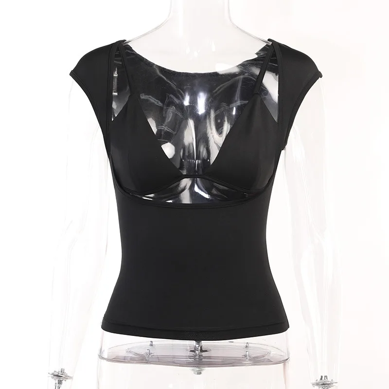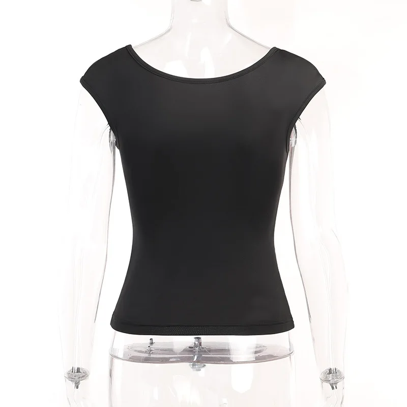yipinpay Sleeveless Women Basic Y2K Sexy Club Mini Slim Crop Tops T Shirt Set Streetwear 2023 Casual Hollow Out Black Tank Tops