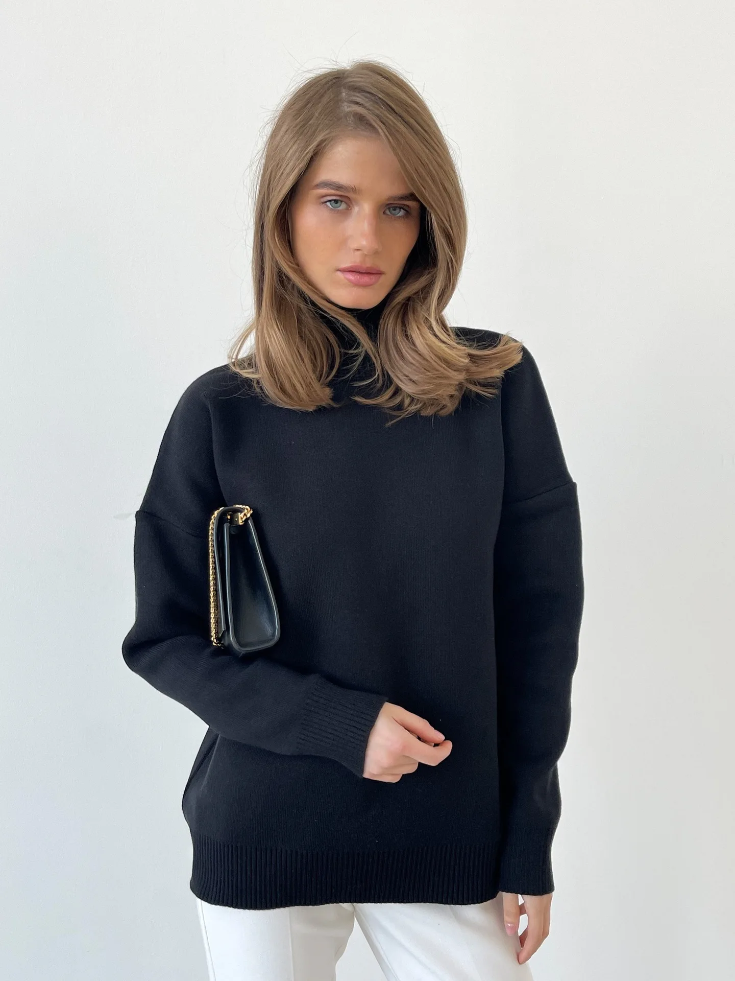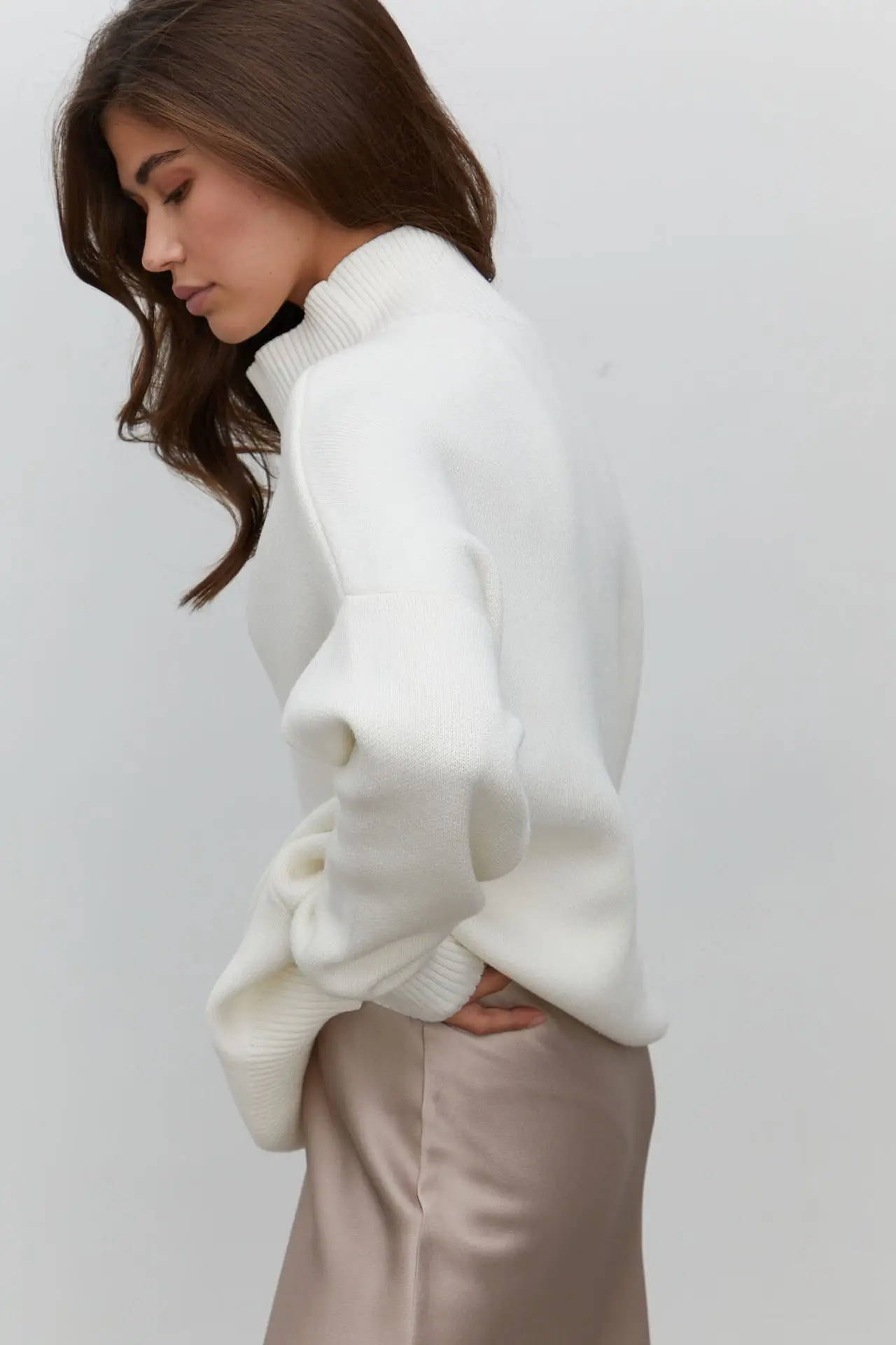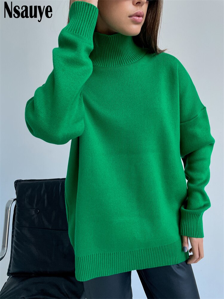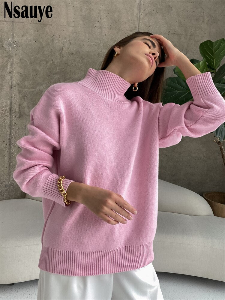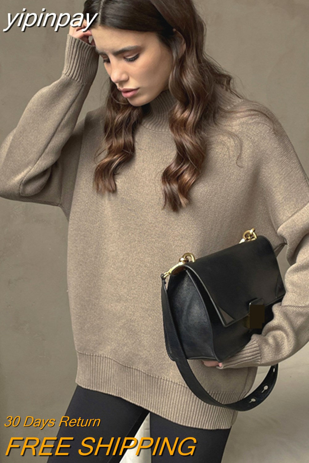 yipinpay Solid Elegant Basic Women Long Sleeve Loose Knit Sweater Outwear Winter 2023 Pullover Casual Fashion Jumper Sweater Tops
