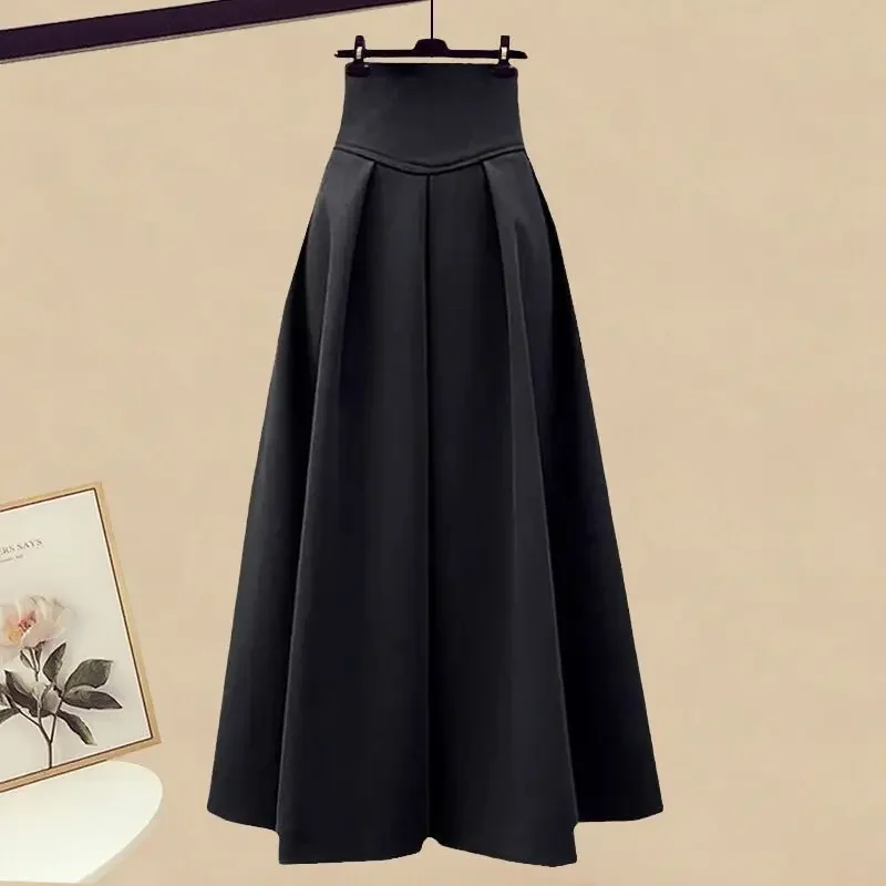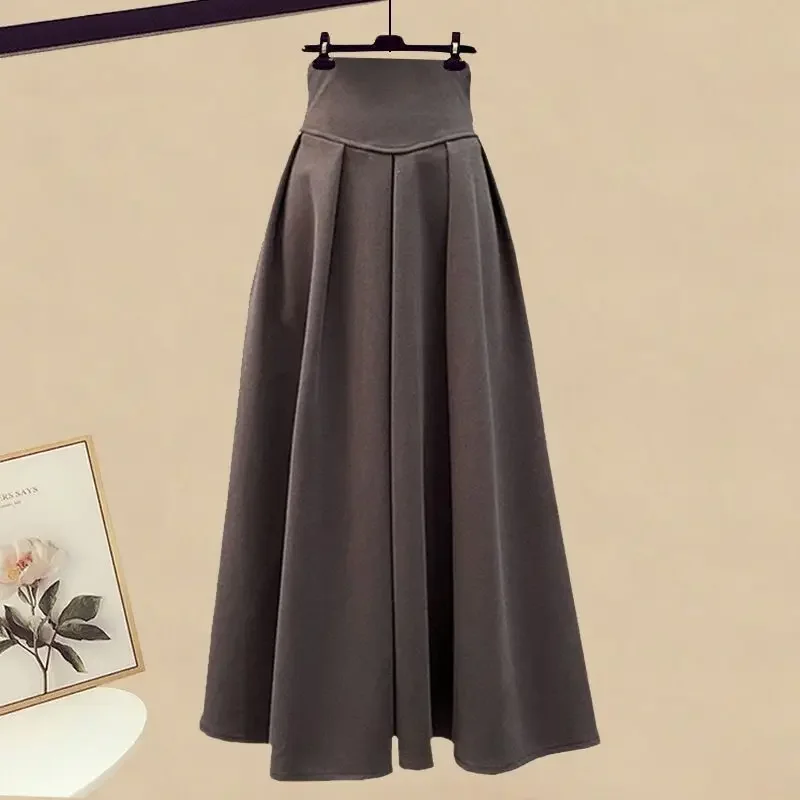 Yipinpay Spring New in Matching Set Korean Elegant Fake Two Piece Long Sleeve Knitted Top High Waist Skirt Suit Female Clothing