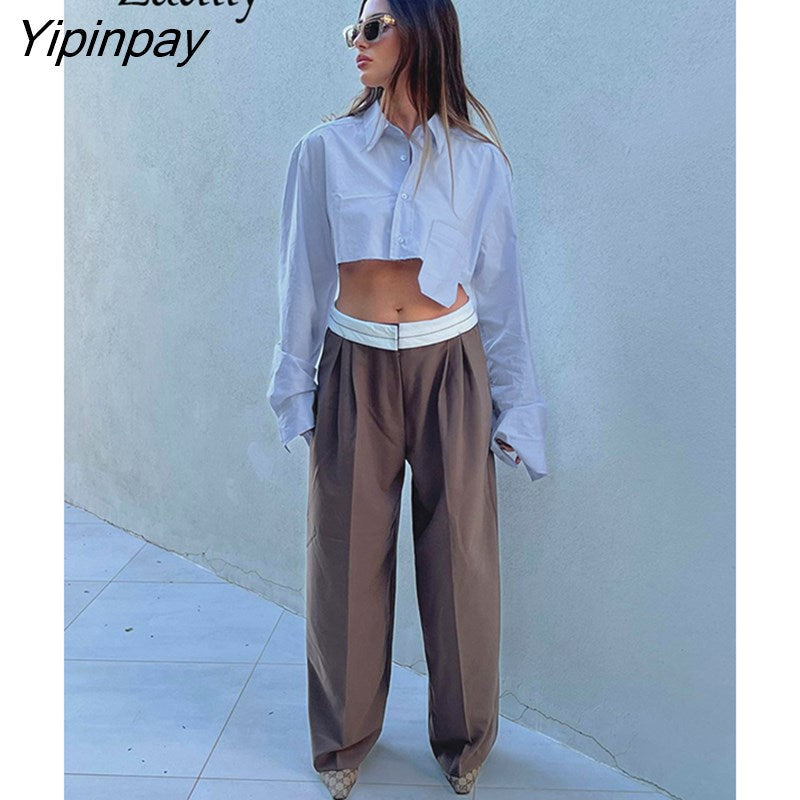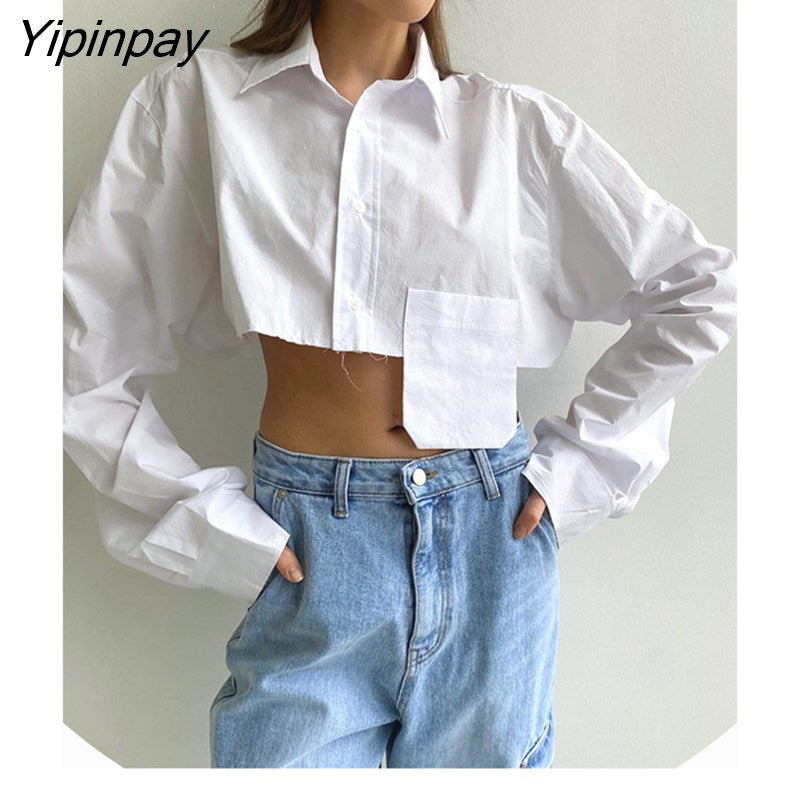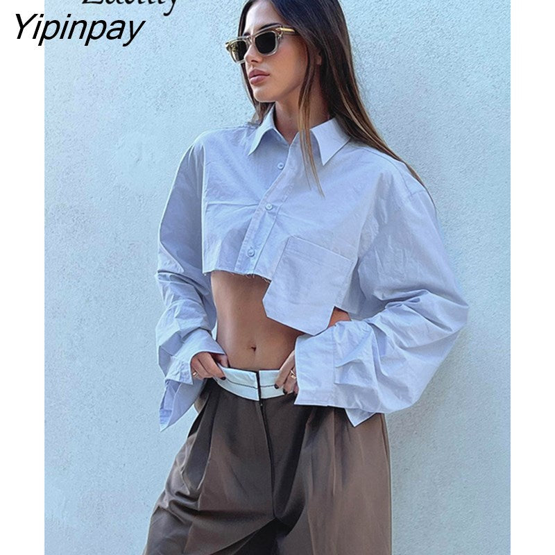 Yipinpay Spring New In Streetwear Asymmetrical Women Shirt Y2K Long Sleeve Pocket Button Up Woman Crop Tops 2023 Blouse Clothing