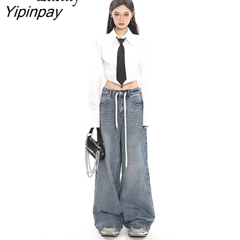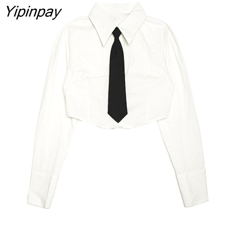 Yipinpay Spring Streetwear Long Sleeve Button Tie White Shirt Women Korea Style Chic Ladies Crop Tops Blouse 2023 New In Clothing