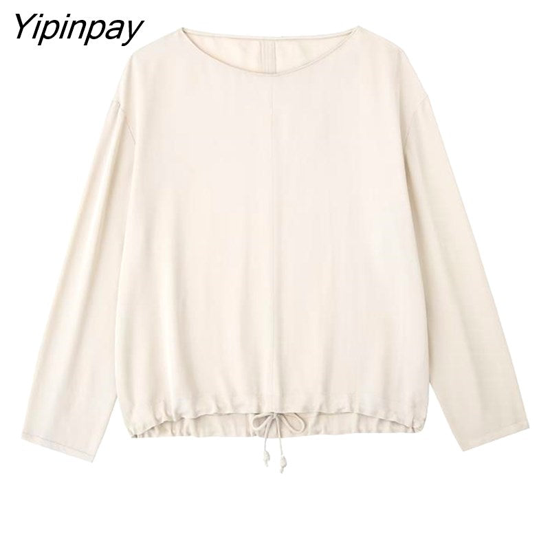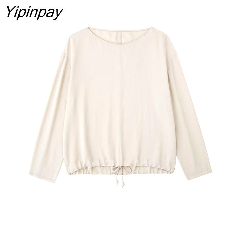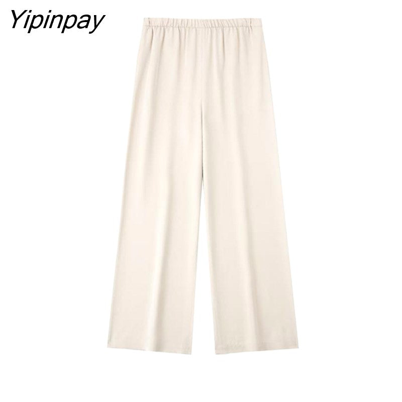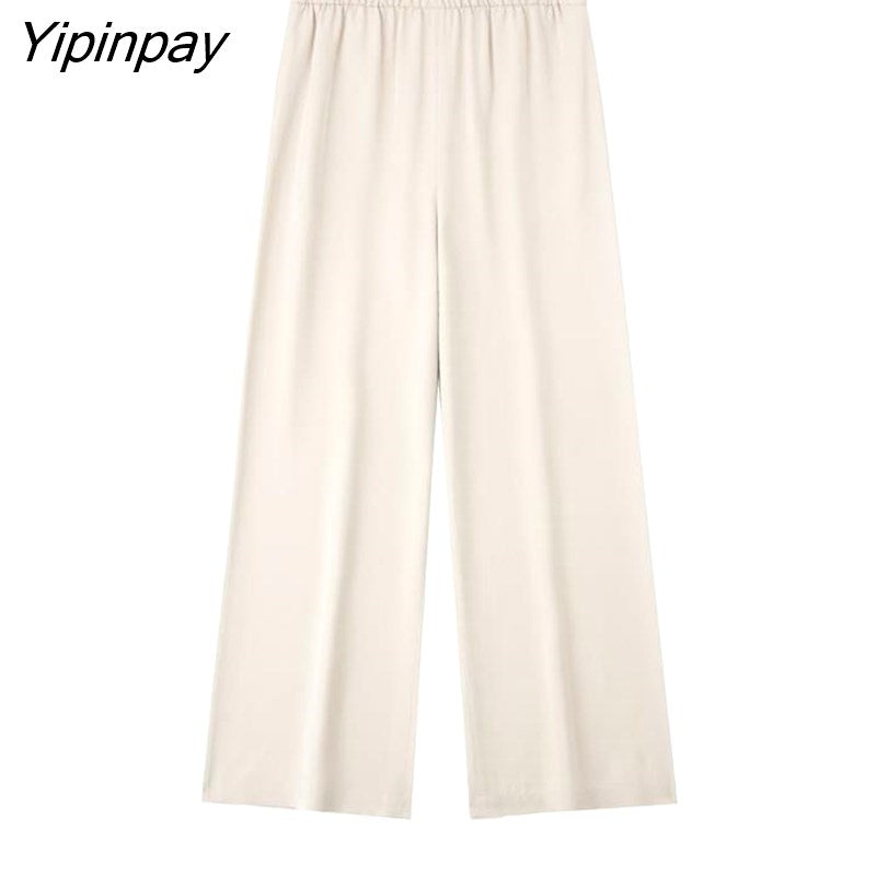 Yipinpay Spring Women Solid Soft Loose Pants Sets 2023 Casual O-Neck Oversized Short Shirt Tops Elastic Waist Wide Leg Pants