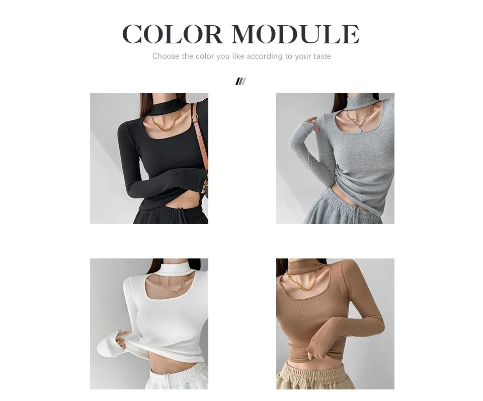 Yipinpay Street Hollow Out Halter Crop Tops Women Fashion Design Slim Long Sleeve T-shirts Grunge Clothes 2023 New