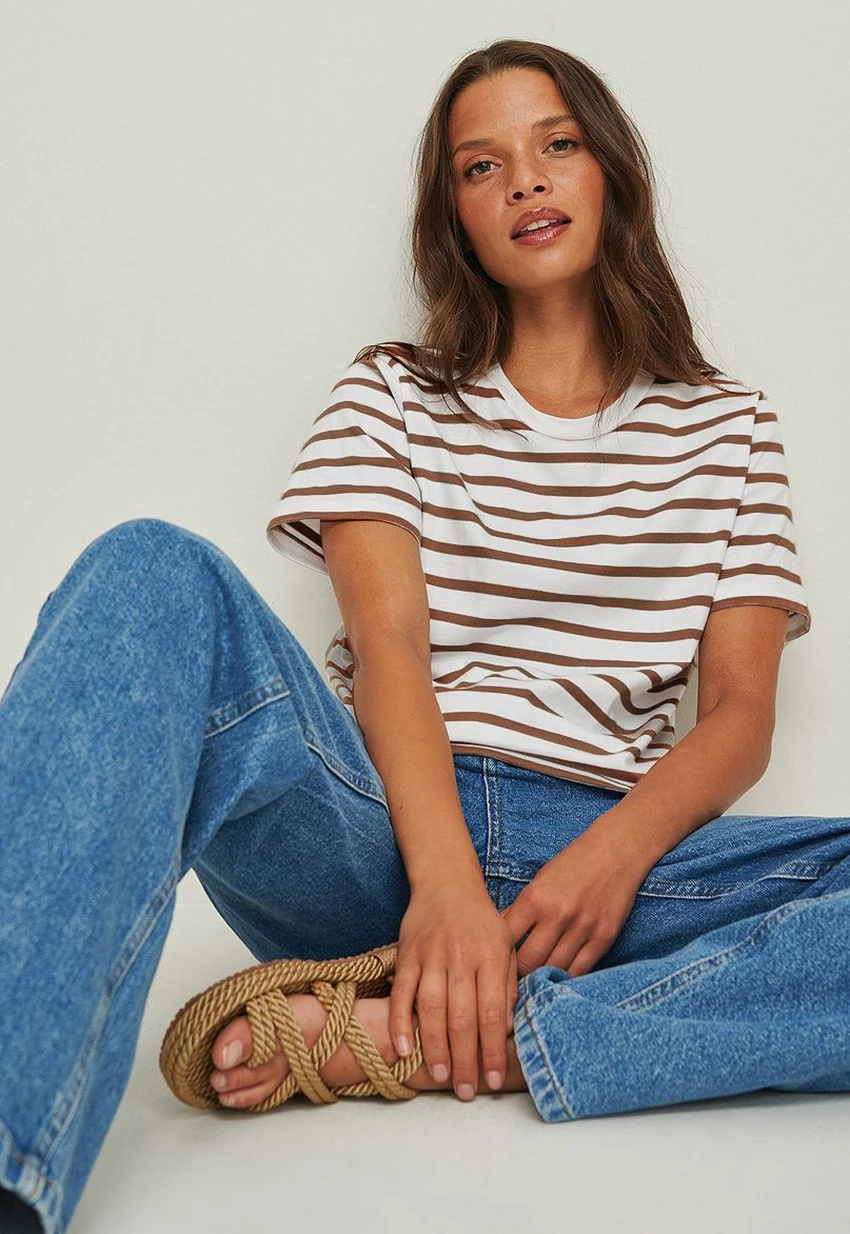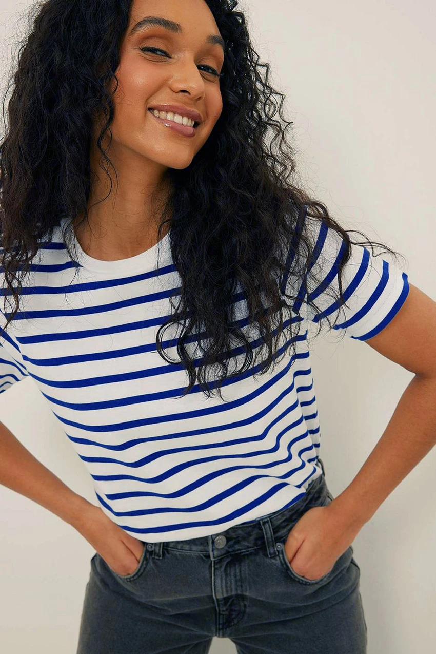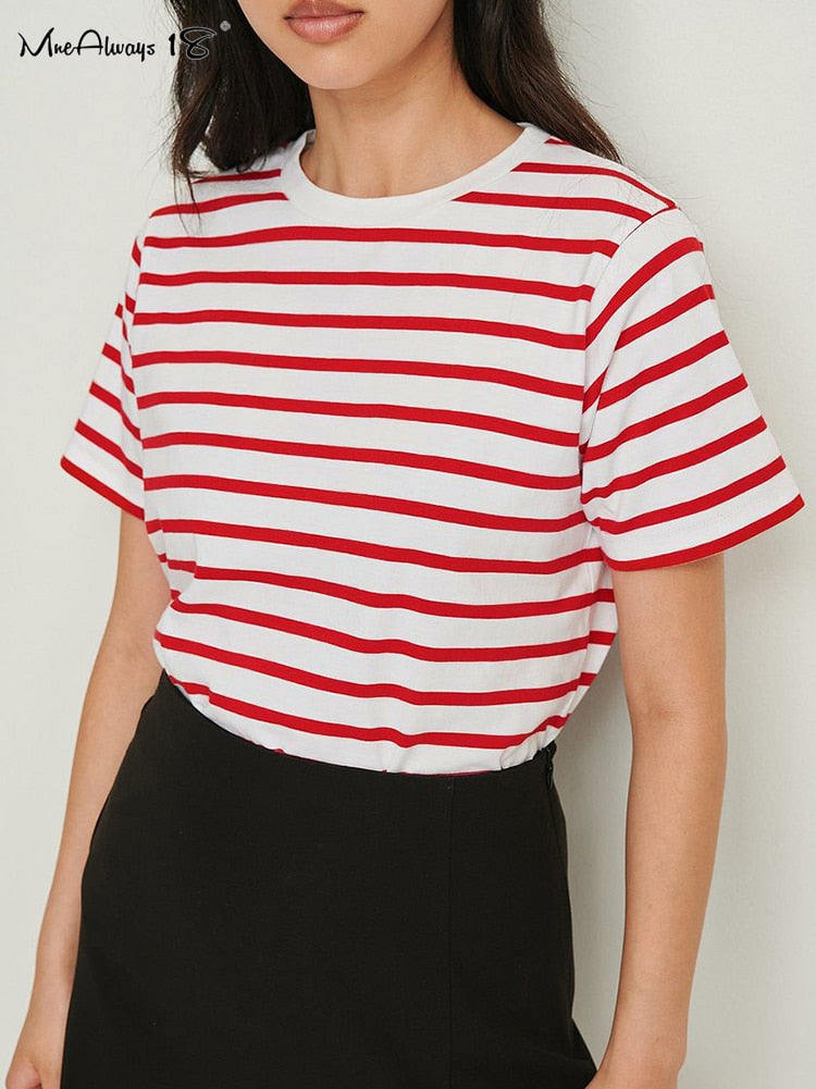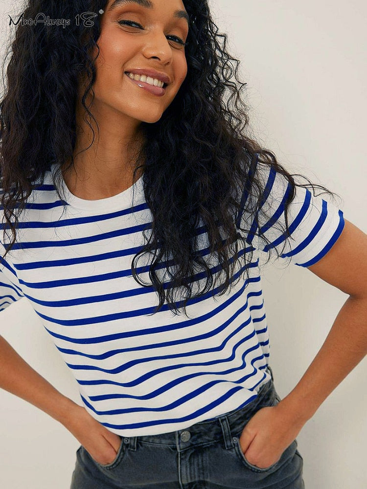 Yipinpay Street Women Stripe Basic Tee Shirts O-Neck Casual Print Loose Cotton Tops Short Sleeve Summer 2023 Fashion T-Shirt