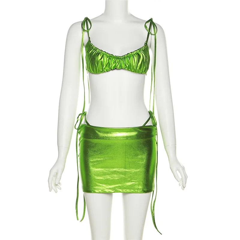 yipinpay Summer 2023 Women Skirt Suit Outfits Casual Beach Y2K Crop Tops And Mini Sexy Club Party Skirt Fashion Two Piece Ser