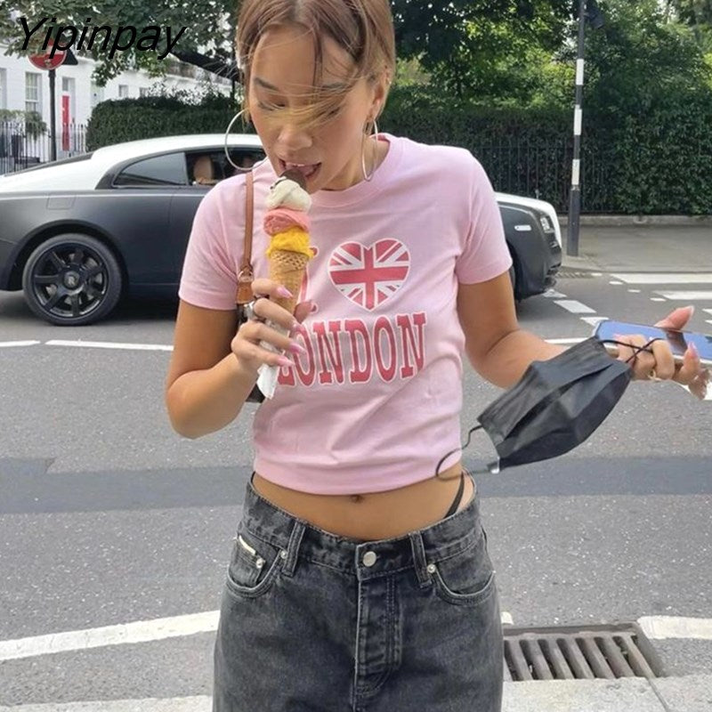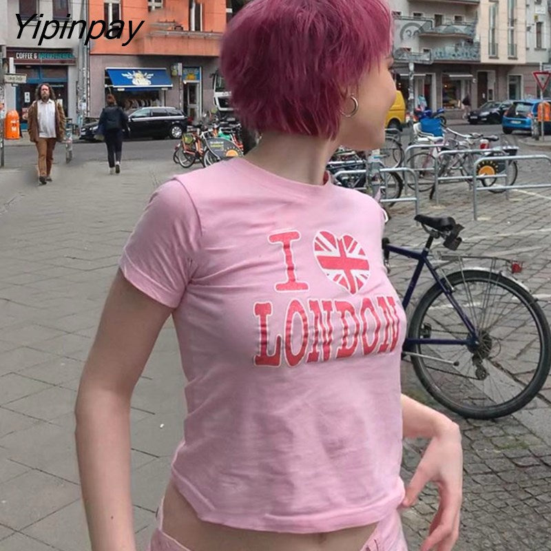 Yipinpay Summer Baby Tee Streetwear Gothic Harajuku Star letter Graphic emo T-shirt Vintage Crop Top Women 90s Y2K clothes