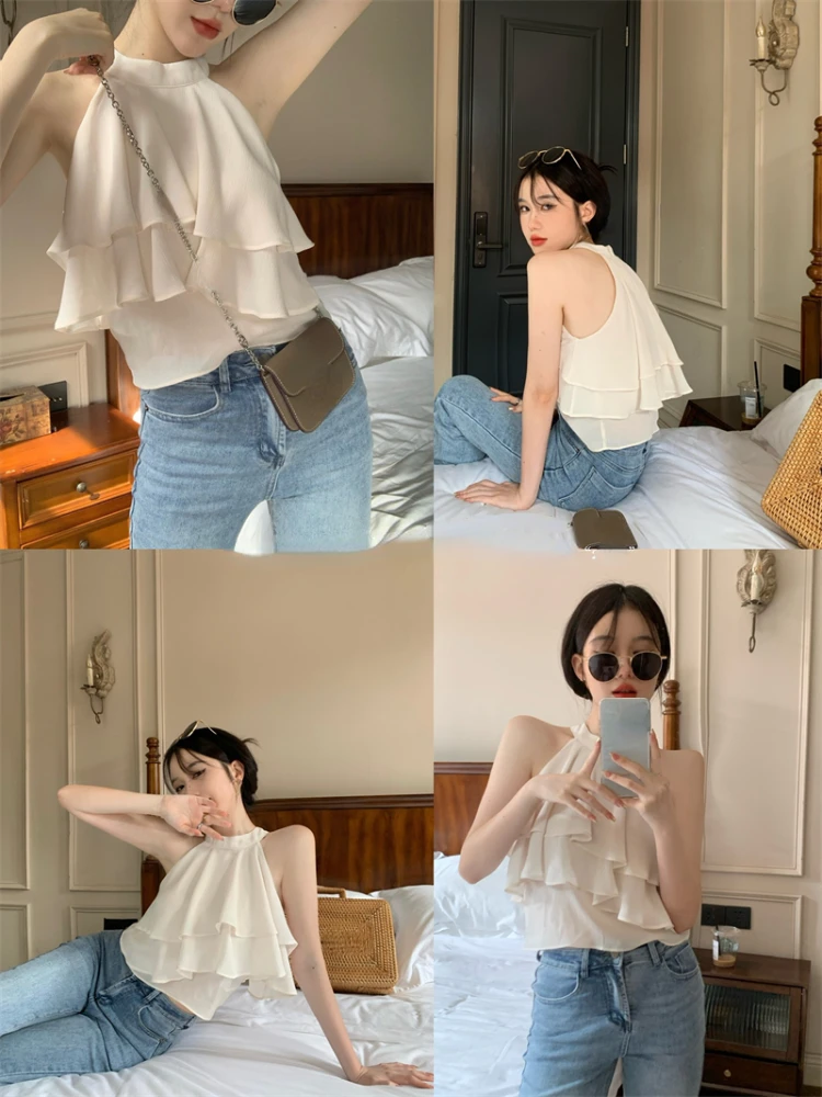 Yipinpay Summer Pure Color Korean Style Fashion Blouse Office Lady New Basic Sexy Sleeveless Tops Woman Beach Casual Slim Clothing