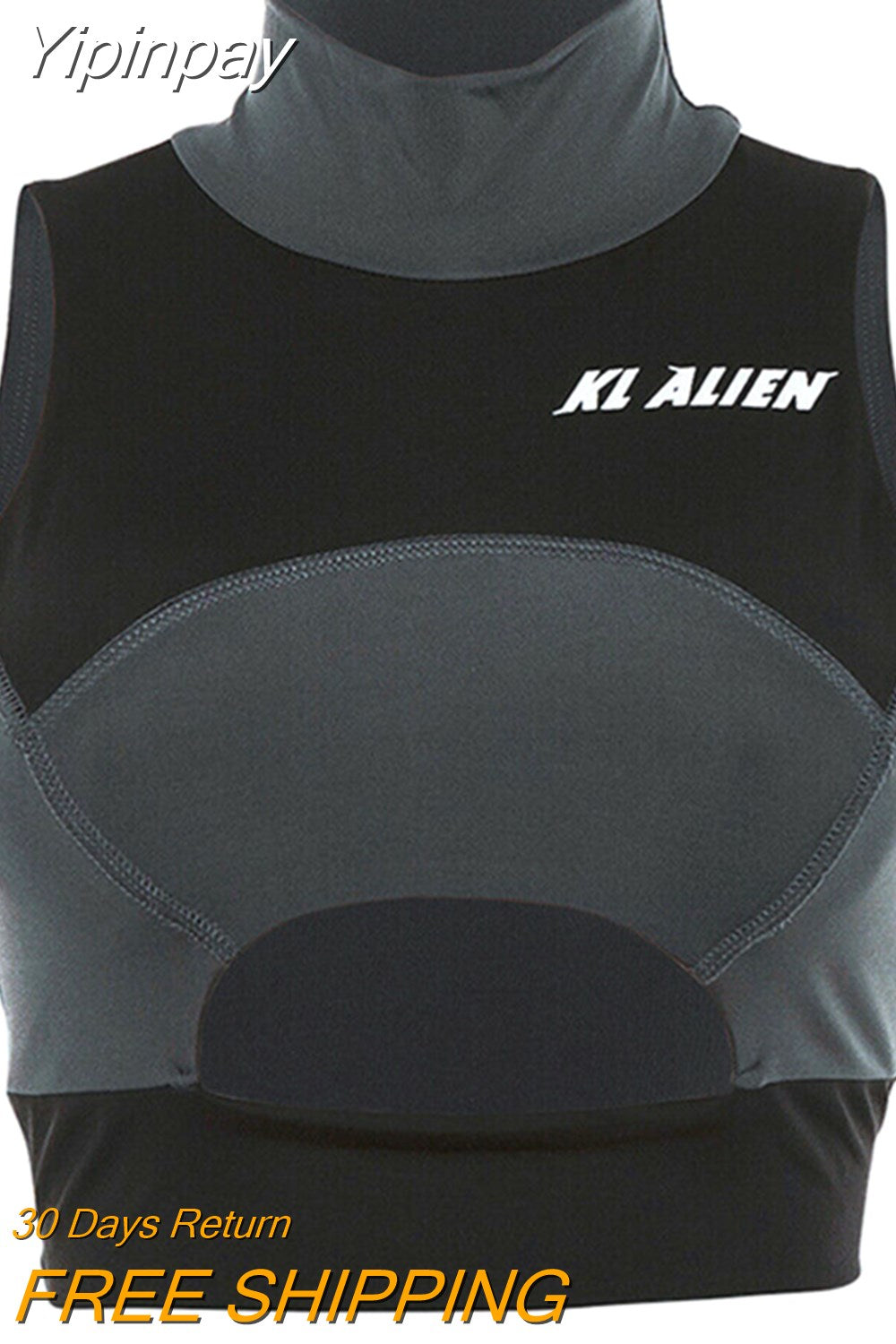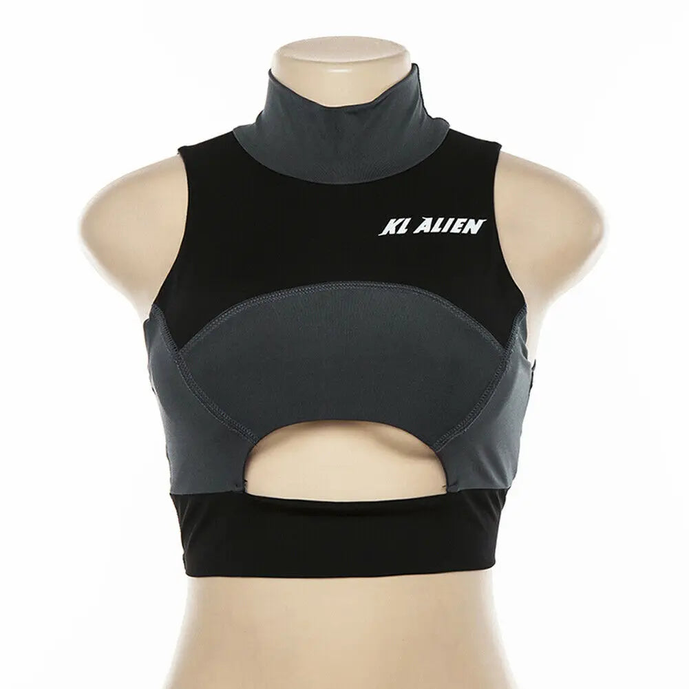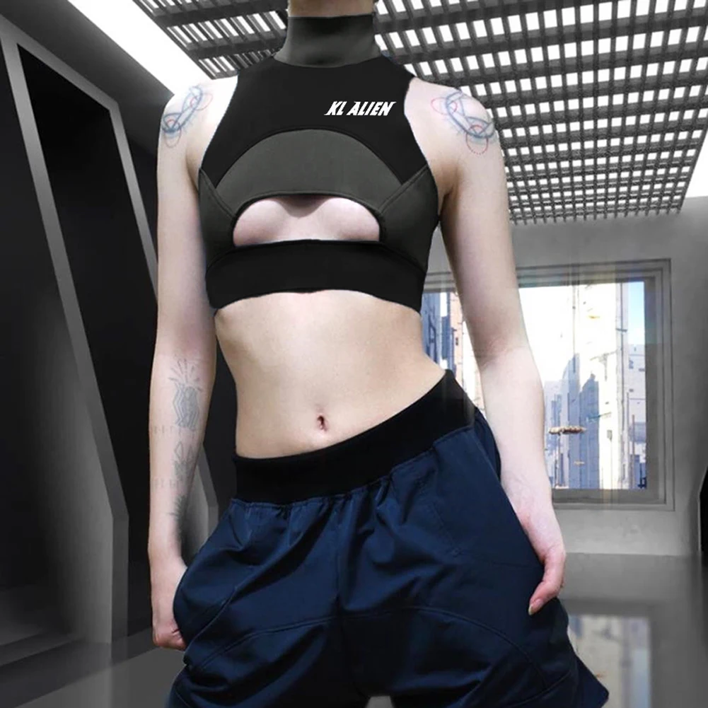 Yipinpay Summer Women Cool Hip Hop Jogger Sexy Club High neck Stretch Bandeau Front Hollow Hole Crop Top Sport Cami Vest Top