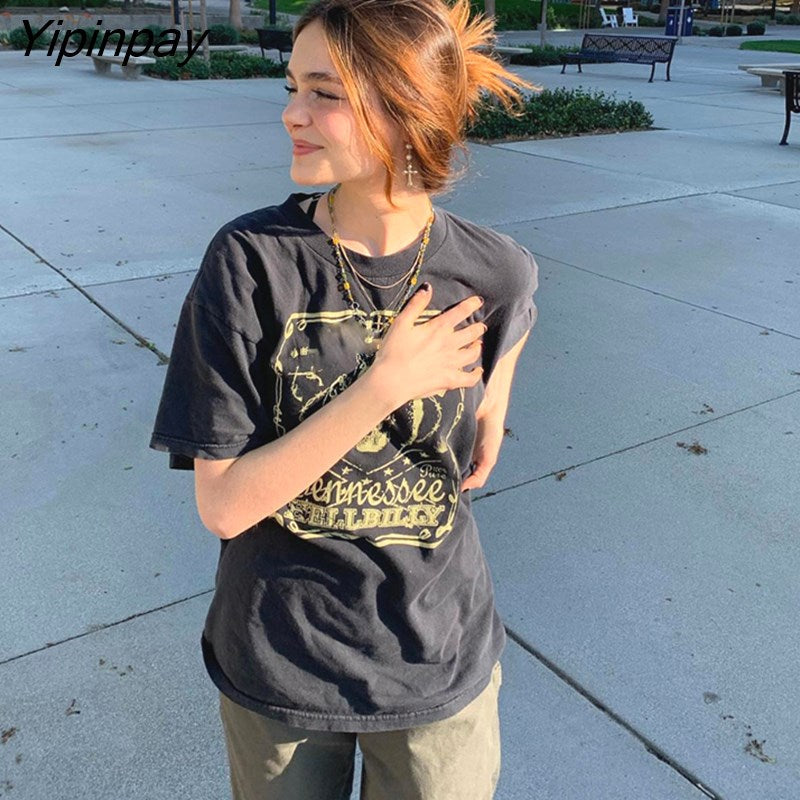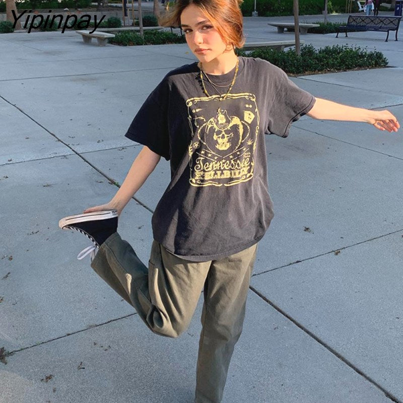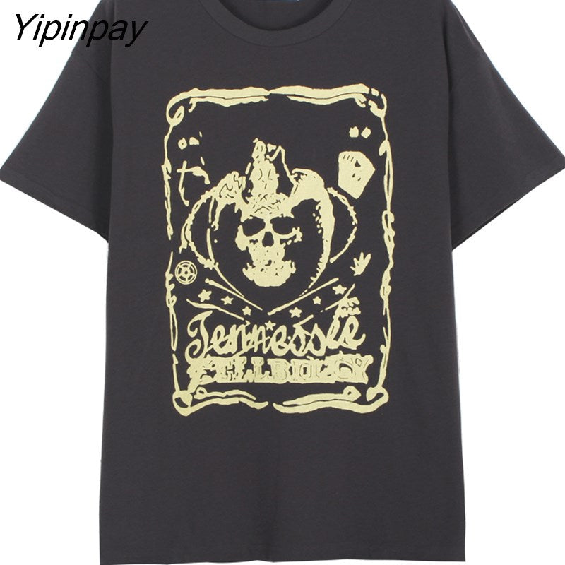 Yipinpay T Shirt Women 2023 Summer Harajuku Letter Skull Print Short Sleeve Graphic Tee Shirt Femme Size Tops Tshirt