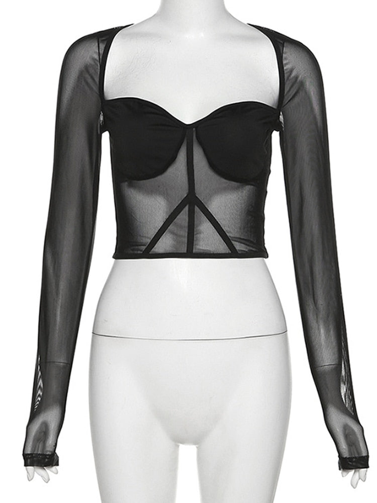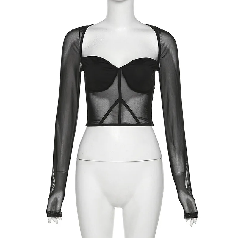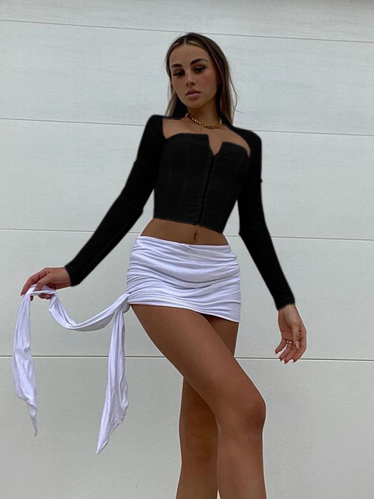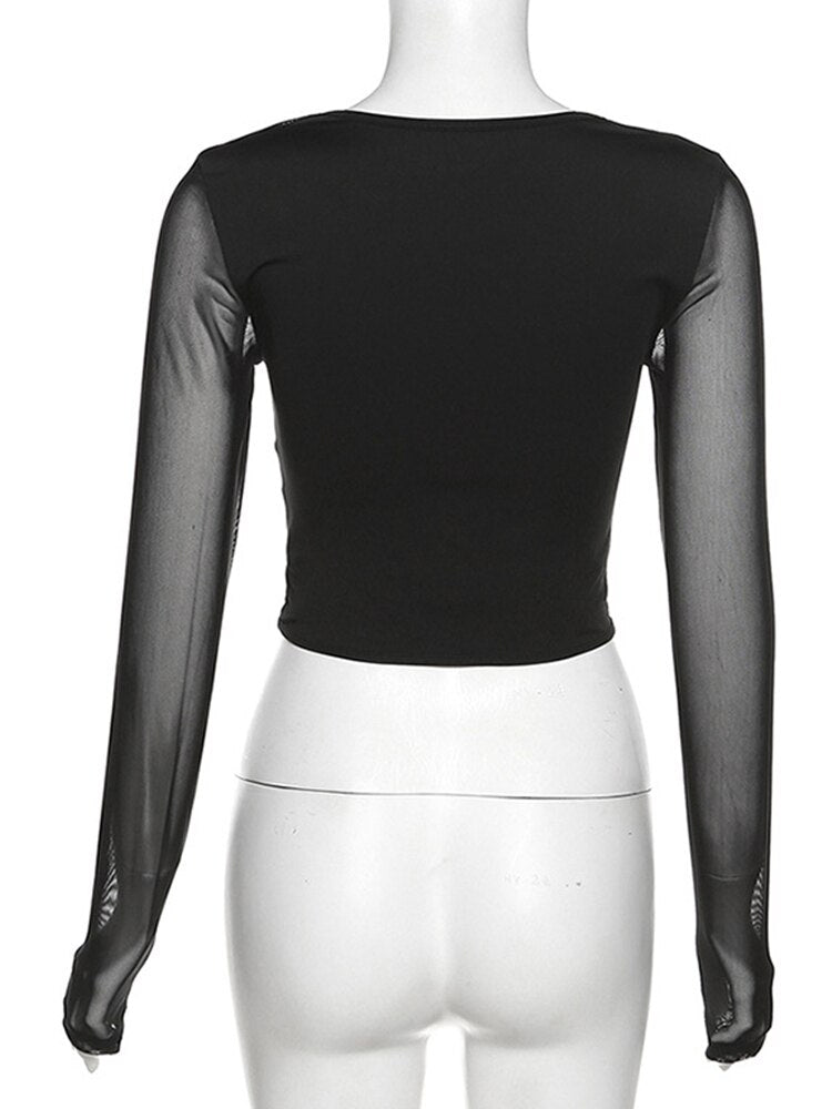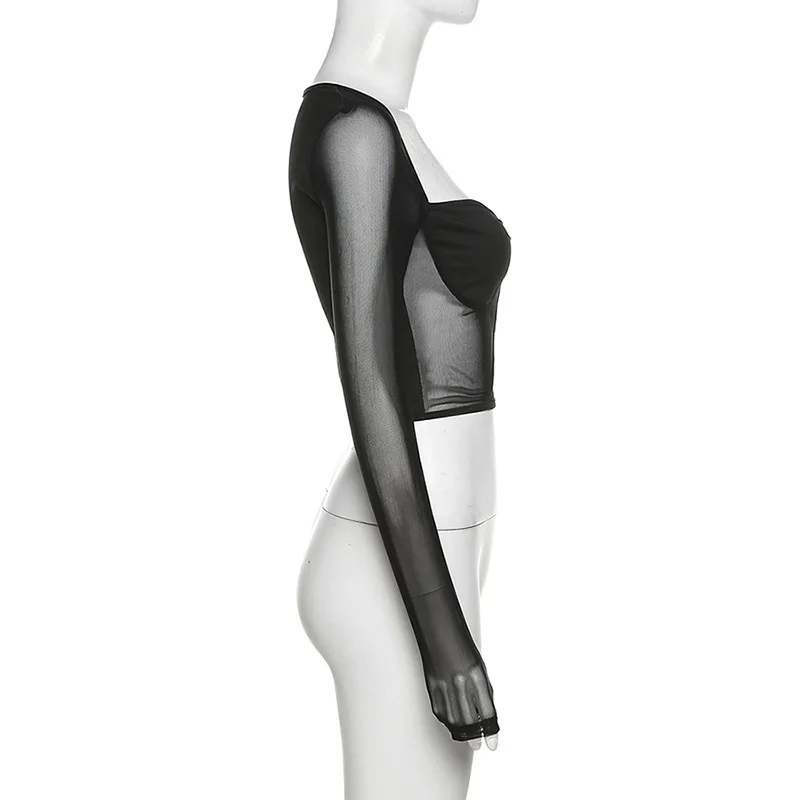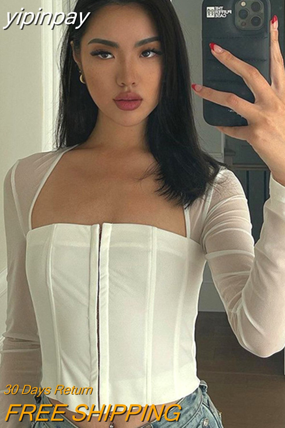 yipinpay T-Shirts Y2K Crop Top Black T Shirt Women Square Neck Sexy Tees Fall Winter Skinny Streetwear Long Sleeve Top