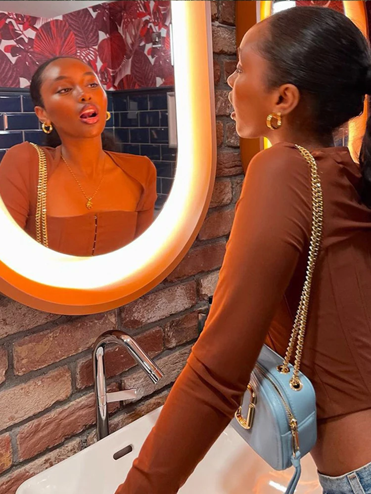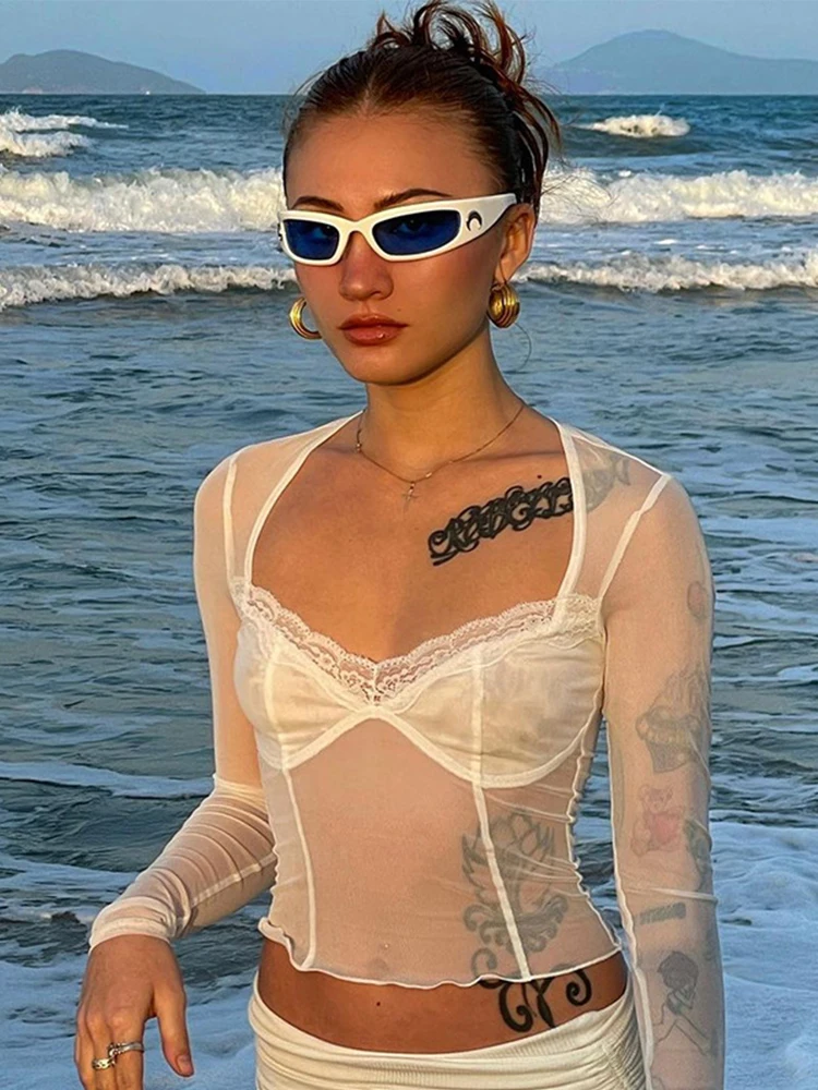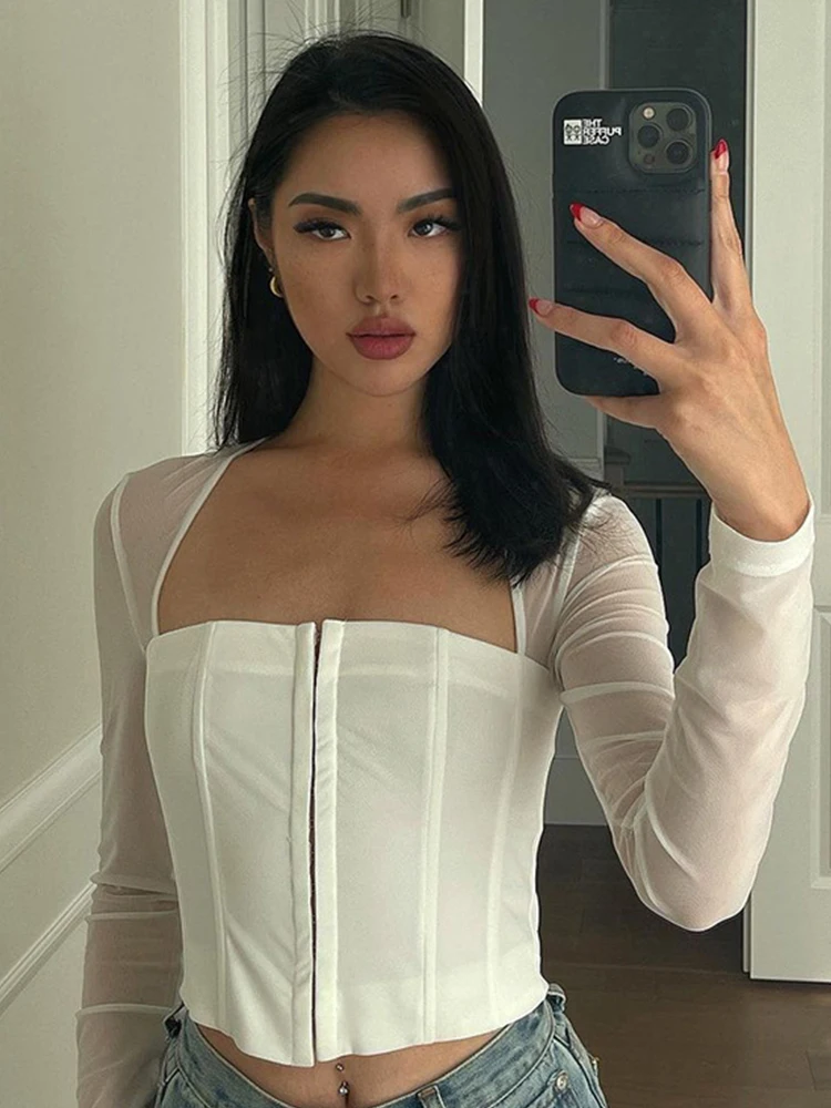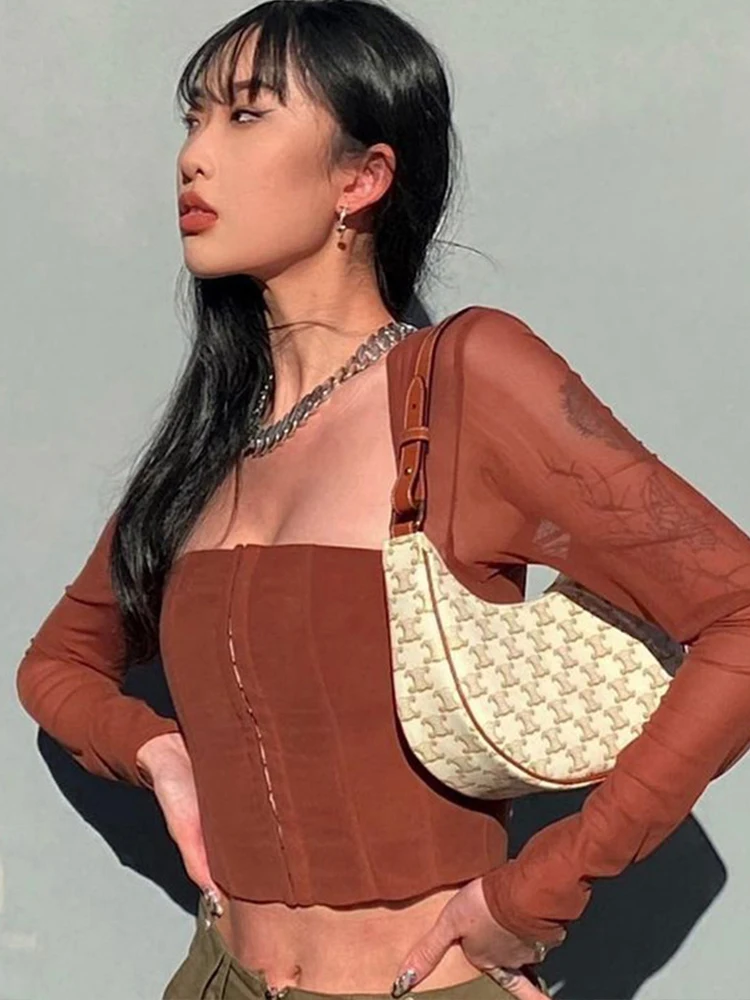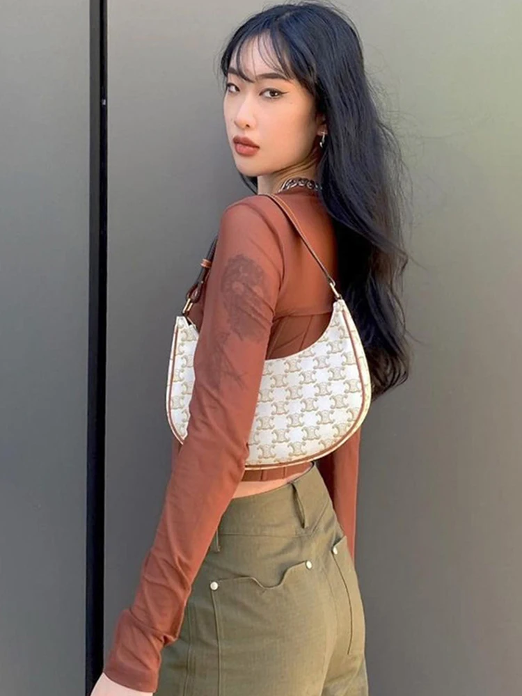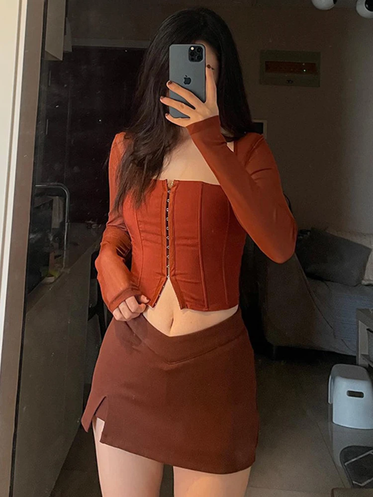 yipinpay T-Shirts Y2K Crop Top Black T Shirt Women Square Neck Sexy Tees Fall Winter Skinny Streetwear Long Sleeve Top