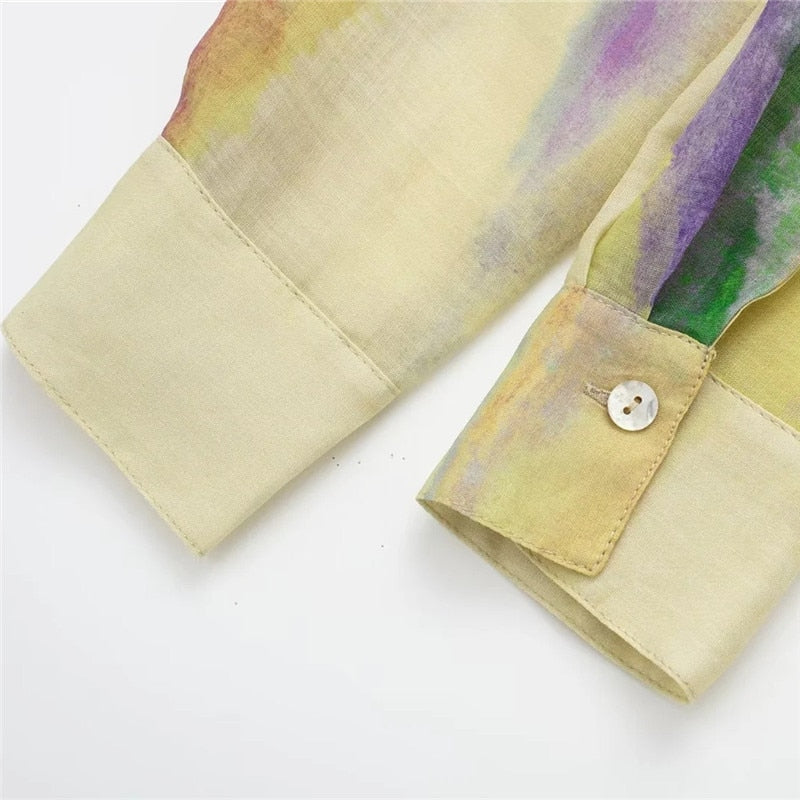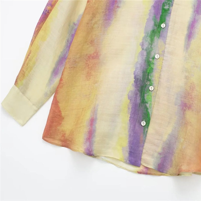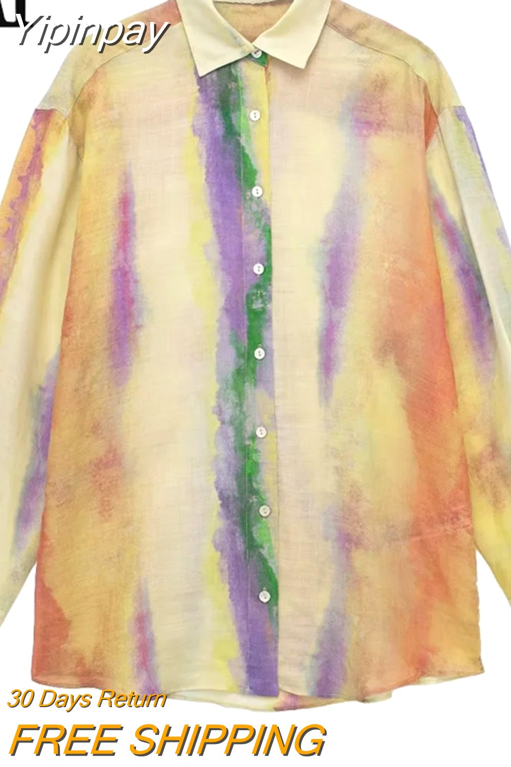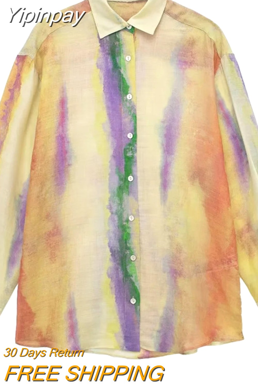 Yipinpay Tie Dye Long Shirt Women Semi Transparent Button Up Shirt Women Long Sleeve Top Female Loose Summer Blouses Woman 2023