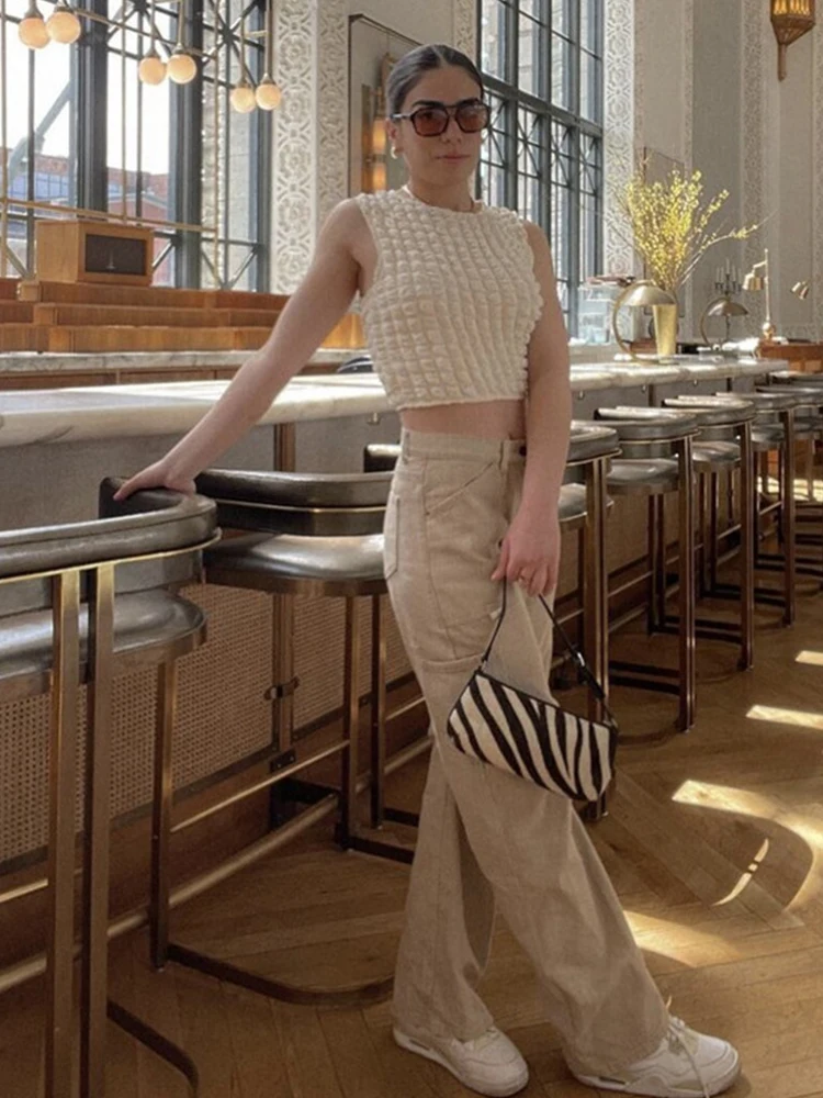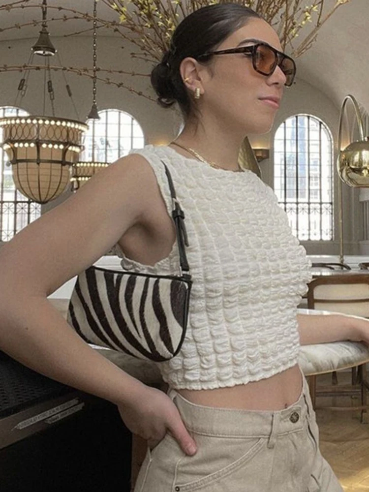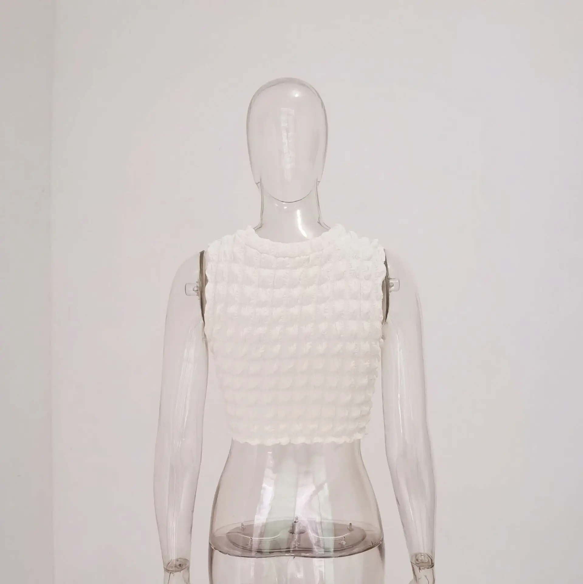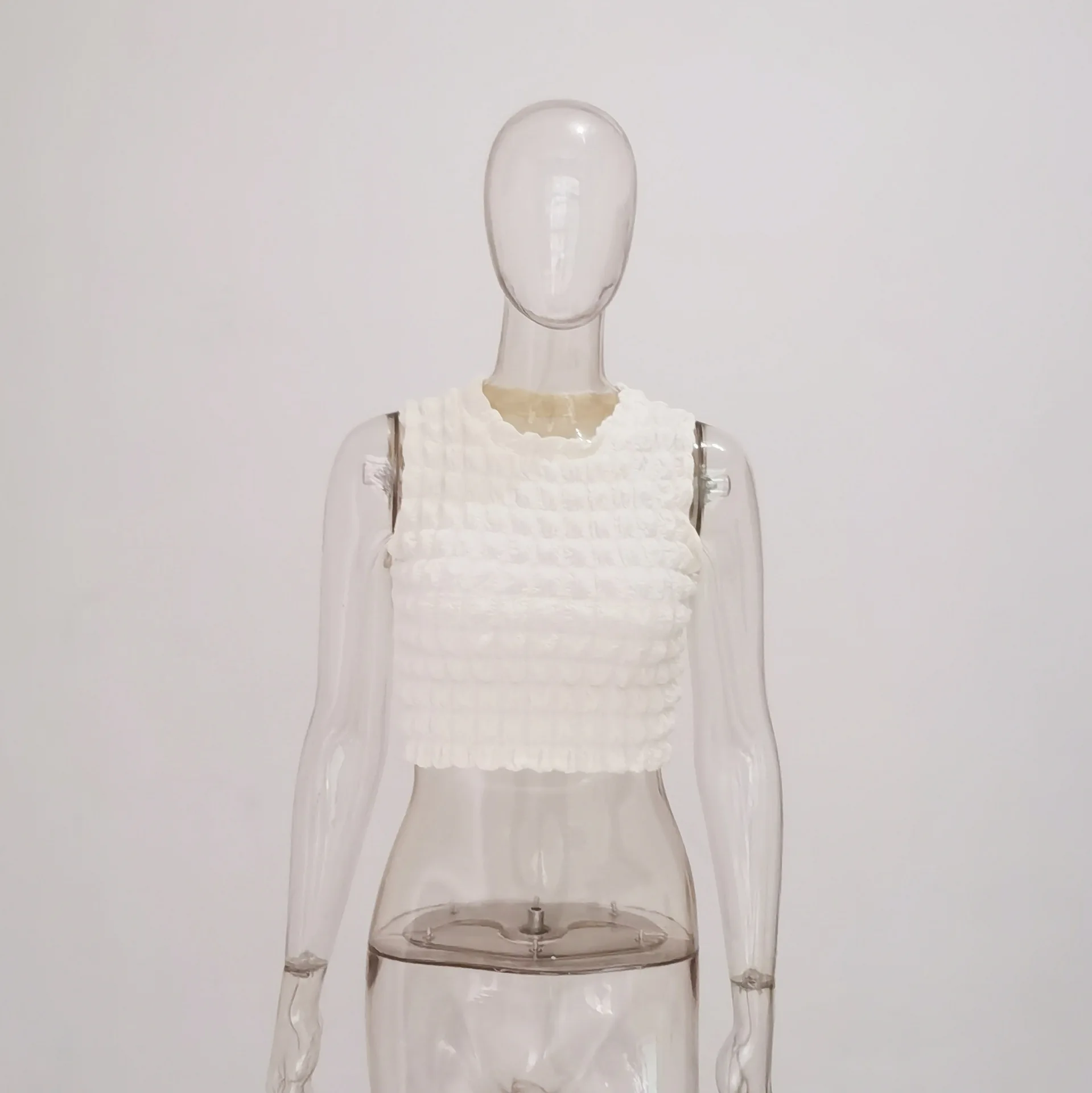 yipinpay Top White Crop Top Women O Neck Stunning Stacked Corset Top Solid Skinny Basic Camisoles Sleeveless Streetwear Y2K Top